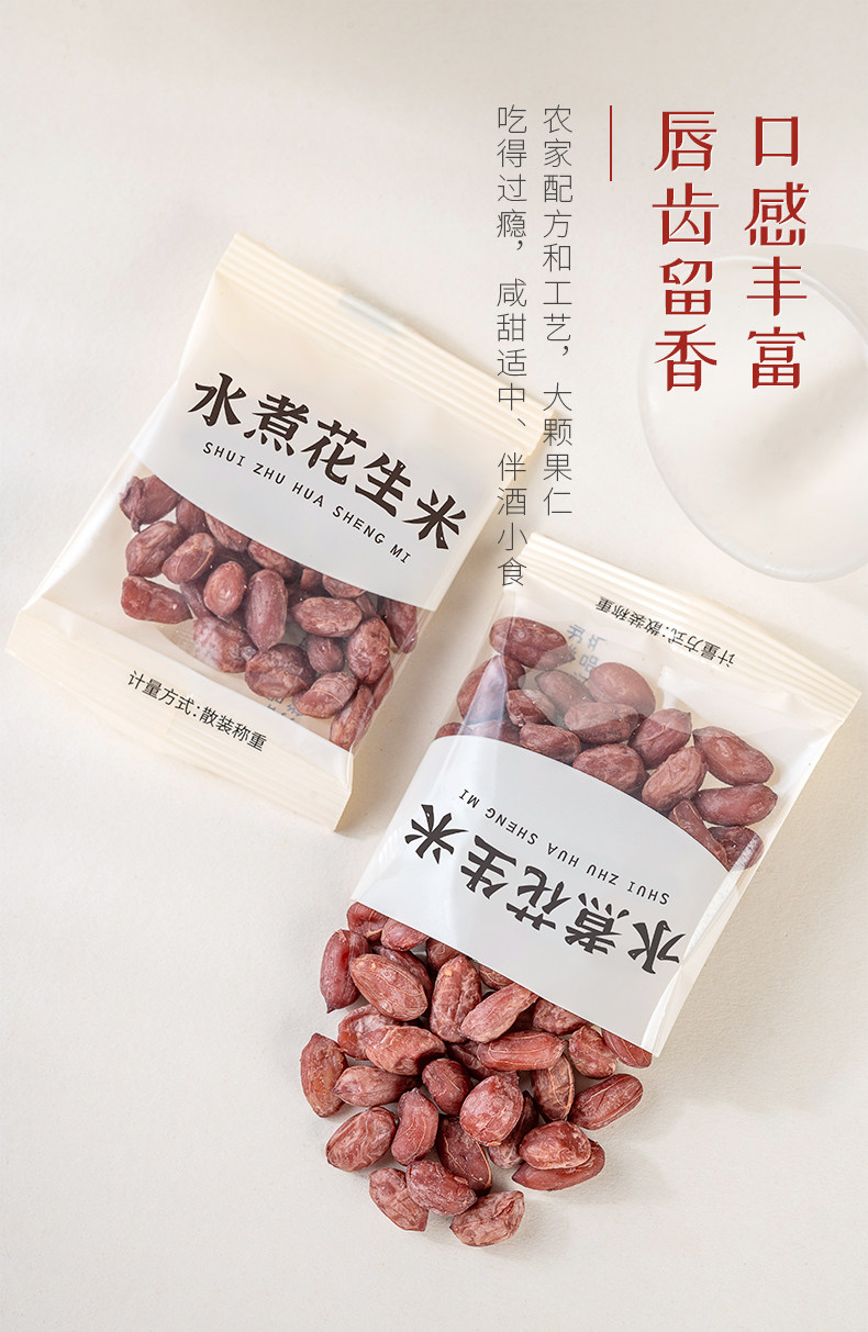 Maní hervido con cinco especias de granja, granos de maní de piel roja con múltiples sabores especiales de Hangzhou Lin'an, bocadillos independientes en paquetes pequeños
