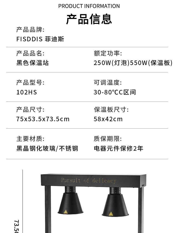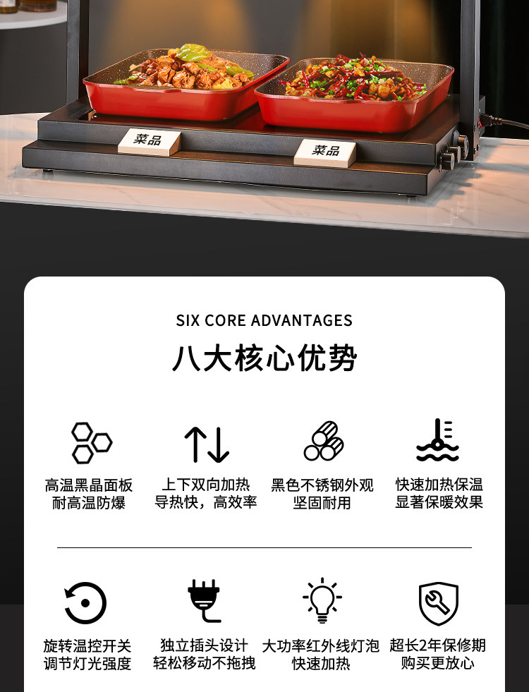 菲迪斯自助餐食物保温灯食品加热灯商用餐饮暖食灯双头烤肉保温站