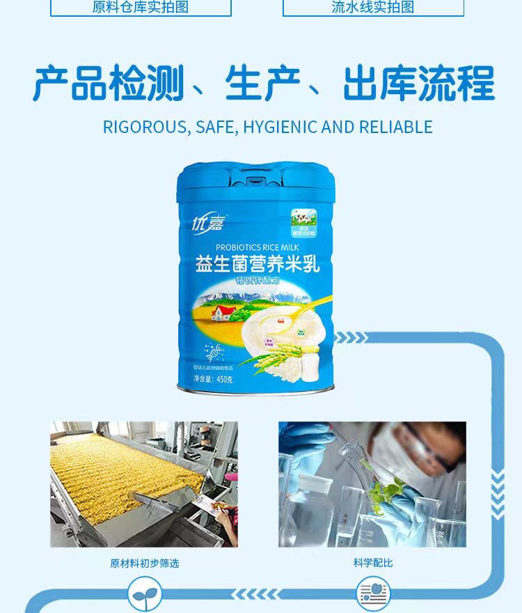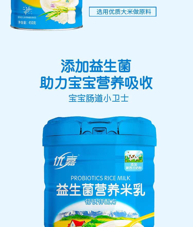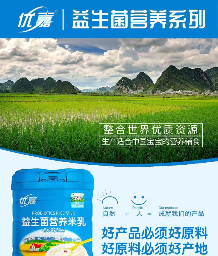 Youjia probiotique lait de riz bébé complément alimentaire fruits et légumes infantile riz céréales bébé nutrition haute teneur en calcium fer zinc en conserve véritable