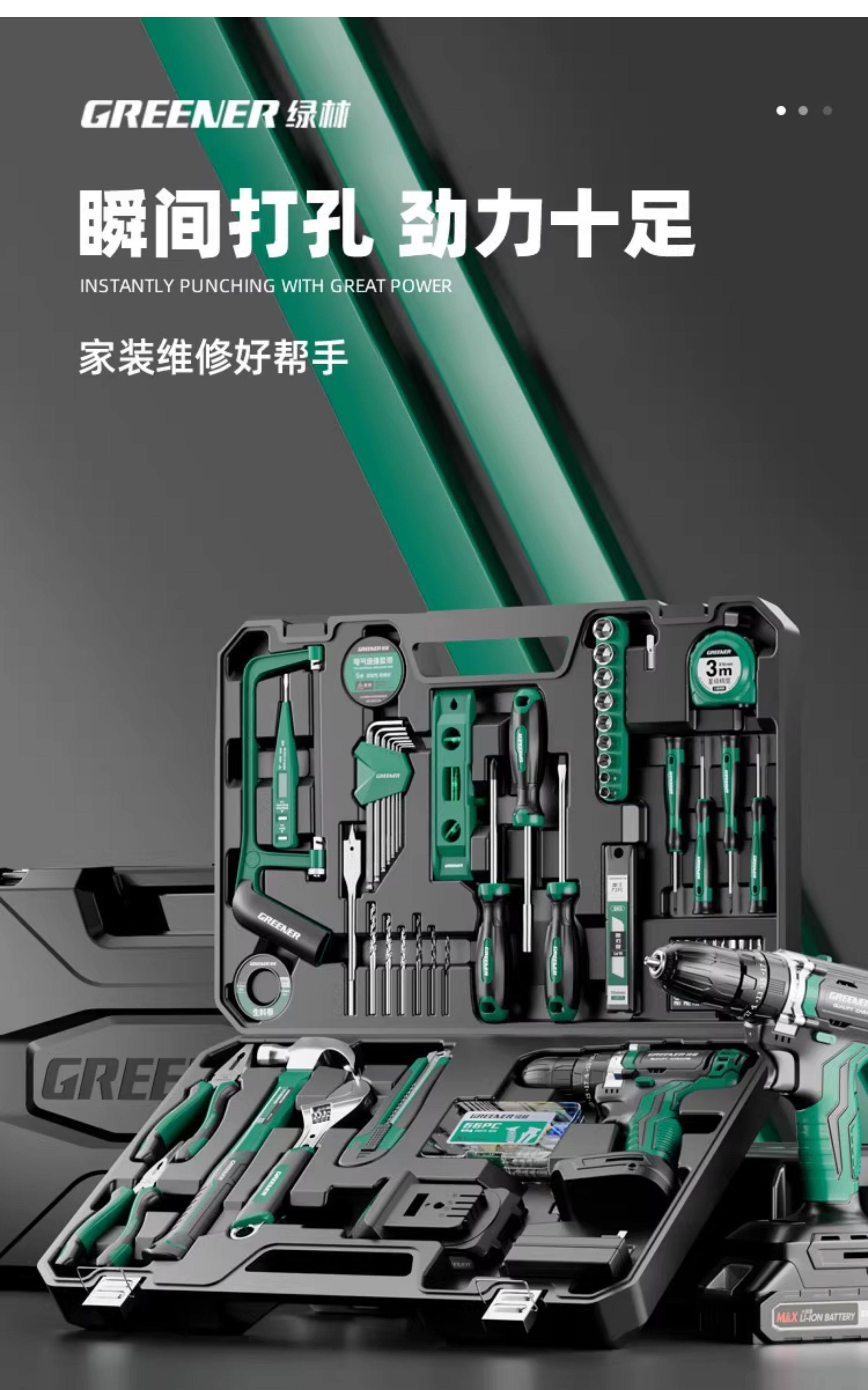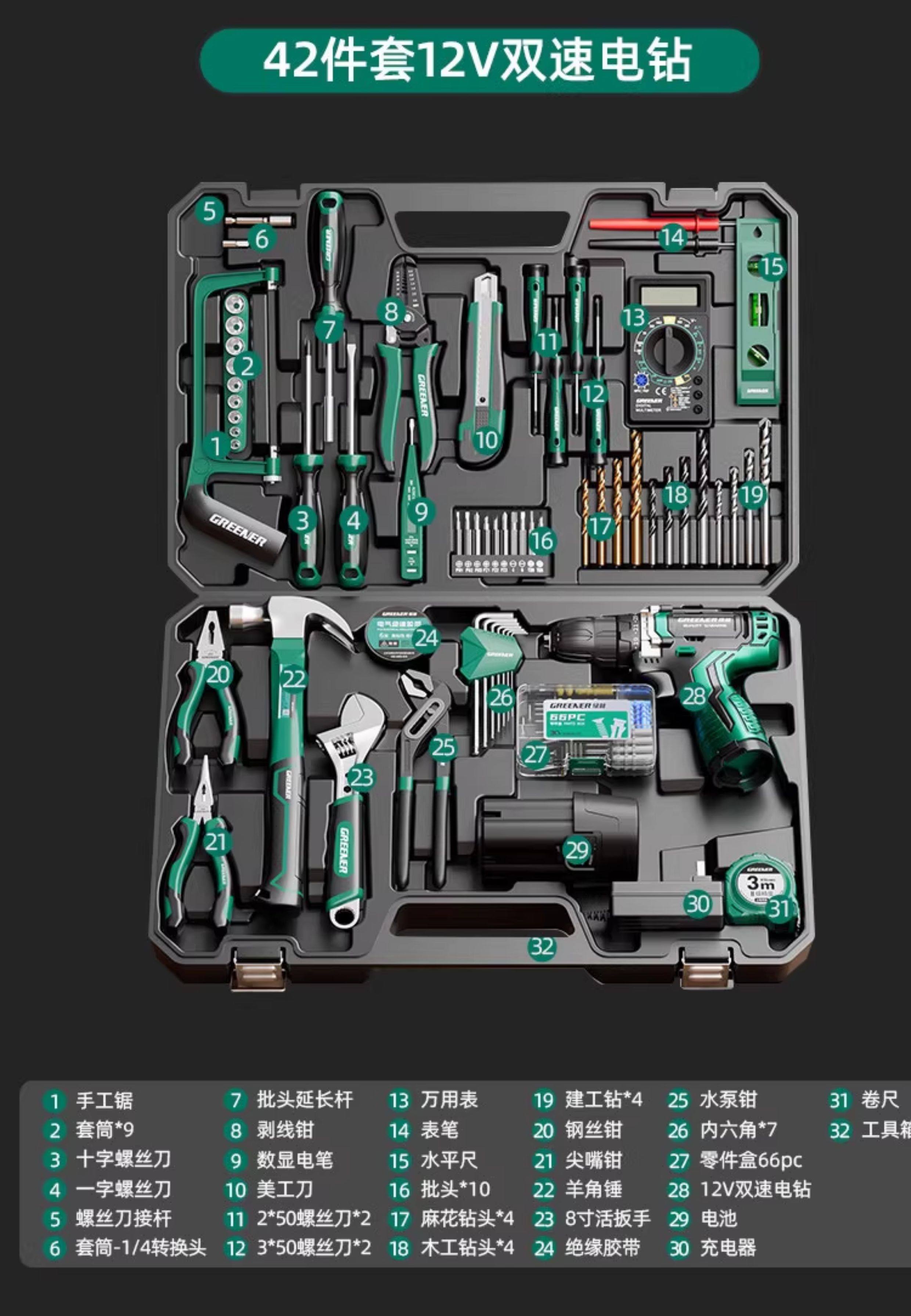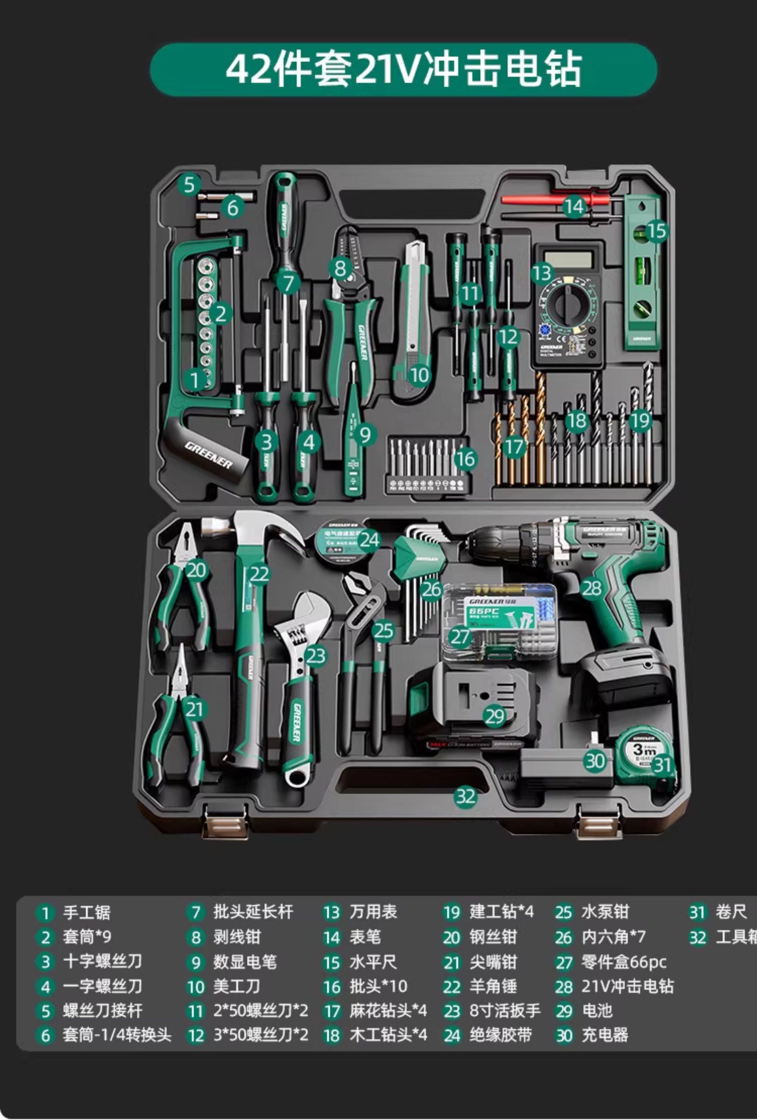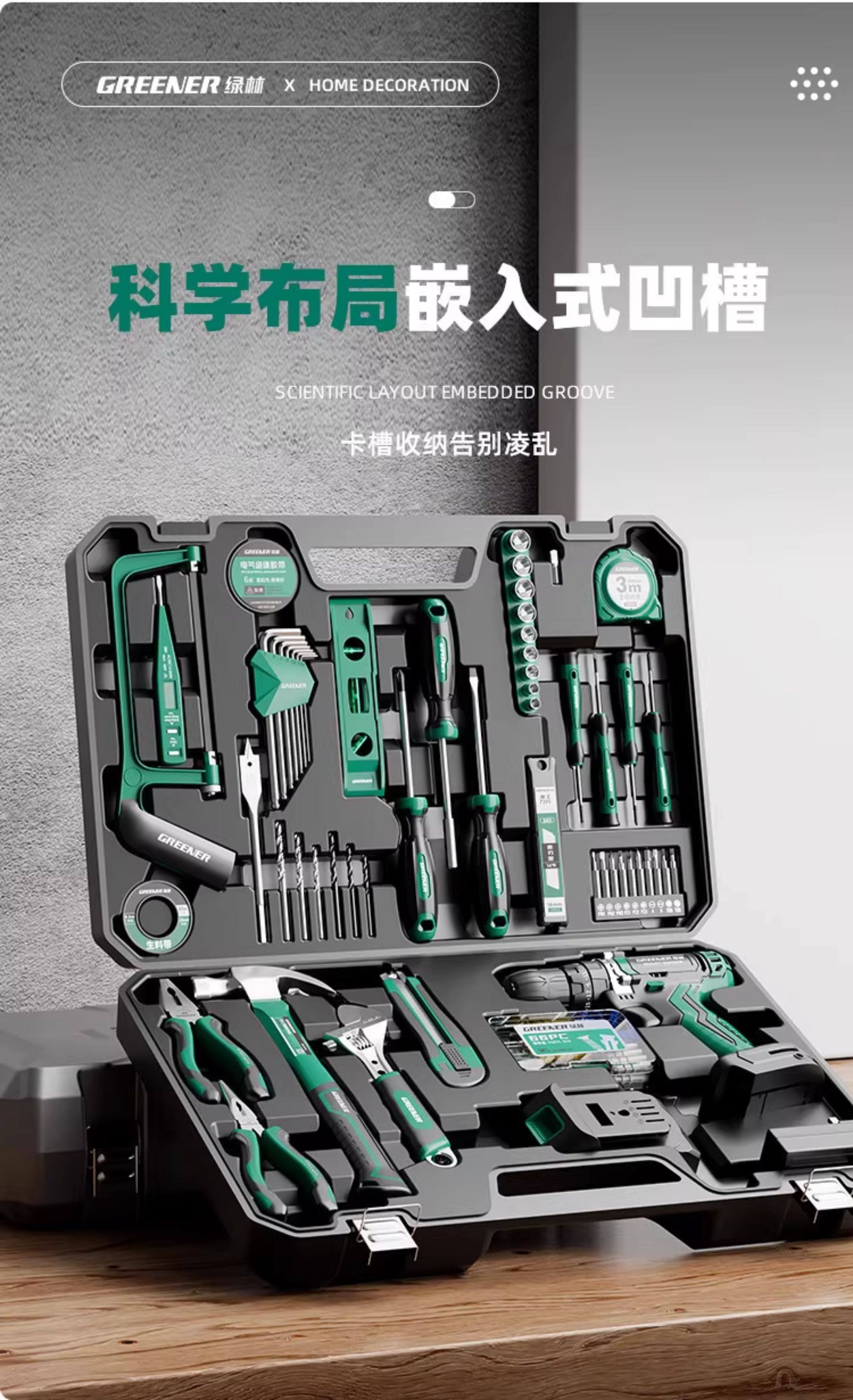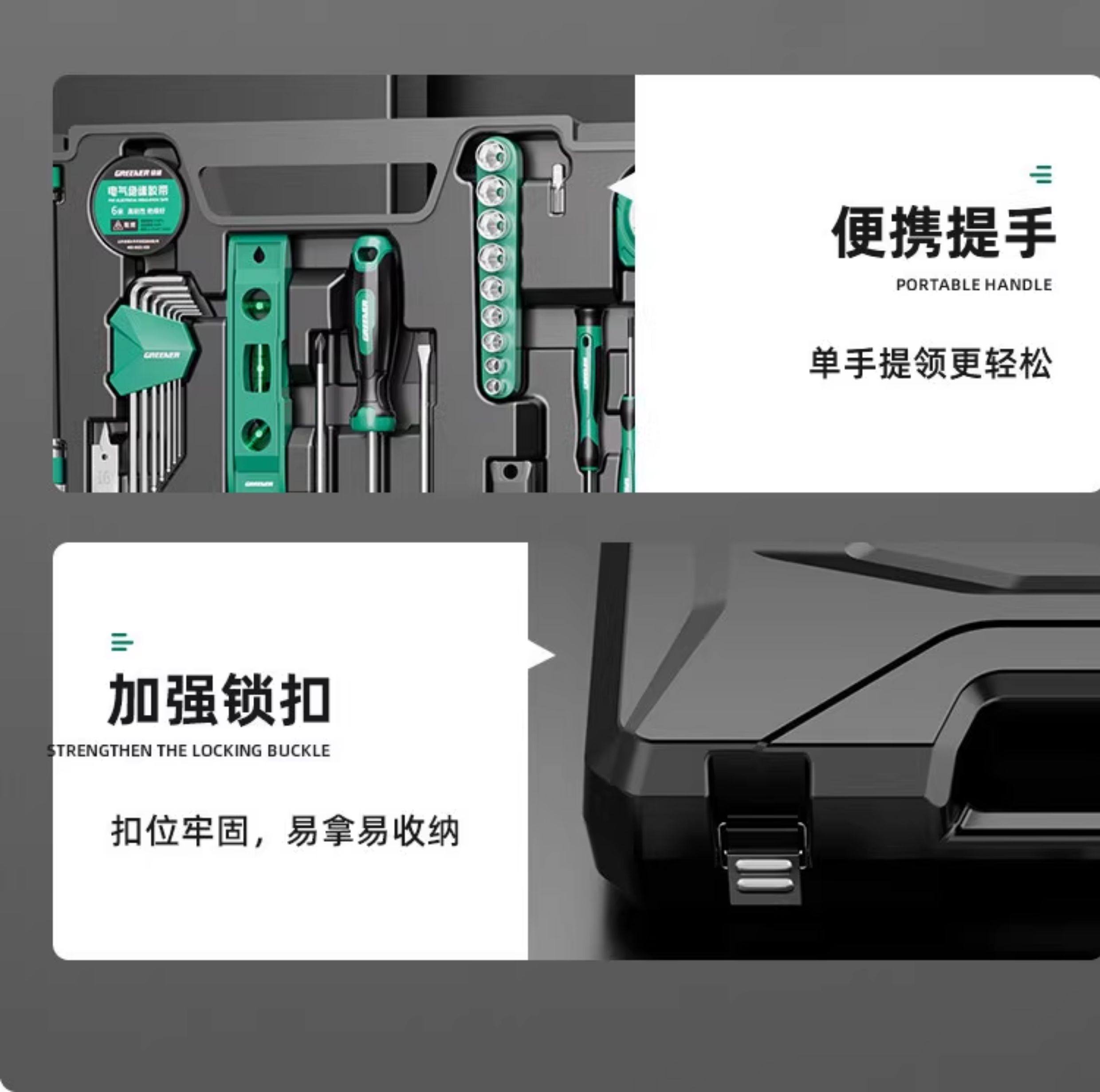 Green Forest Hardware Tool Set Household Toolbox Repair Combination Complete Multifunctional Daily Electrician and Carpenter's Kit