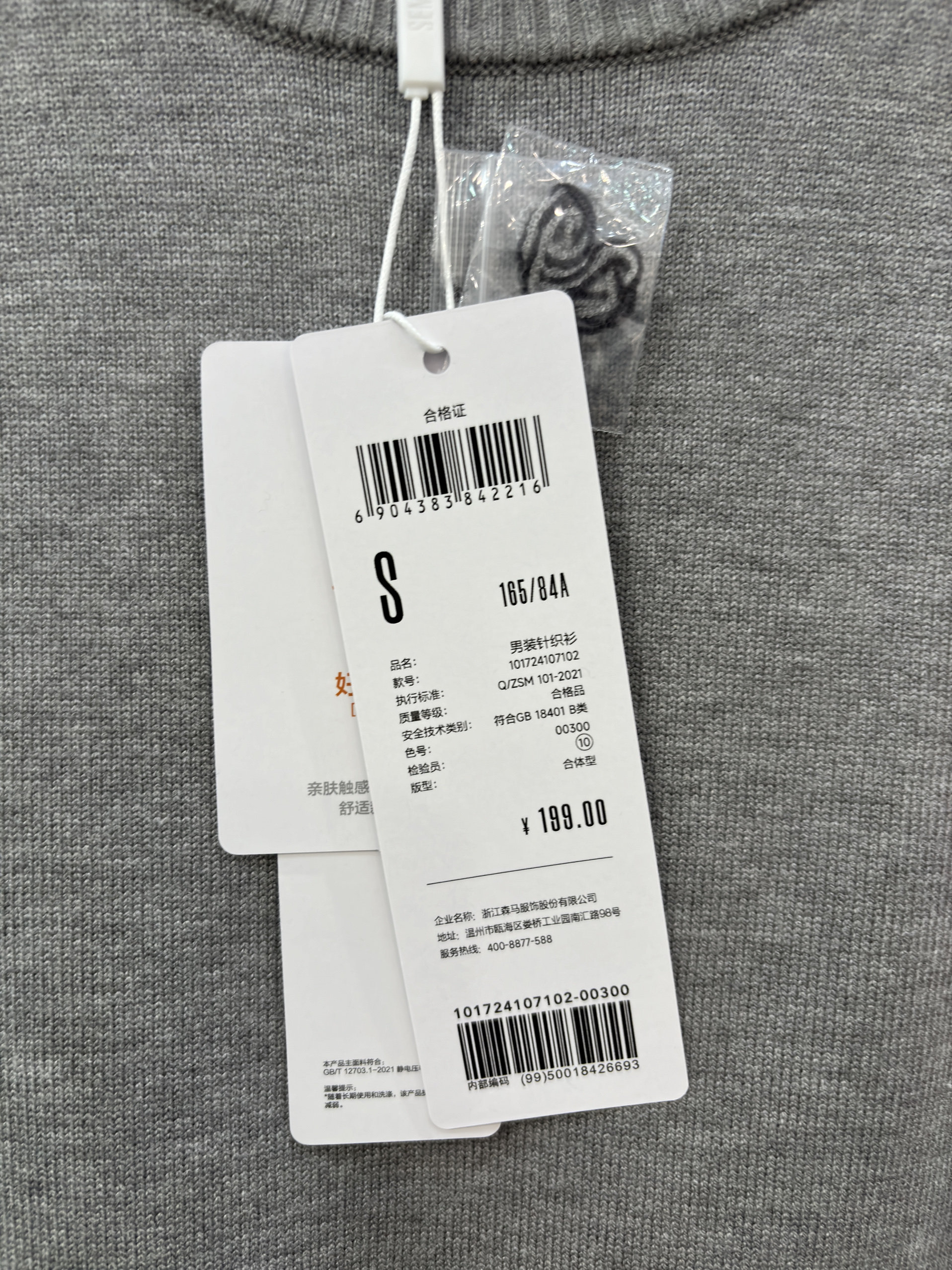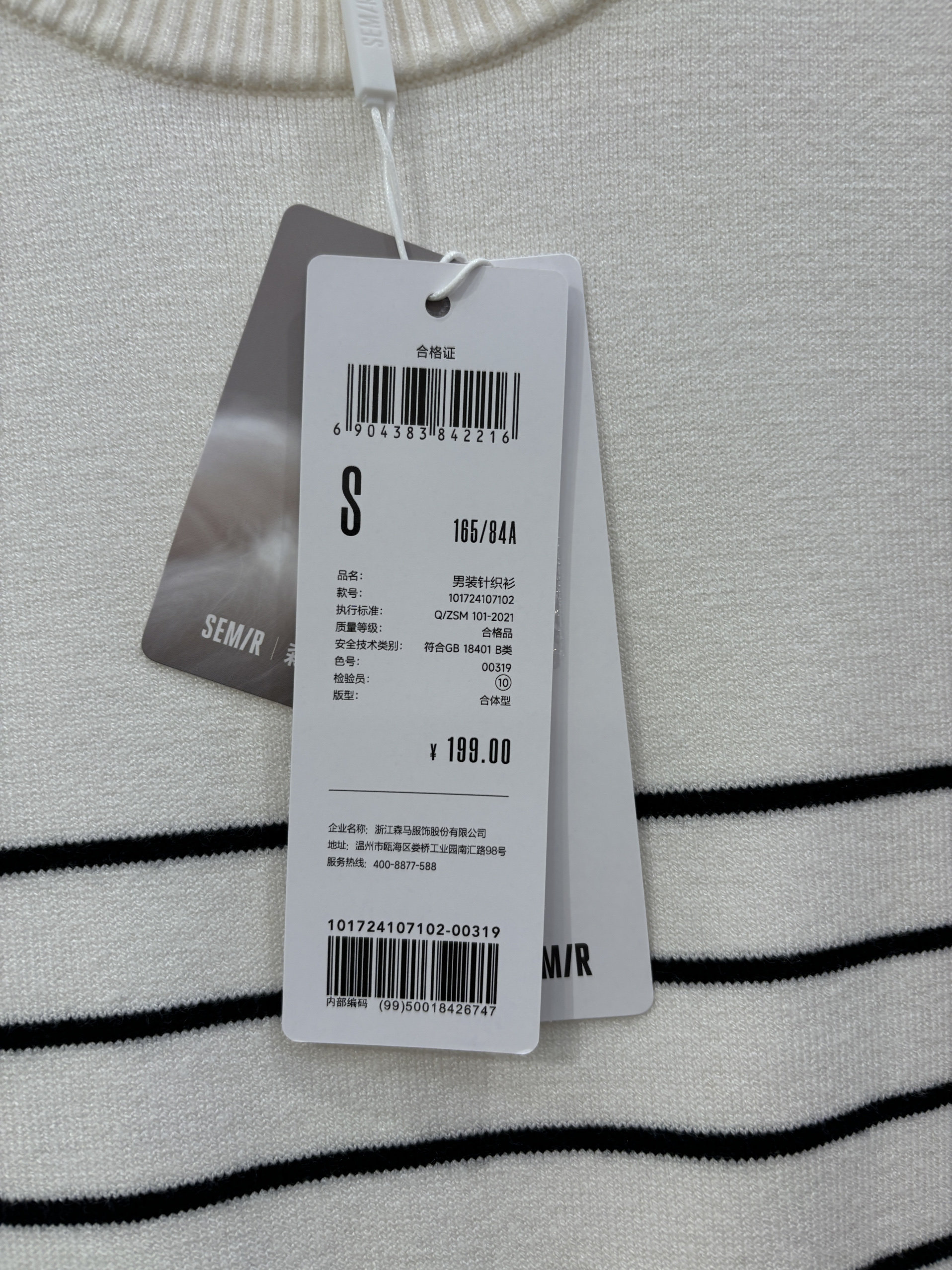 Semir men's new winter round neck sweater 101724107102 shipped from physical store