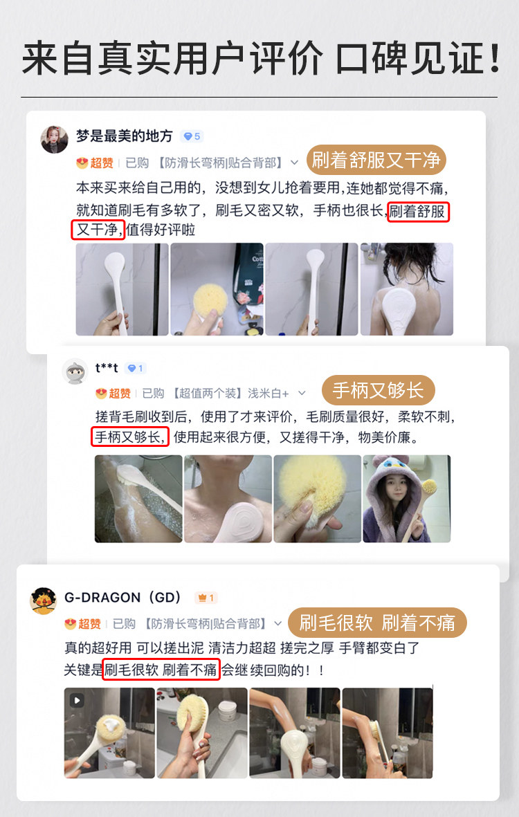 颜色分类 【防滑长弯柄|贴合背部】软毛沐浴刷-浅米白,【防滑长弯柄|贴合背部】软毛沐浴刷-樱花粉,【防滑长弯柄|贴合背部】软毛沐浴刷-珊雾红,【防滑长弯柄|贴合背部】软毛沐浴刷-芋泥紫,【防滑长穹柄|贴合背部】软毛沐浴刷-耀石黑,【防滑长弯柄|贴合背部】软毛沐浴刷-空银灰,【超值两个装】浅米白*2,【超值两个装】浅米白+樱花粉,【超值两个装】浅米白+珊雾红,【超值两个装】浅米白+芋泥紫,【超值两个装】浅米白+耀石黑,【超值两个装】浅米白+空银灰,【双面双用|起泡搓泥】二合一洗澡刷-浅米白,【升级搓布|深层搓泥】洗澡刷-浅米白,【身体干刷】猪鬃毛洗澡刷,【高密亲肤】猫爪超软毛洗澡刷,【下泥组合】中砂搓澡巾+浅米白洗澡刷,【沐浴组合】渐变双色沐浴球+浅米白洗澡刷,【41CM加长弯柄】软毛沐浴刷-浅米白,【41CM加长弯柄】软毛沐浴刷-樱花粉,【双面双用|起泡搓泥】浴花洗澡刷-浅米白,【两个装】浅米白+樱花粉,【两个装】浅米白*2,【下泥组合】搓澡巾+浅米白洗澡刷,【沐浴组合】沐浴球+浅米白洗澡刷,【41cm长柄|亲肤软毛】-白色,【41cm长柄|亲肤软毛】-粉色,【41cm长柄|亲肤软毛】-黑色,双面浴花洗澡刷-白色,深层搓泥洗澡刷-白色(送细砂替换布*1),鬃毛洗澡刷-白色,超柔软猫爪洗澡刷-白色,【优惠两个装】白色+粉色,【优惠两个装】白色+黑色,【优惠两个装】白色*2,中砂搓澡巾+白色长柄洗澡刷,蓬松排骨梳+白色长柄洗澡刷,沐浴球+白色长柄洗澡刷