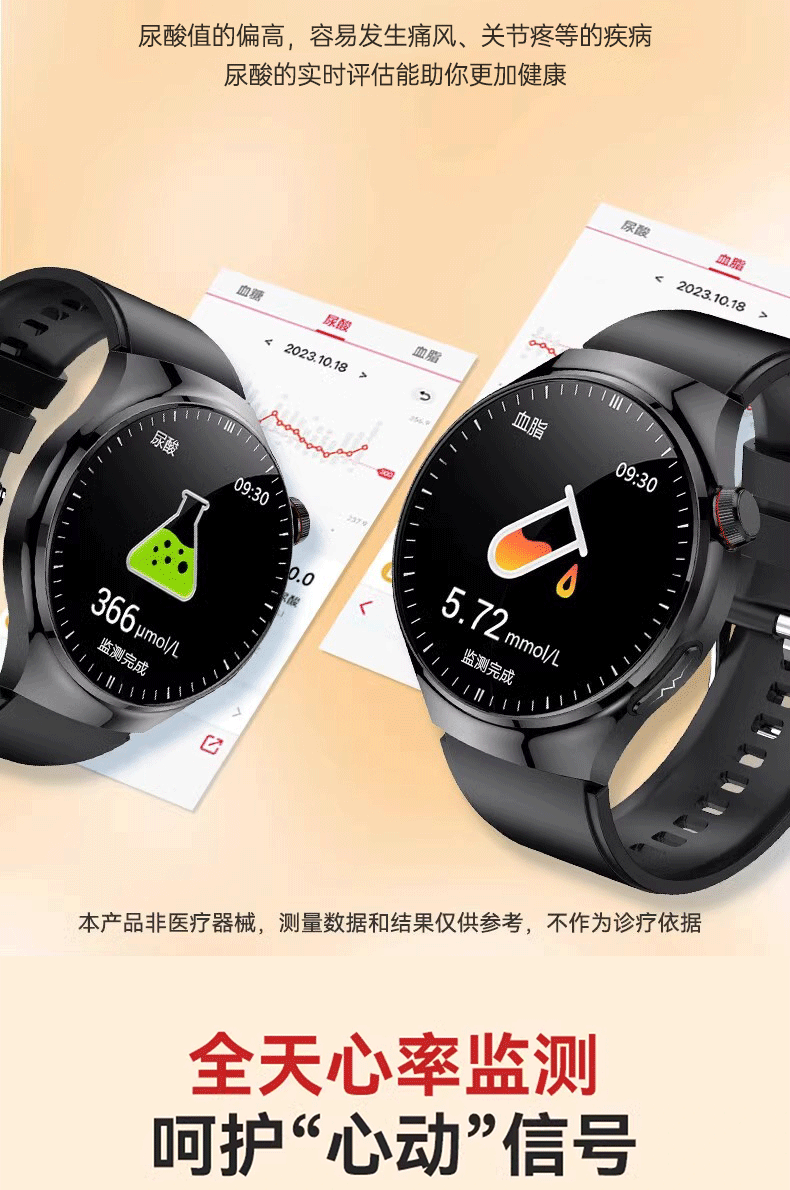 Smartwatch für Blutzucker, Blutdruck und Blutfette, Harnsäure, EKG, Herzfrequenz, Blutsauerstoff und Körpertemperatur, hochpräzise Ein-Klick-Hilfe, SOS-Gesundheits-Smart-Armband für Führungskräfte und Älteste