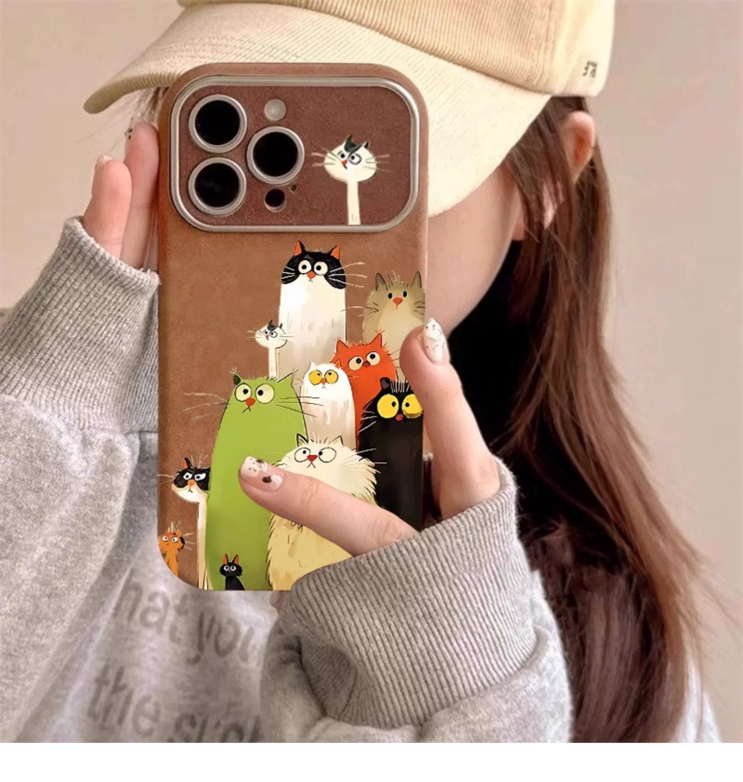 适用可爱猫咪苹果16秋冬手机壳iPhone16Promax翻毛皮15Pro小猫14plus镜头全包13硅胶软边12简约11防摔保护套