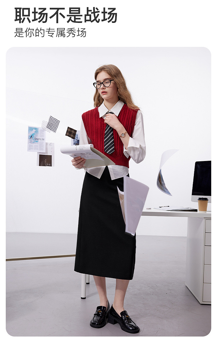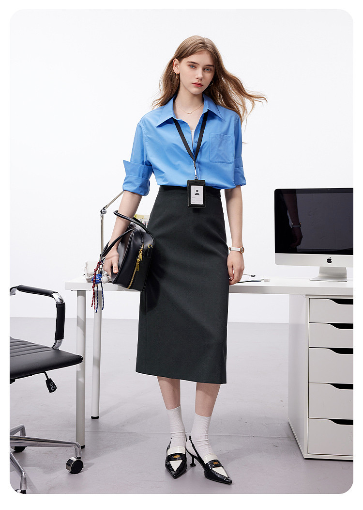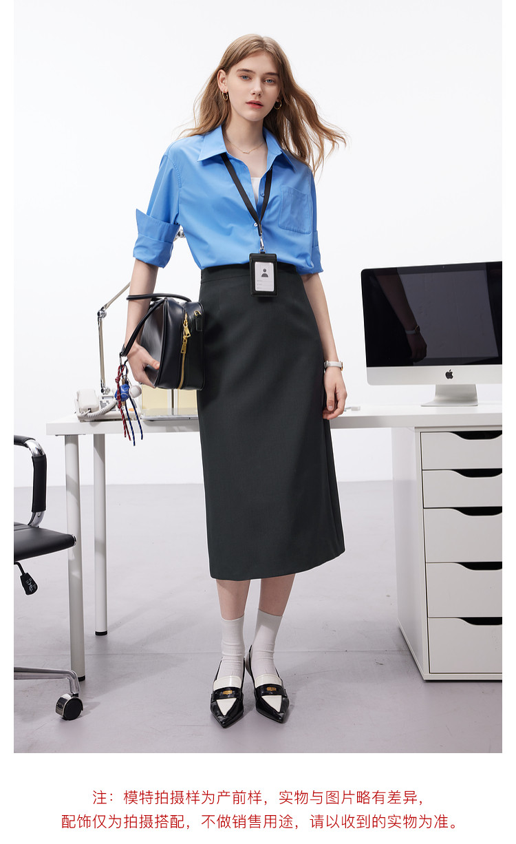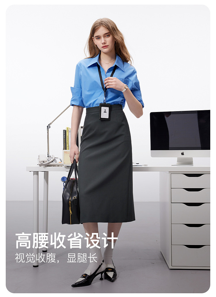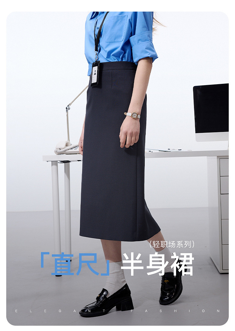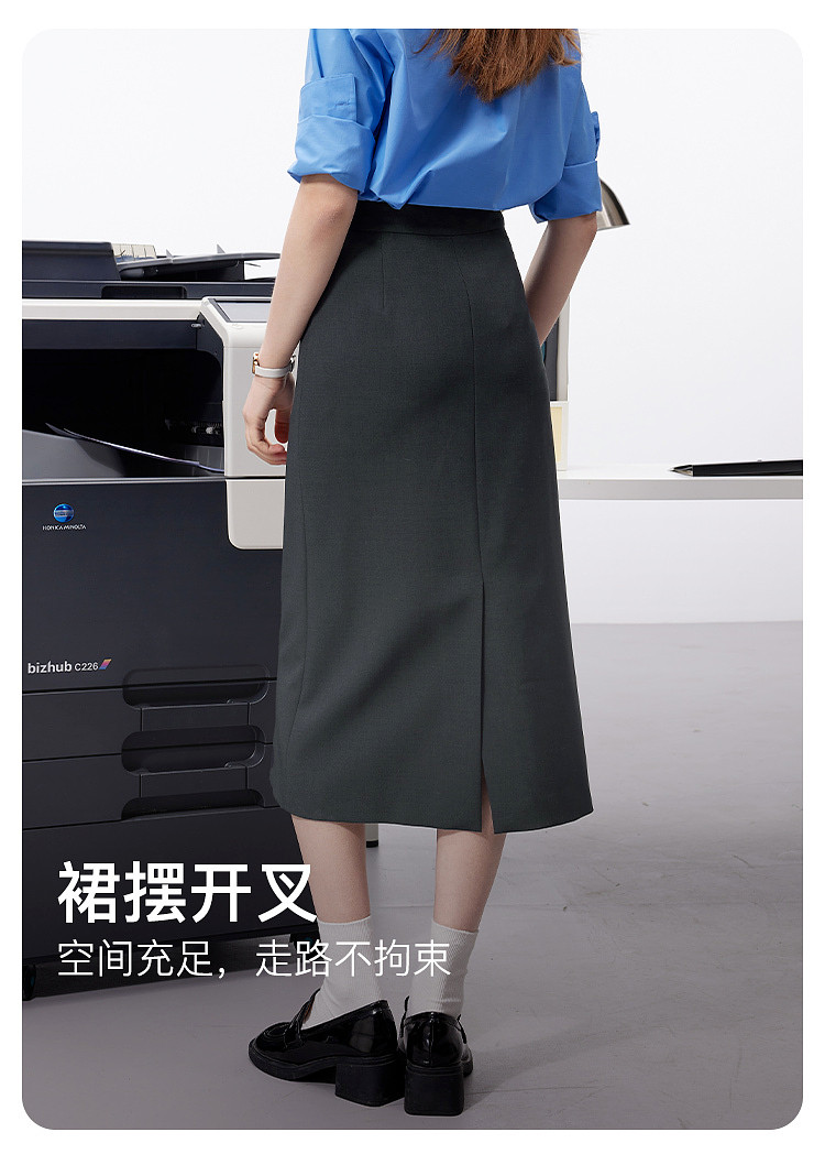 【易打理】三彩2025秋季新款轻职场灰色西装半身裙直筒a字裙女Z