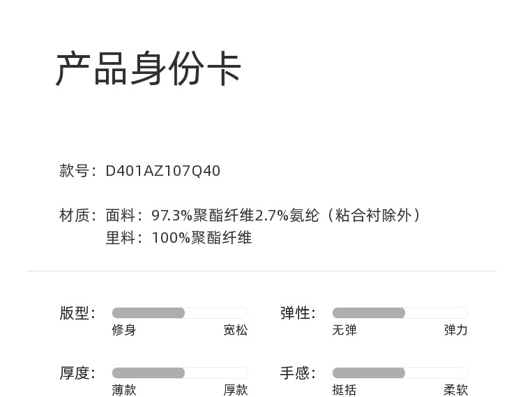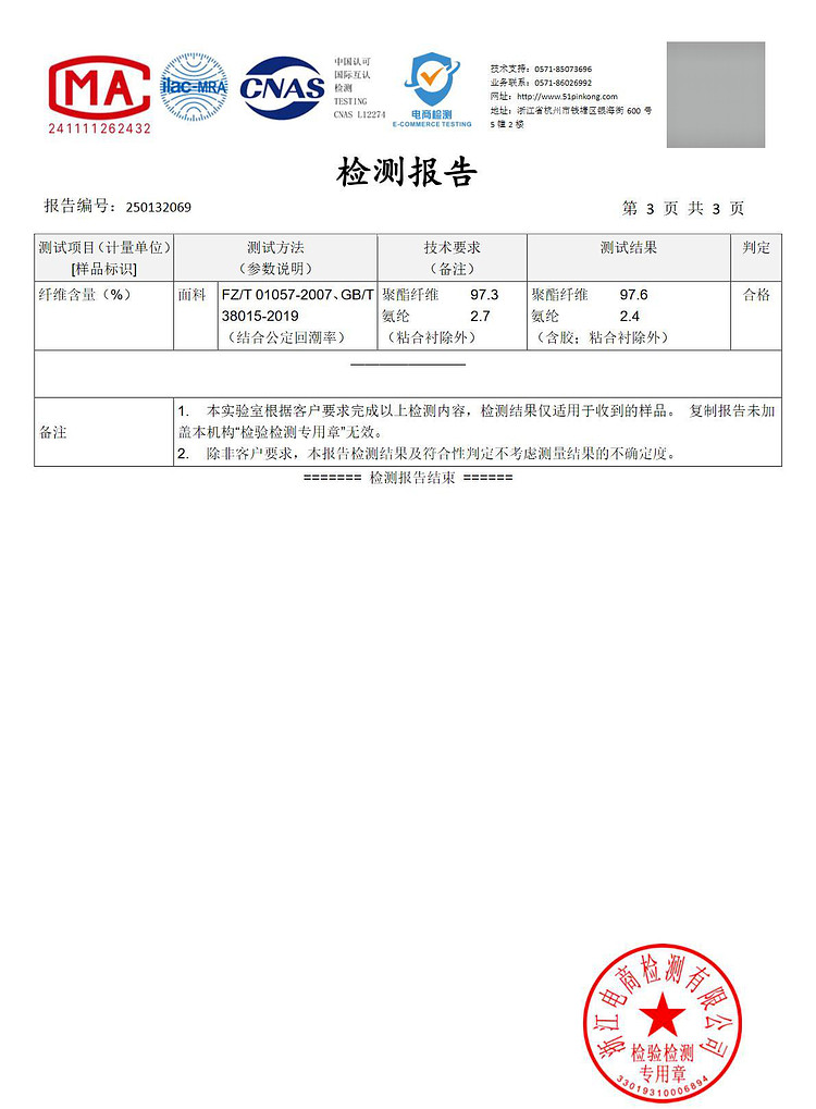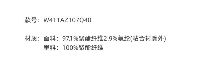 材质成分 聚酯纤维97.3% 聚氨酯弹性纤维(氨纶)2.7%