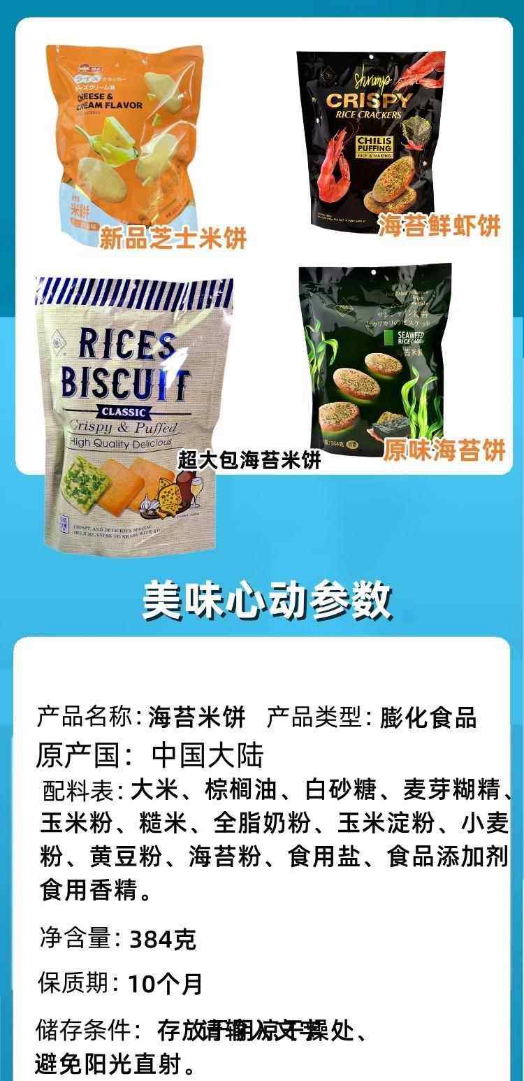 Gusto Pastel de arroz con algas 384g,Galletas de arroz con camarones 360g,Galletas De Arroz Con Algas Y Pizza,Nuevo producto sabor queso 352g,Pack Extra Grande de Tarta de Camarones y Algas 508g,Picante 360g