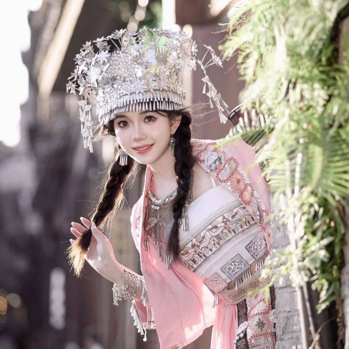 Trajes étnicos rosas, disfraces de niñas Miao de minorías étnicas, trajes de escenario Miao, trajes de actuación, nuevos trajes de fotografía de viajes