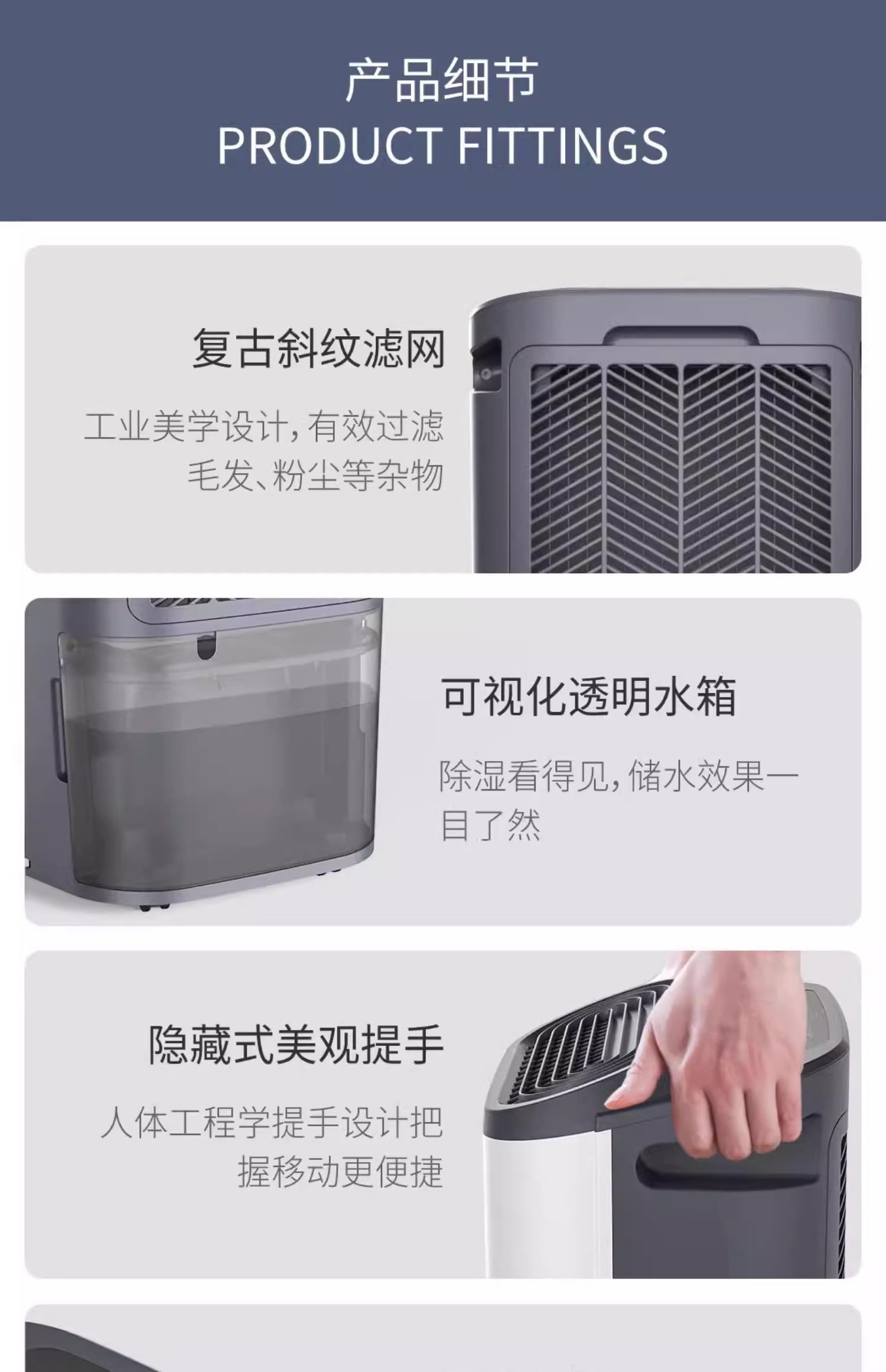 德业轻音家用抽湿机除湿机干衣干燥吸湿器DYD-Z12A3智能除湿机