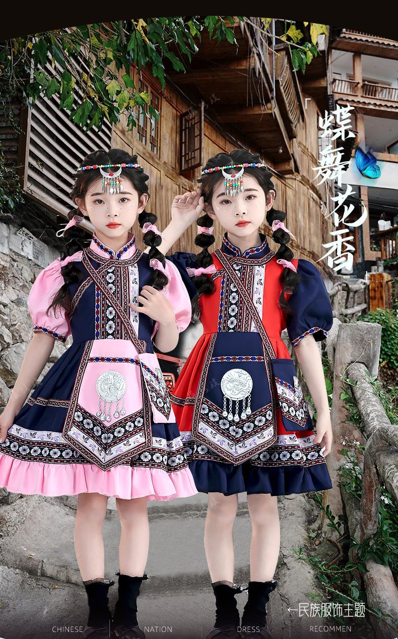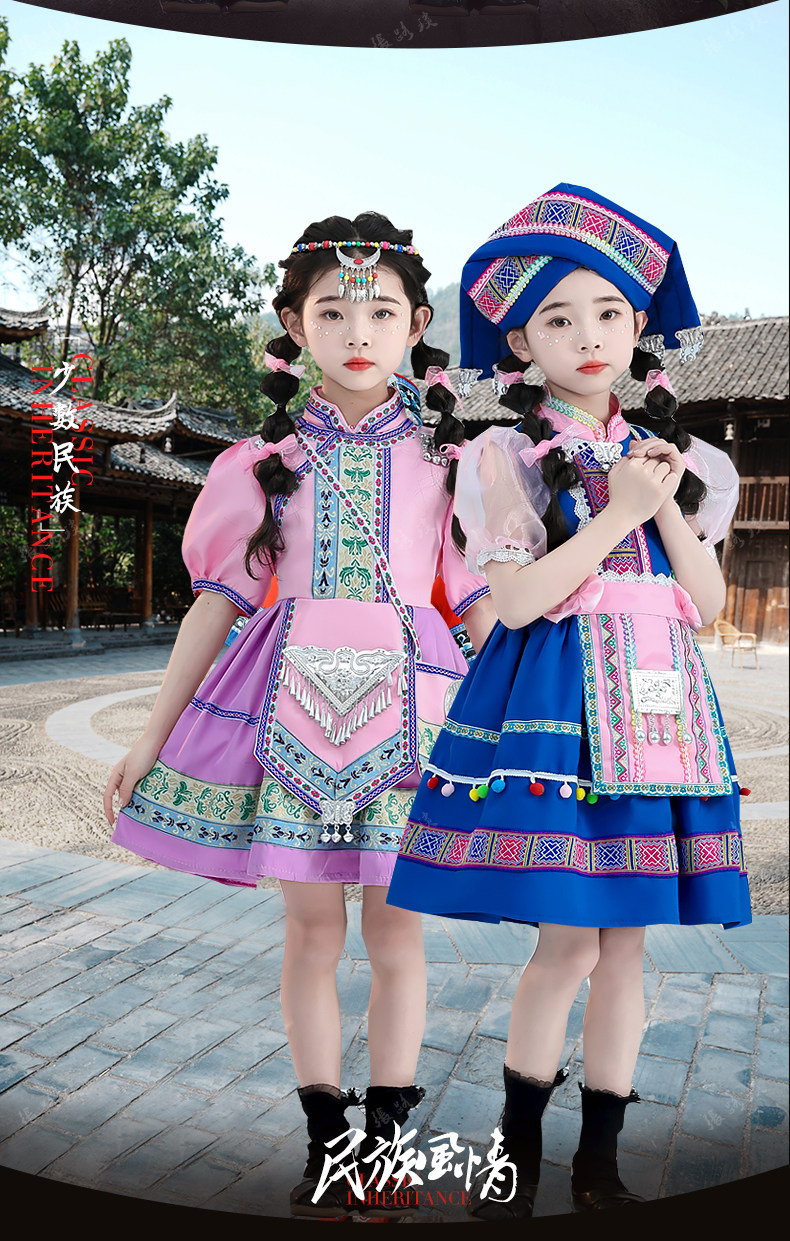 新款仡佬族儿童少数民族演出服男女童幼儿民族洛丽塔表演服舞蹈服