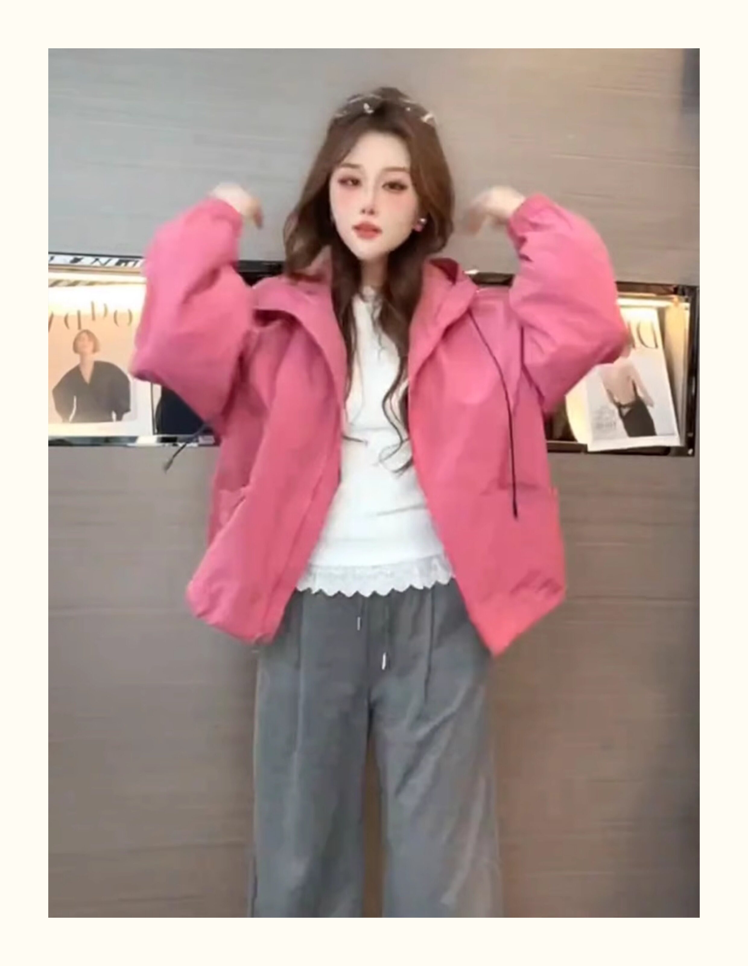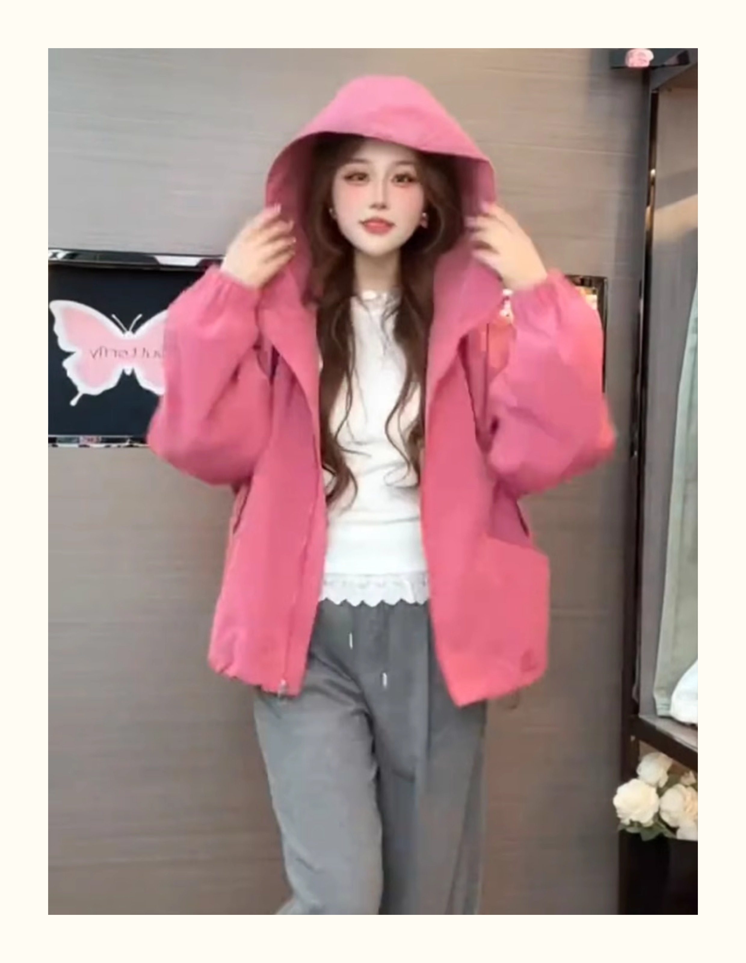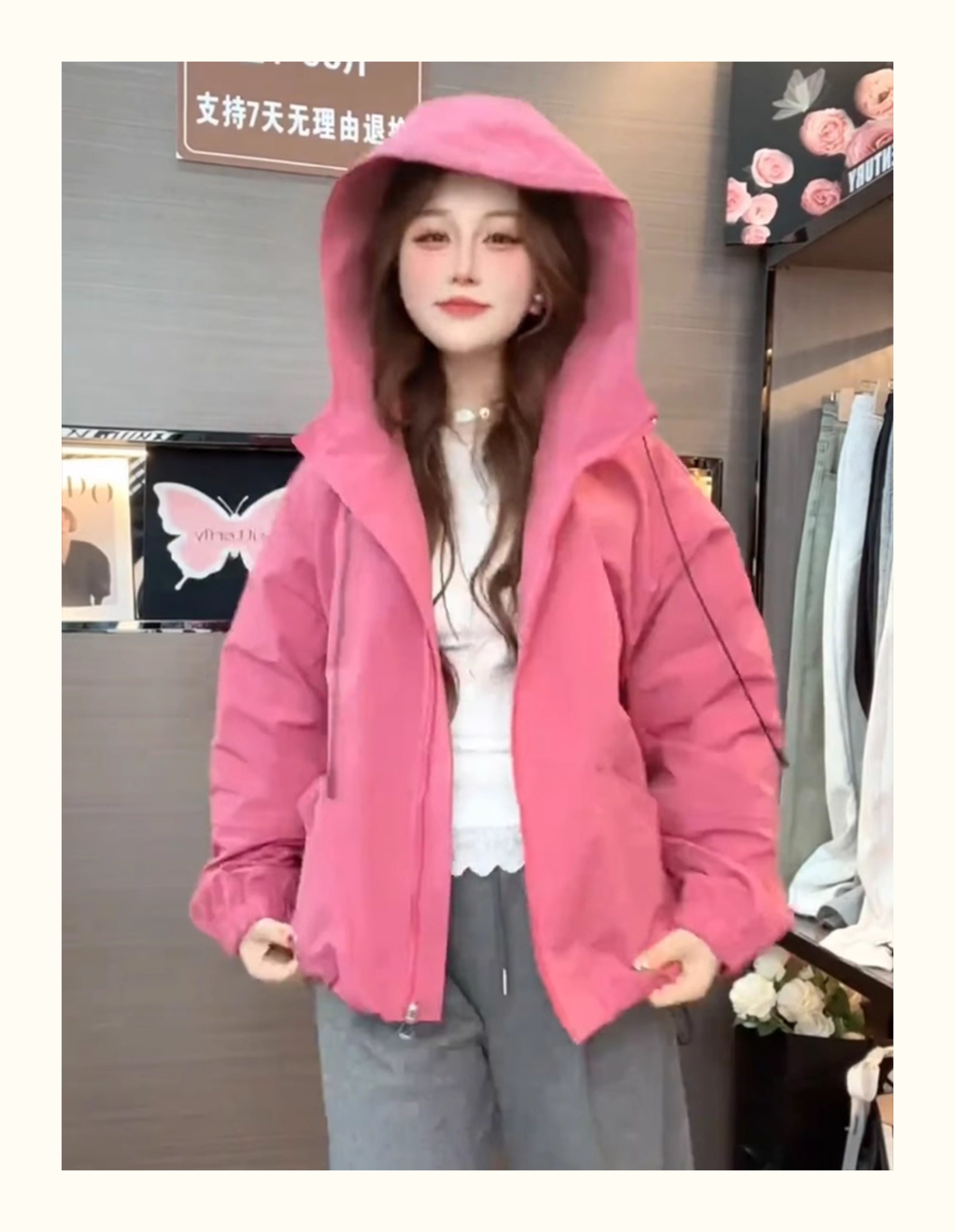 Kurze Kapuzenjacke mit Kordelzug für Damen 2025, Frühling und Herbst, koreanischer Stil, ausländischer Stil, vielseitiges Freizeitjacken-Oberteil