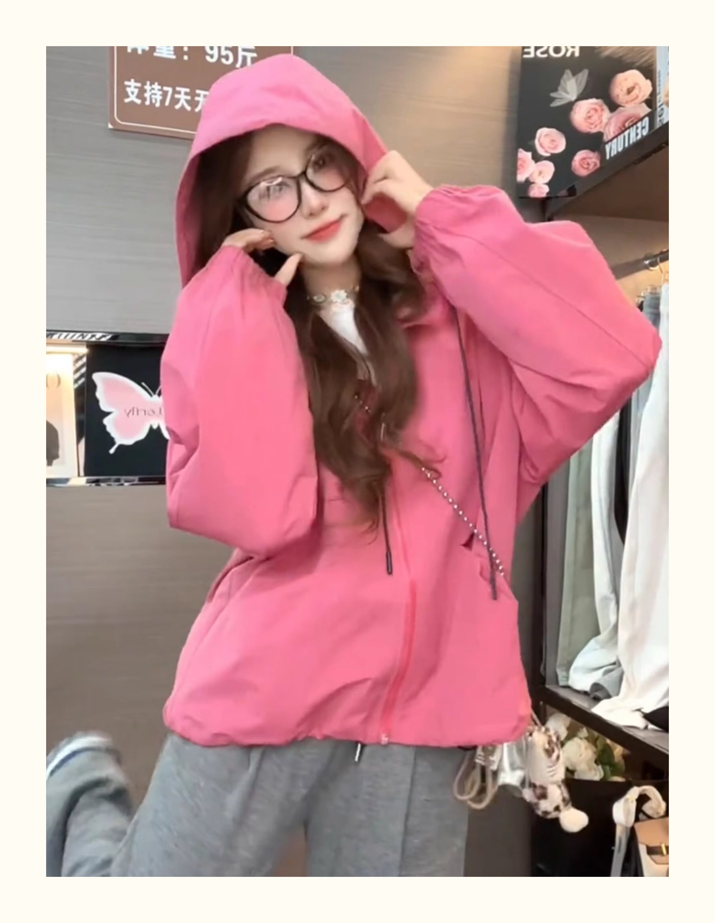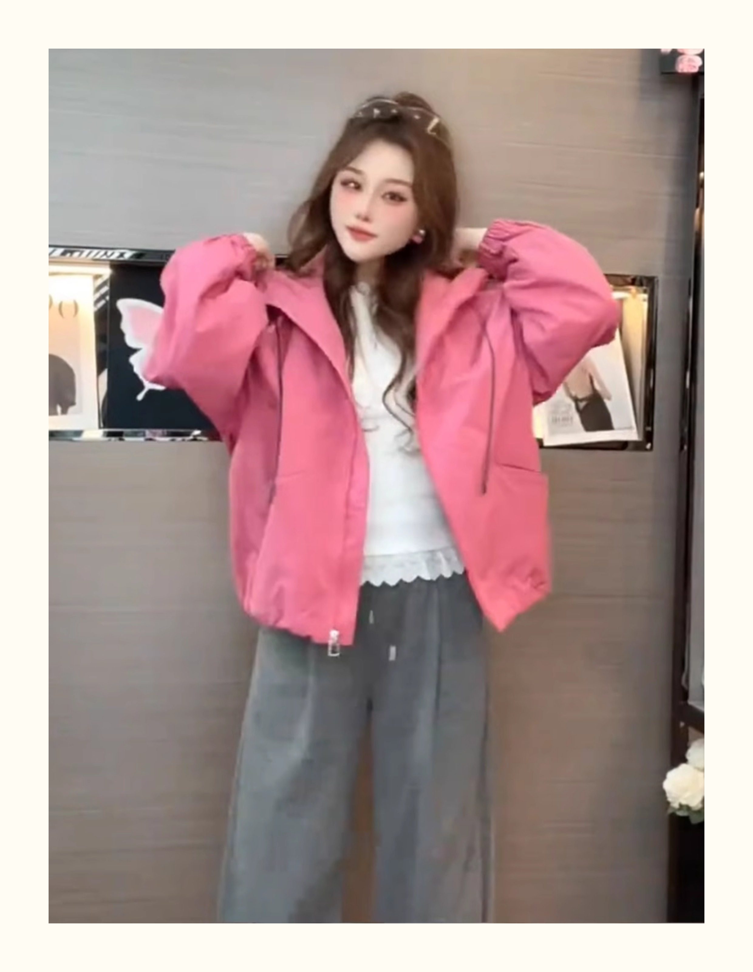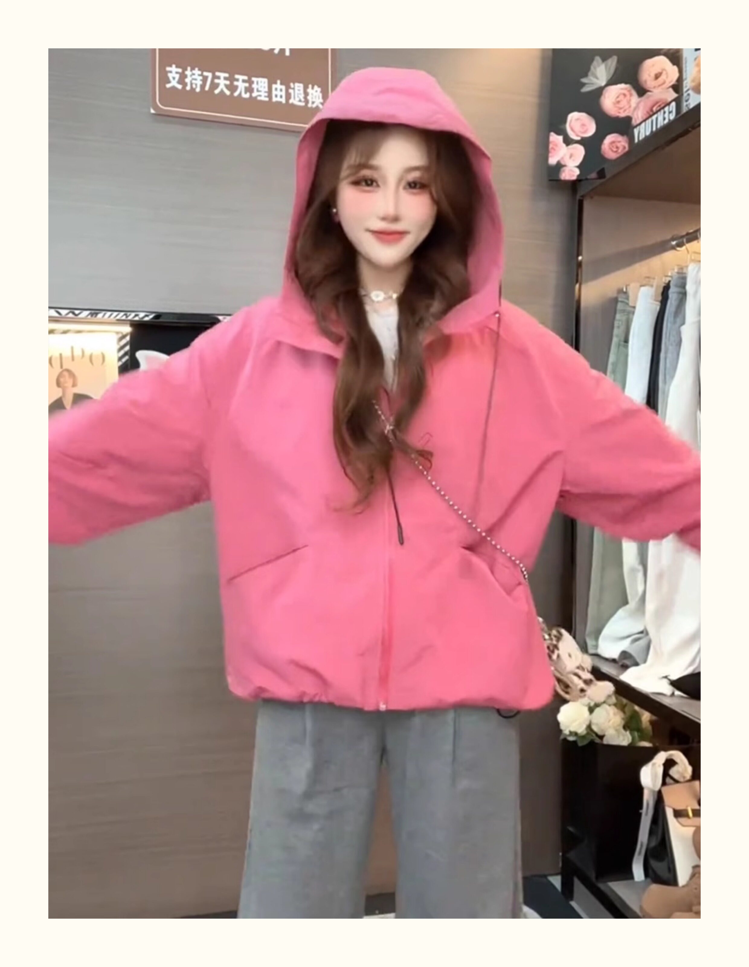 Kurze Kapuzenjacke mit Kordelzug für Damen 2025, Frühling und Herbst, koreanischer Stil, ausländischer Stil, vielseitiges Freizeitjacken-Oberteil