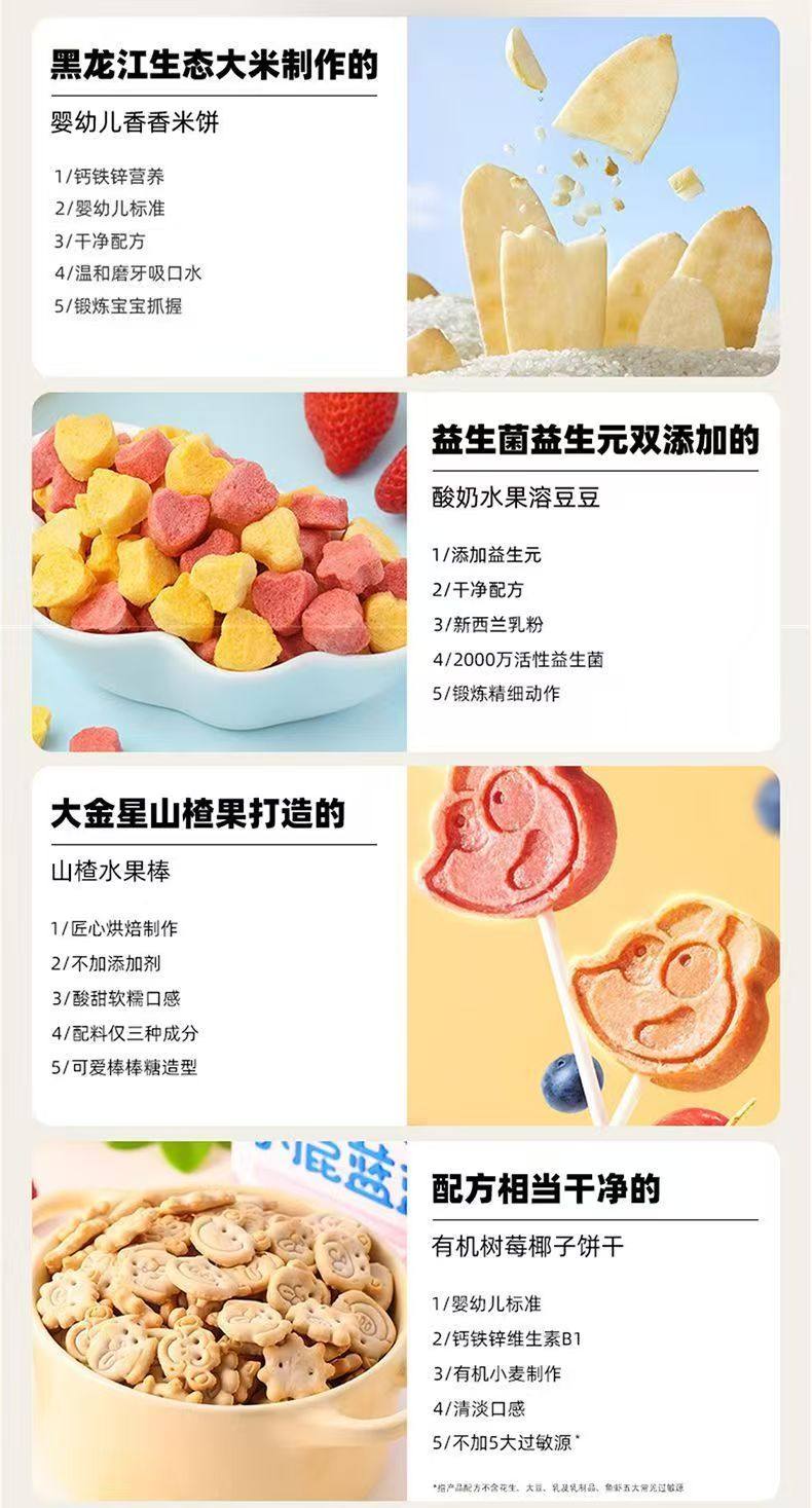 Pack de regalo Snacks para bebé Fawn Blue, hojaldres de pastel de arroz y frijoles derretidos (Receta gratuita para bebé de 6 meses sin aditivos)