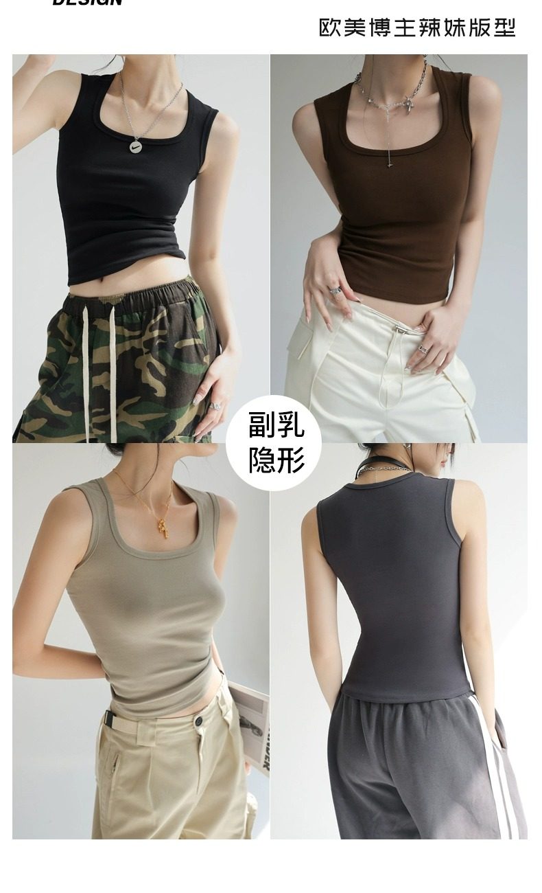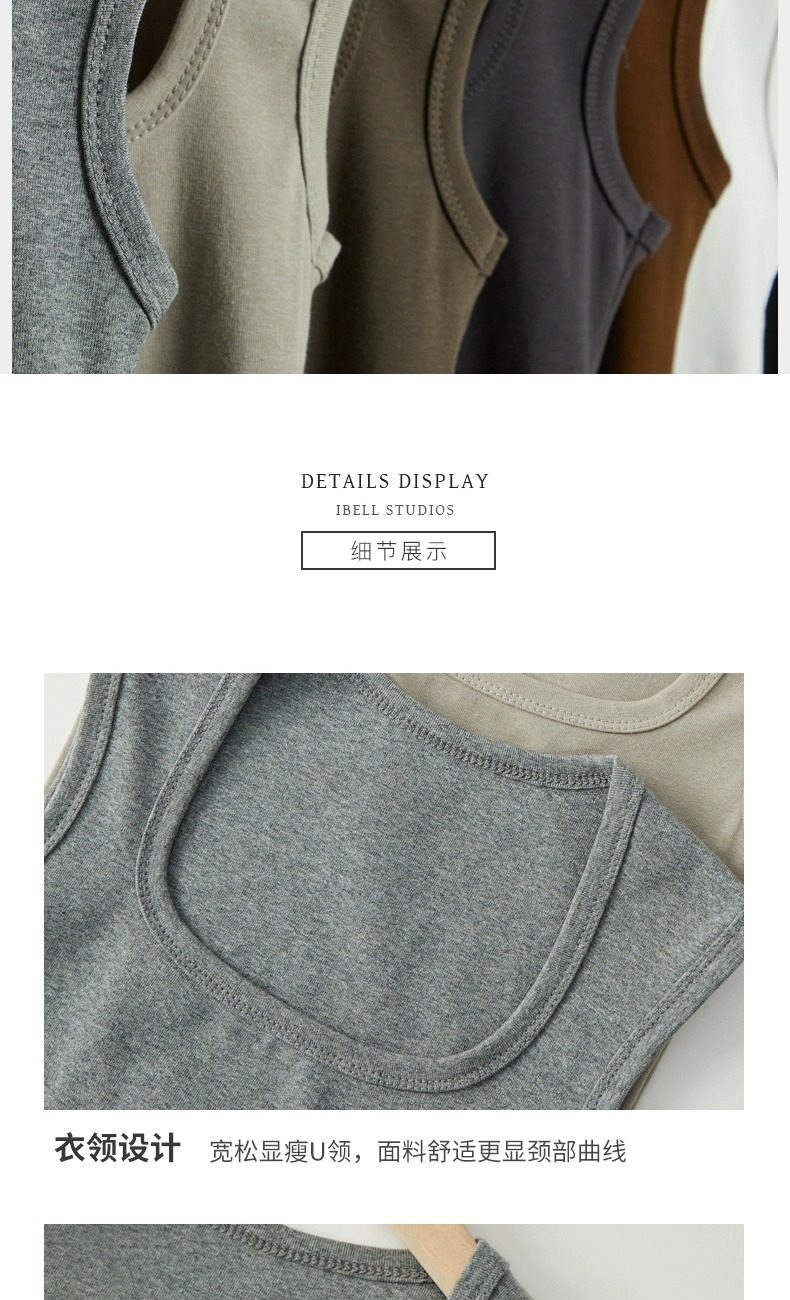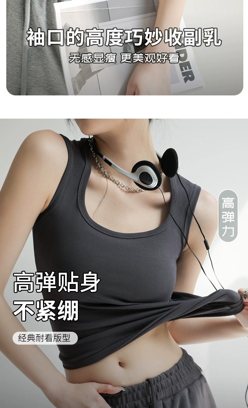 灰色吊带背心女内搭2025新款夏季棉外穿遮副乳工字宽肩带打底方领