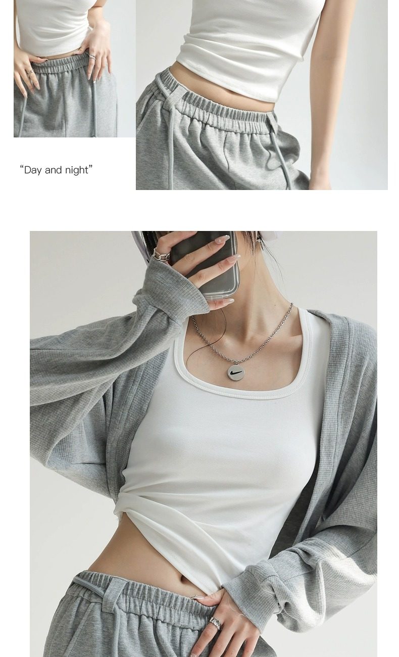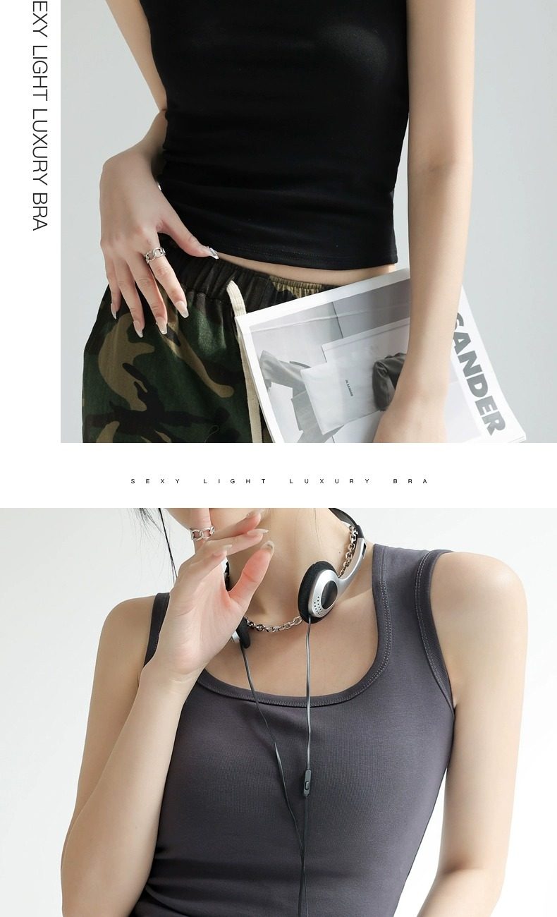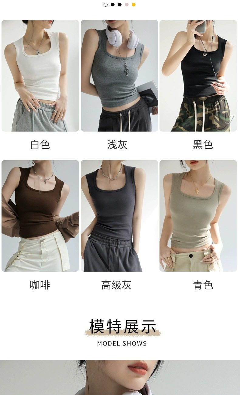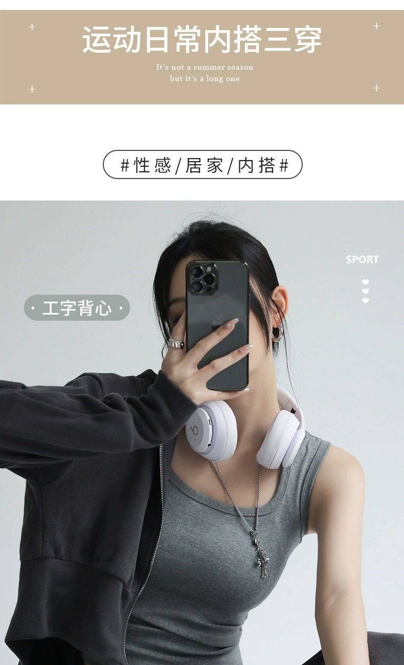 灰色吊带背心女内搭2025新款夏季棉外穿遮副乳工字宽肩带打底方领