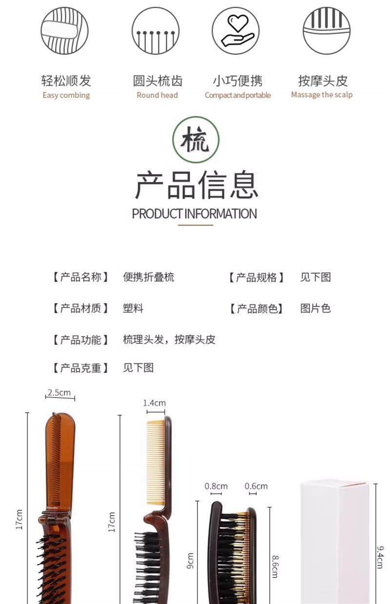 Улучшенная версия! Расческа из щетины кабана в японском стиле, складная и портативная, подходит как для прямых, так и для вьющихся волос, маленькая дорожная расческа.