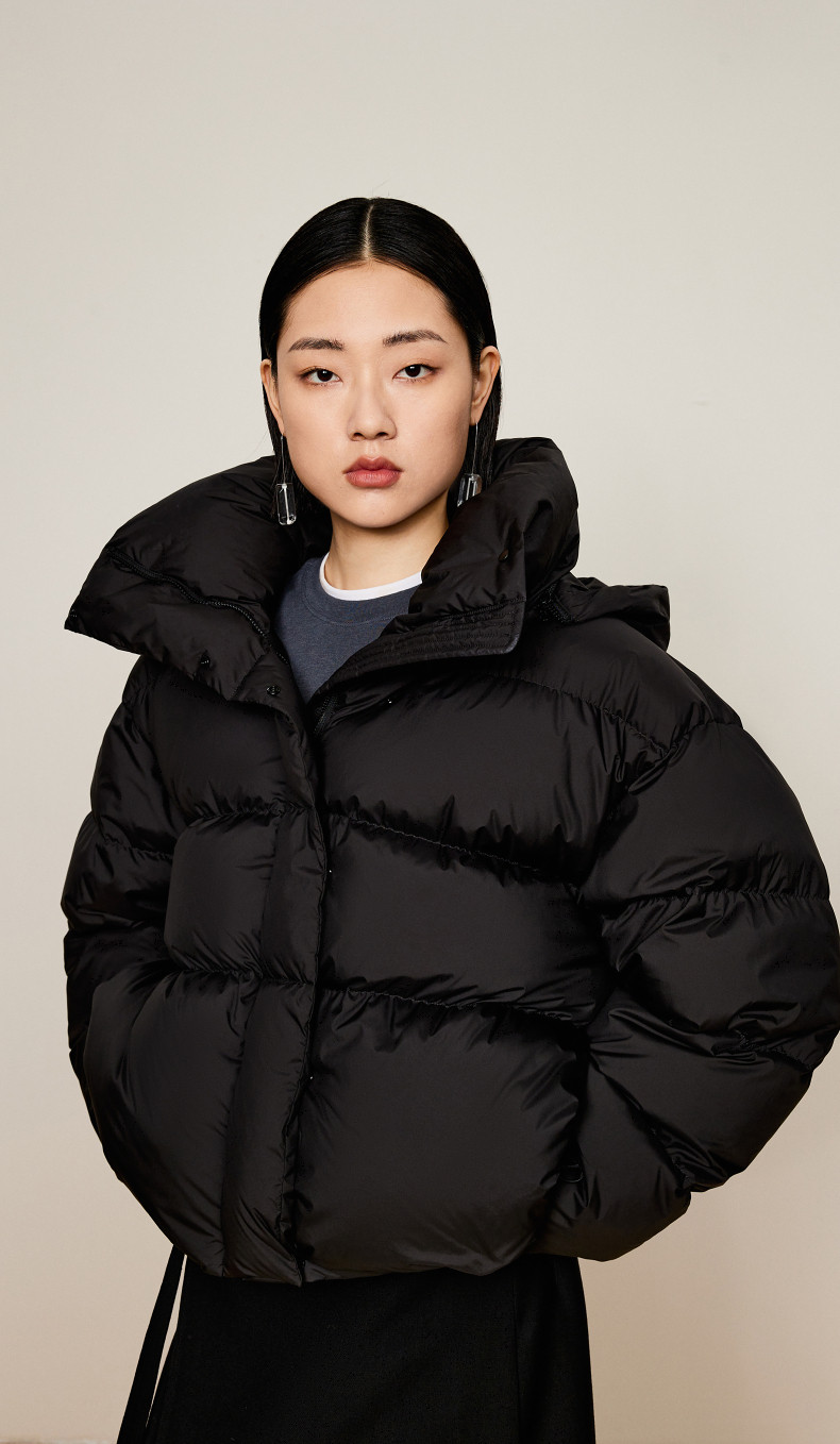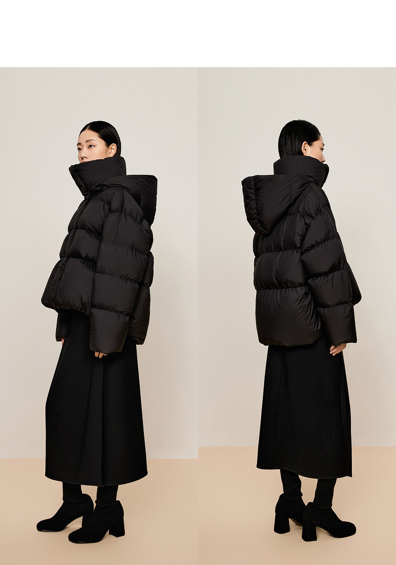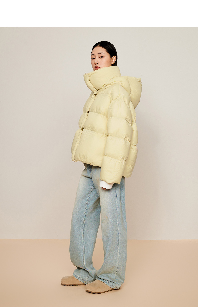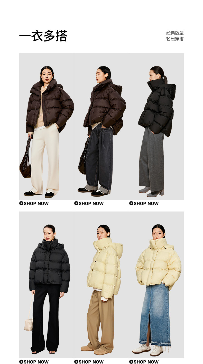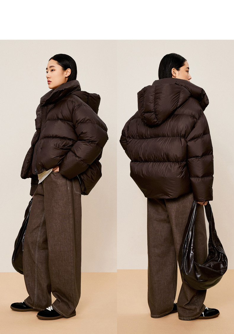 【科鲁达白鹅绒】LESS冬连帽百搭短款面包羽绒服外套女2O0C13630