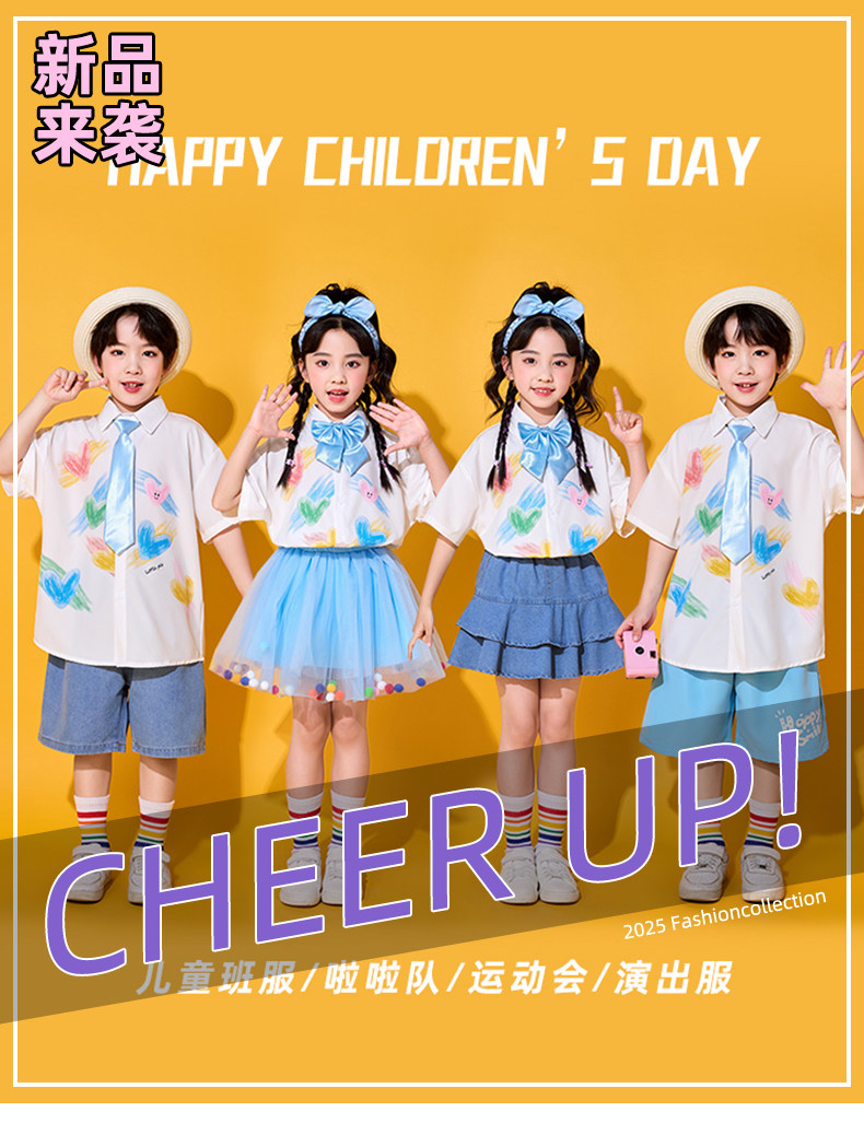 六一儿童啦啦队演出服学院风小学生合唱朗诵表演幼儿园毕业照班服
