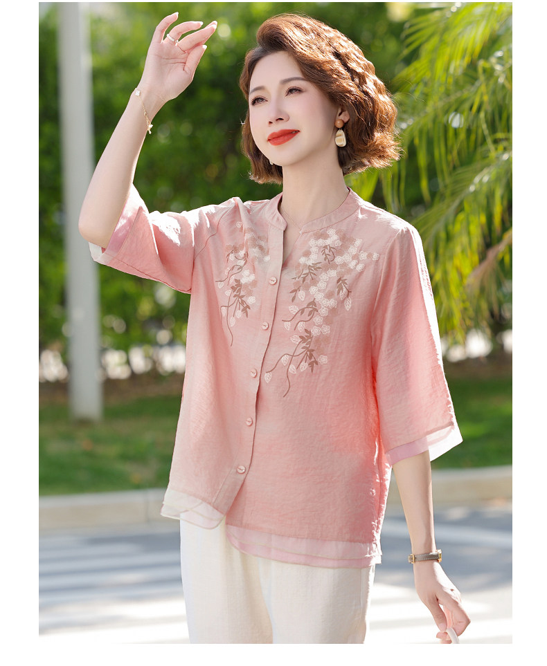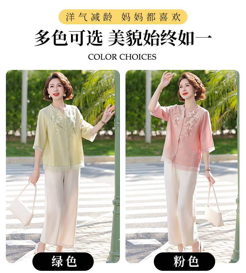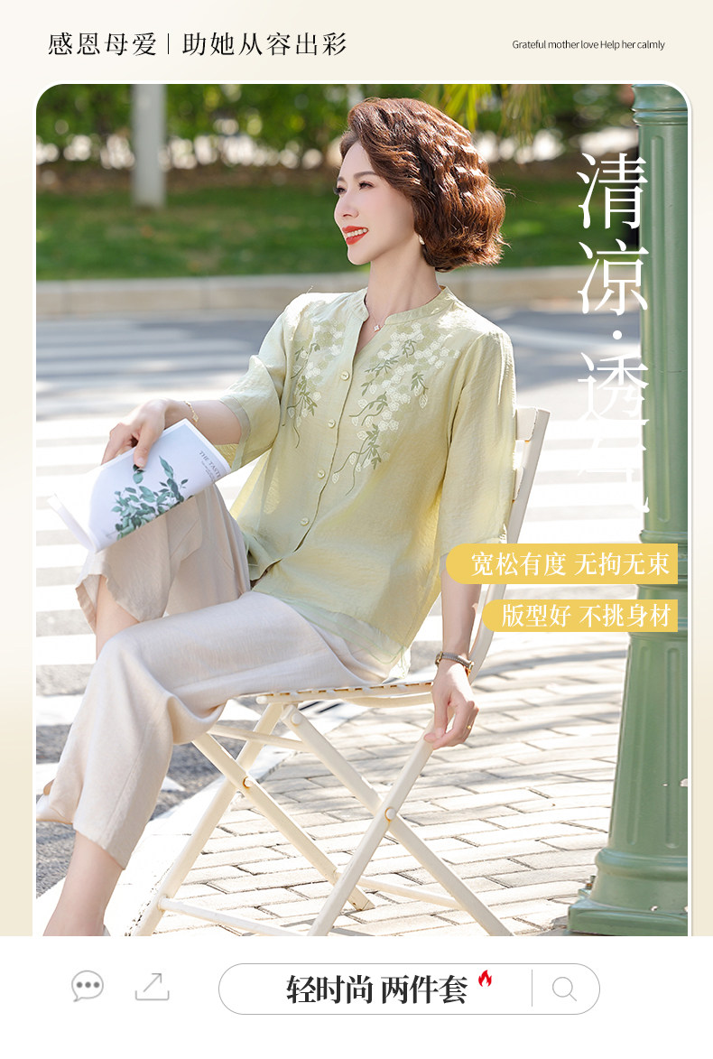 Luo Meng Mode Mom Sommer Anzug 2025 Neue dame Top Kleine Hemd Mittleren alters und Ältere frauen sommer Zwei-stück Set