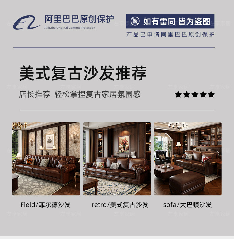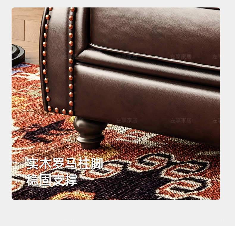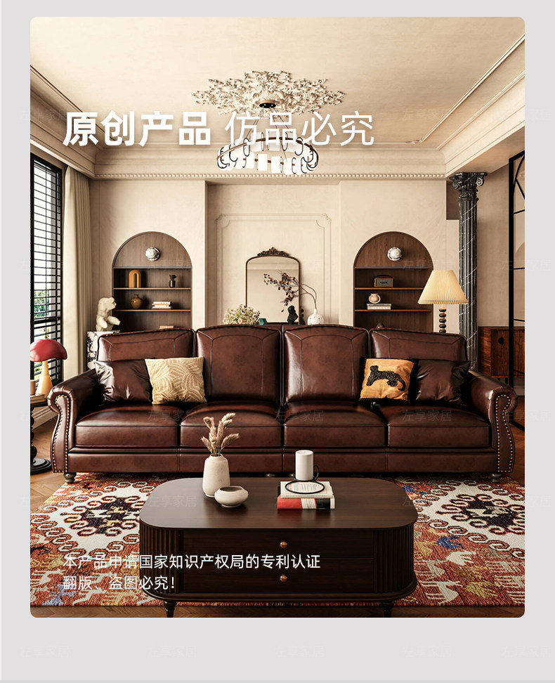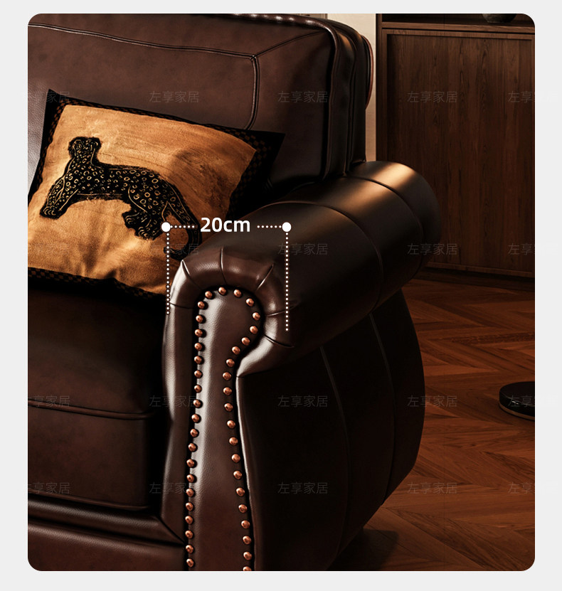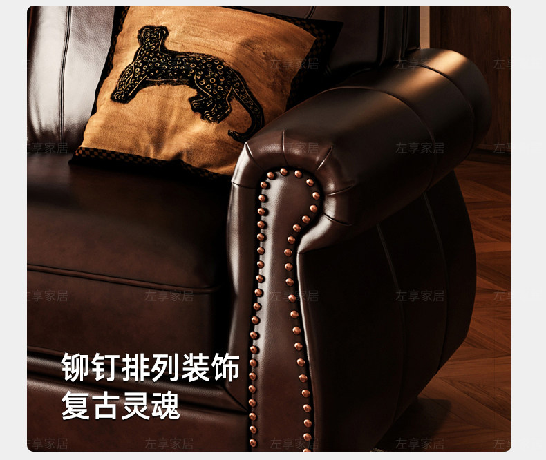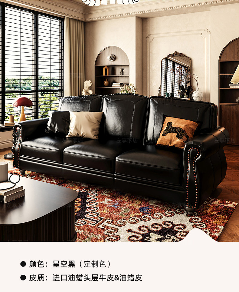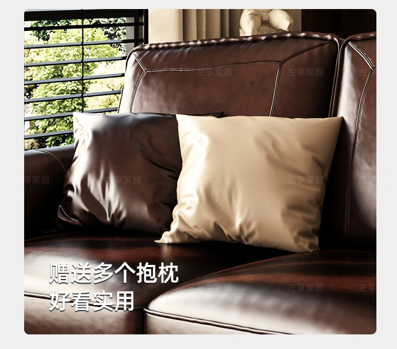 美式真皮沙发复古油蜡皮三人四人位客厅直排棕色高级感别墅家具