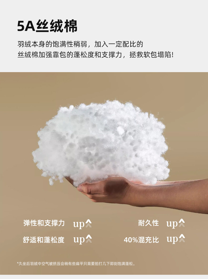 坐垫填充物材质 羽绒,乳胶,高密度海绵,丝棉,记忆海绵