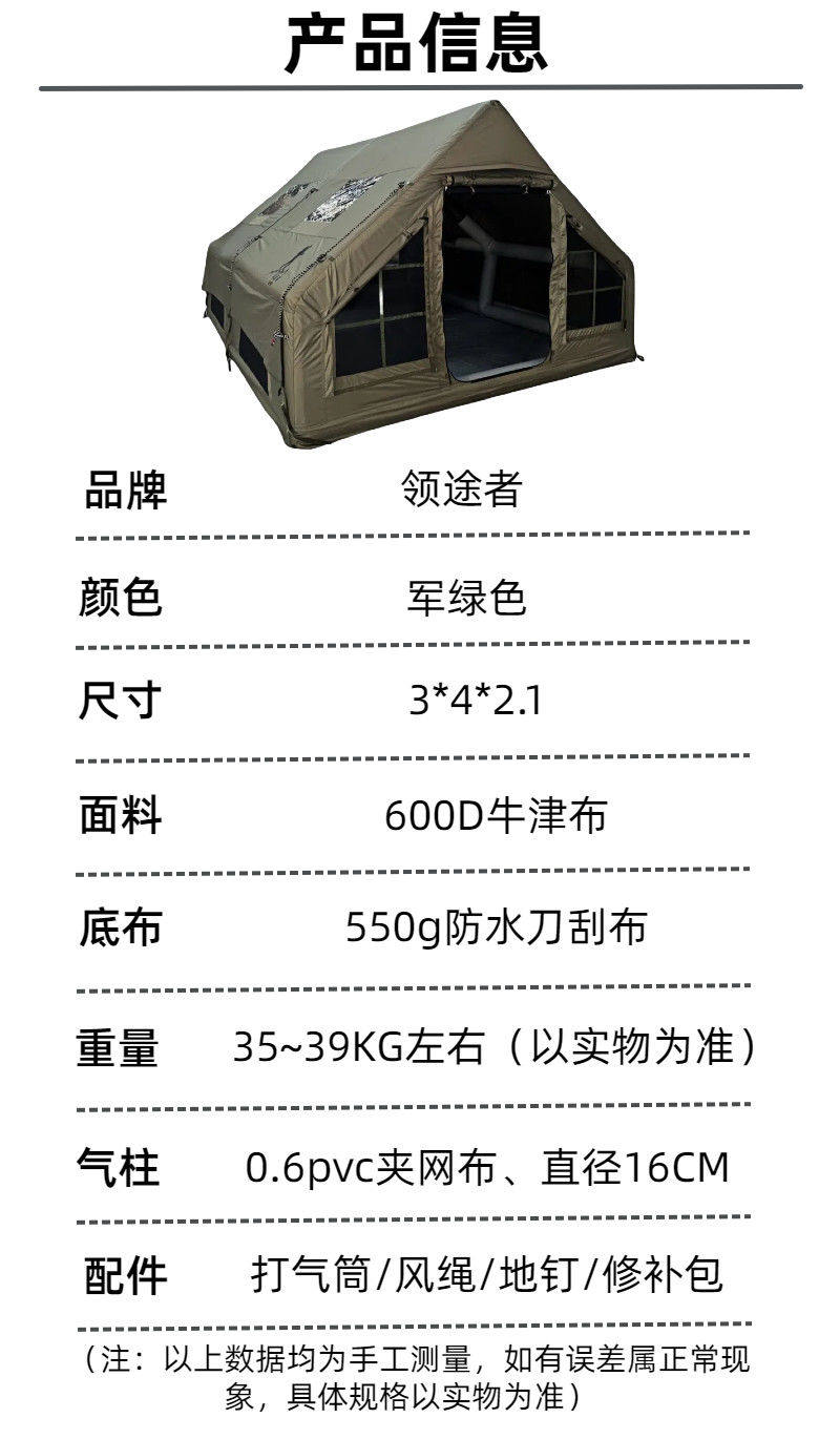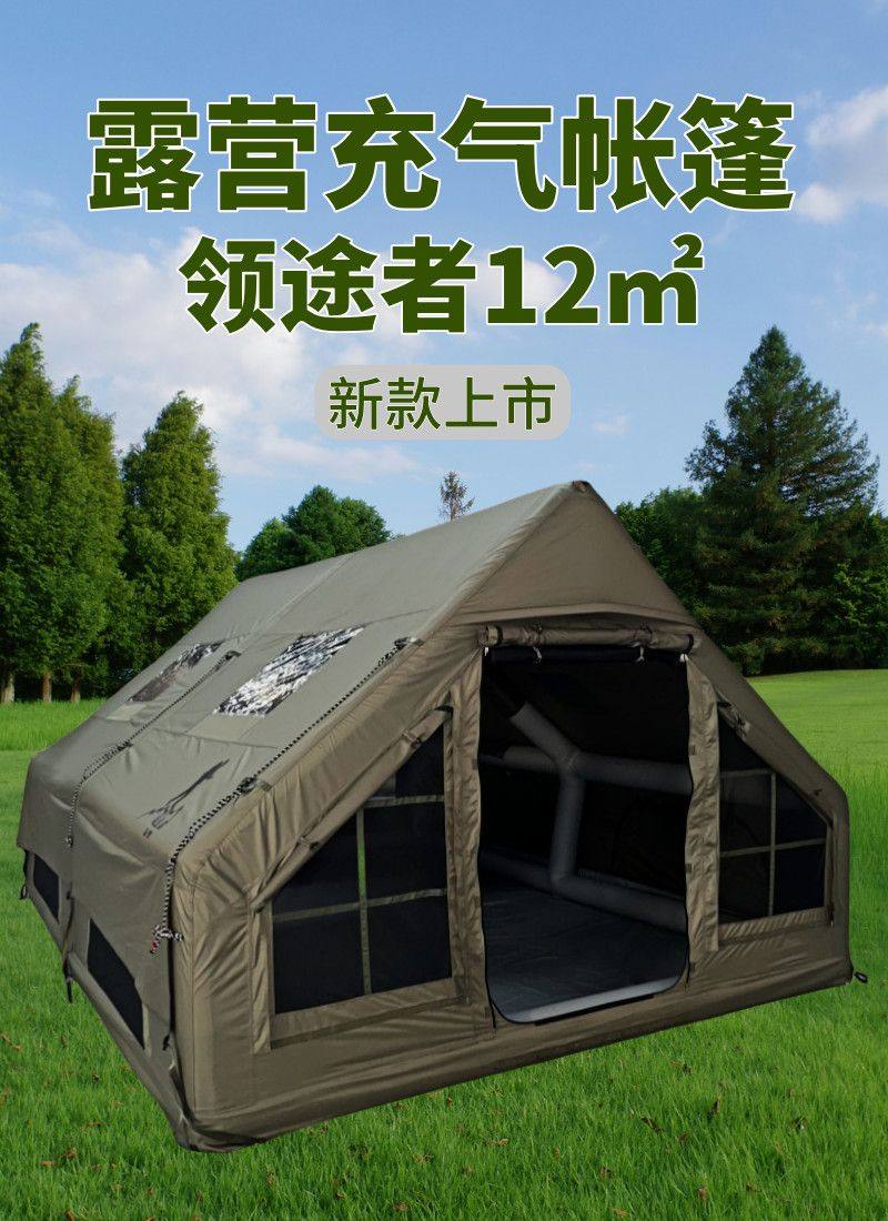 领途者12平米充气帐篷军绿色加厚600D牛津布家庭室外旅行防雨防风