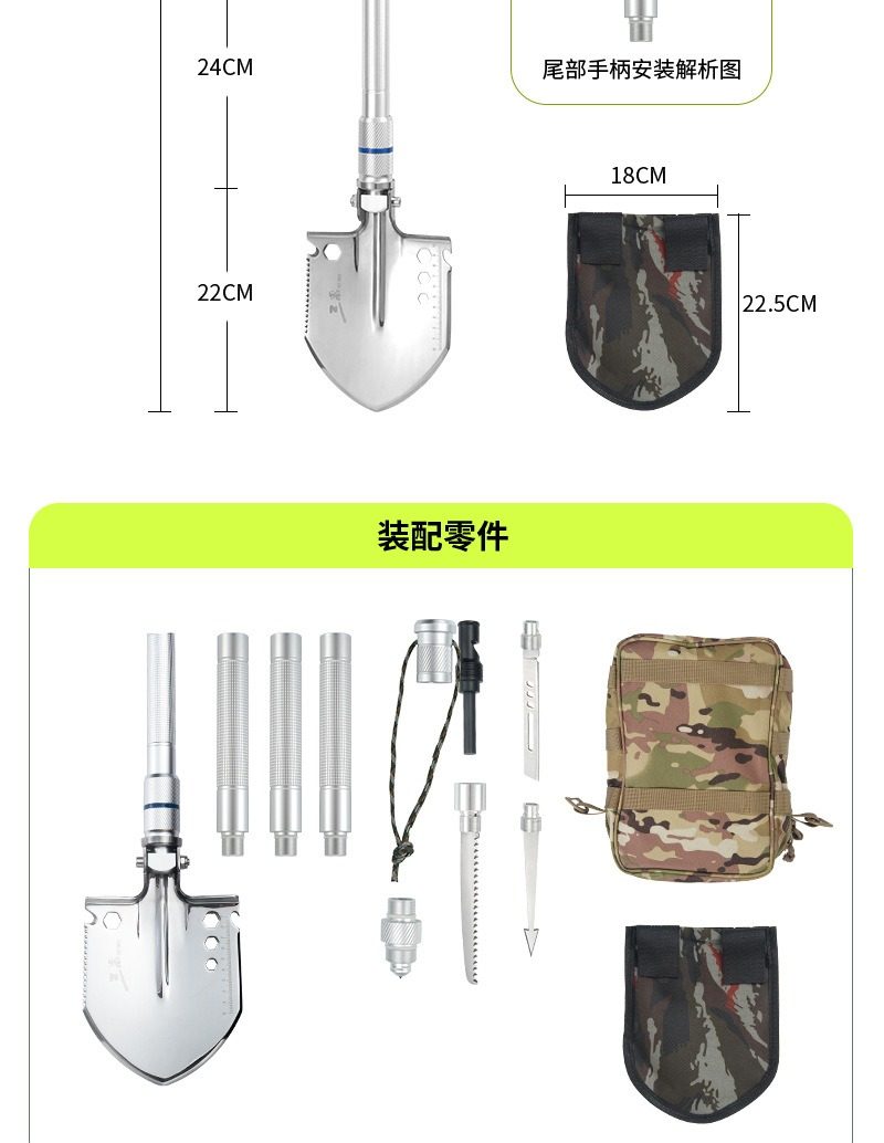 Tactical Shovel for Survival in the Wild, Military Shovel Made of Manganese Steel, Durable Outdoor Military Shovel, Multifunctional Fishing Shovel