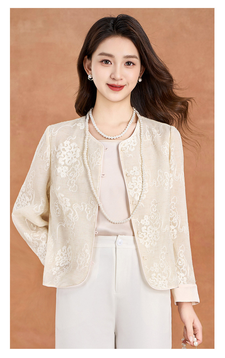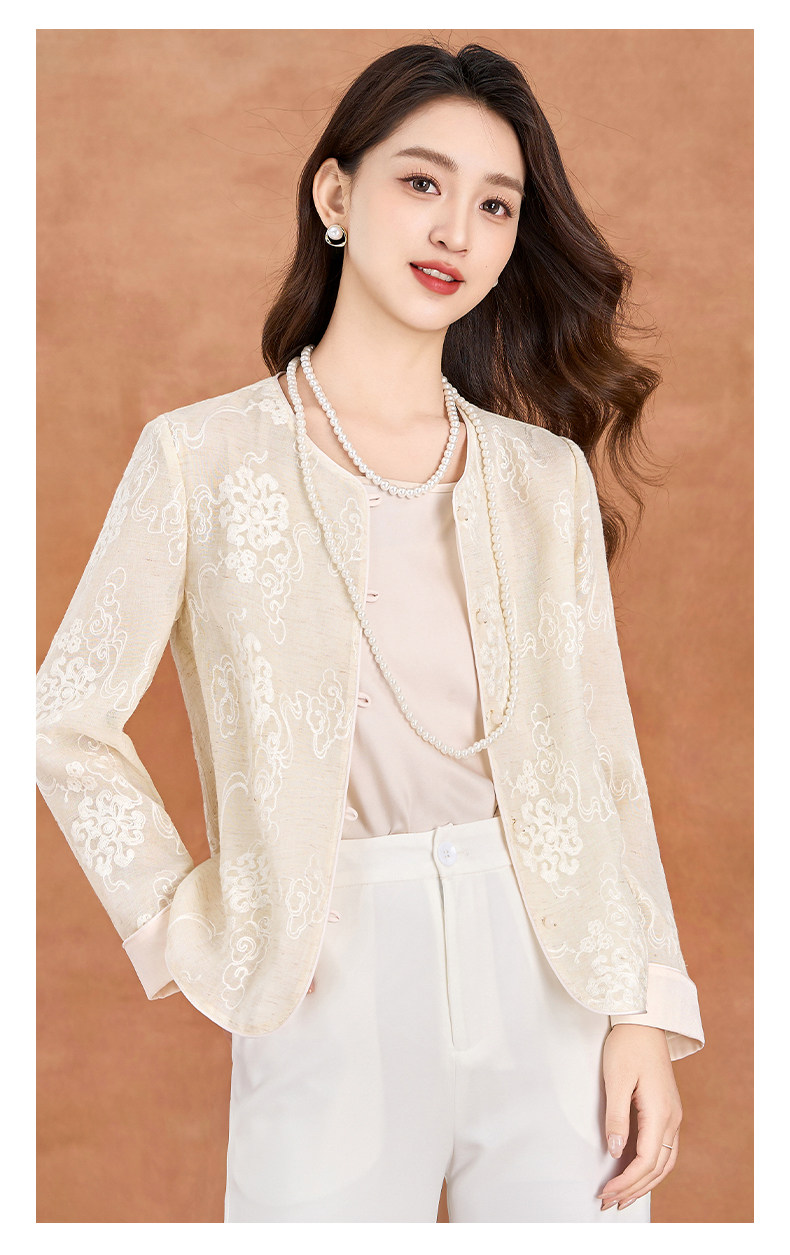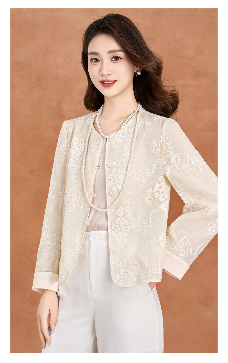 颜色分类 米色【女士短外套早秋季新中式国风女装刺绣上衣高端大气质上档次今年流行爆款修身白色贵夫人国际大品牌轻奢高级感超火40减龄穿搭显瘦遮肉】,浅蓝色【名媛小香风外套春秋短款薄款冰丝长袖防晒衬衣小个子阔太太洋气高贵休闲时尚时髦广东普宁衬衫重要场合唐装中年妈妈欧货漂亮巨好看】