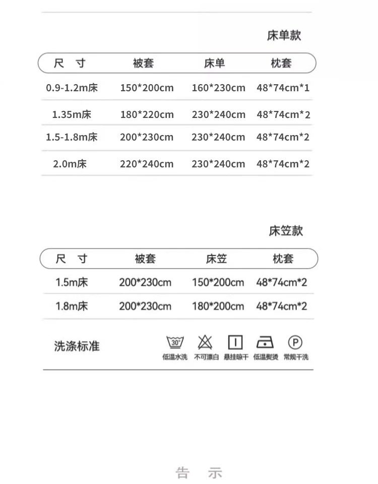 Size 150*200 Single Quilt Cover,180*220 Single Quilt Cover,200X230Cm Single Quilt Cover,220*240 Single Quilt Cover,1.2m Bed [Three-Piece Bed Sheet Set] - Suitable for 150X200Cm Quilt Core,1.5m Bed [Sheet Set of Four] - Suitable for 200X230Cm Quilt Core,1.8m Bed [Sheet Set of Four] - Suitable for 200X230Cm Quilt Core,2.0m Bed [Sheet Set of Four] - Suitable for 220X240Cm Quilt Core,1.5m Bed [Four-Piece Fitted Sheet Set] - Suitable for 200X230Cm Quilt Core,1.8m Bed [Four-Piece Fitted Sheet Set] - Suitable for 200X230Cm Quilt Core