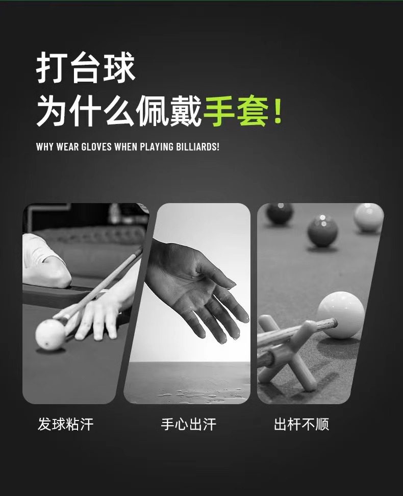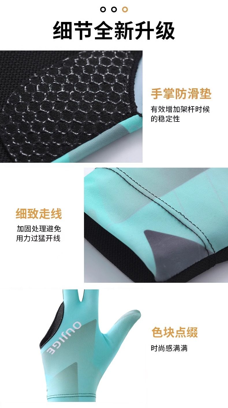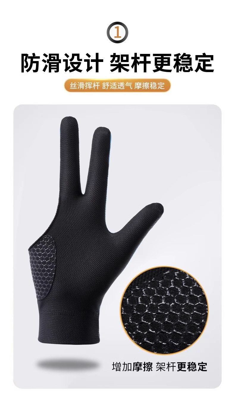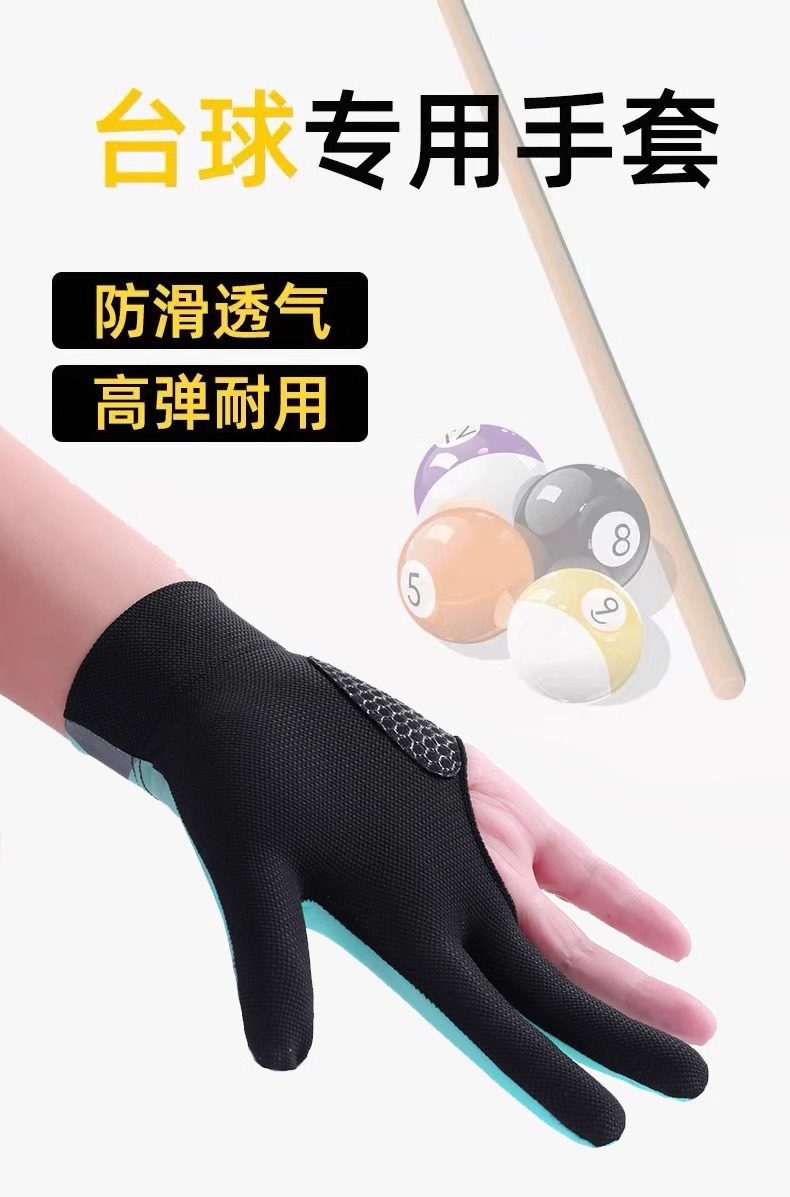 台球手套男漏三指冰丝轻薄透气防滑左右手单只装打桌球专用手套女