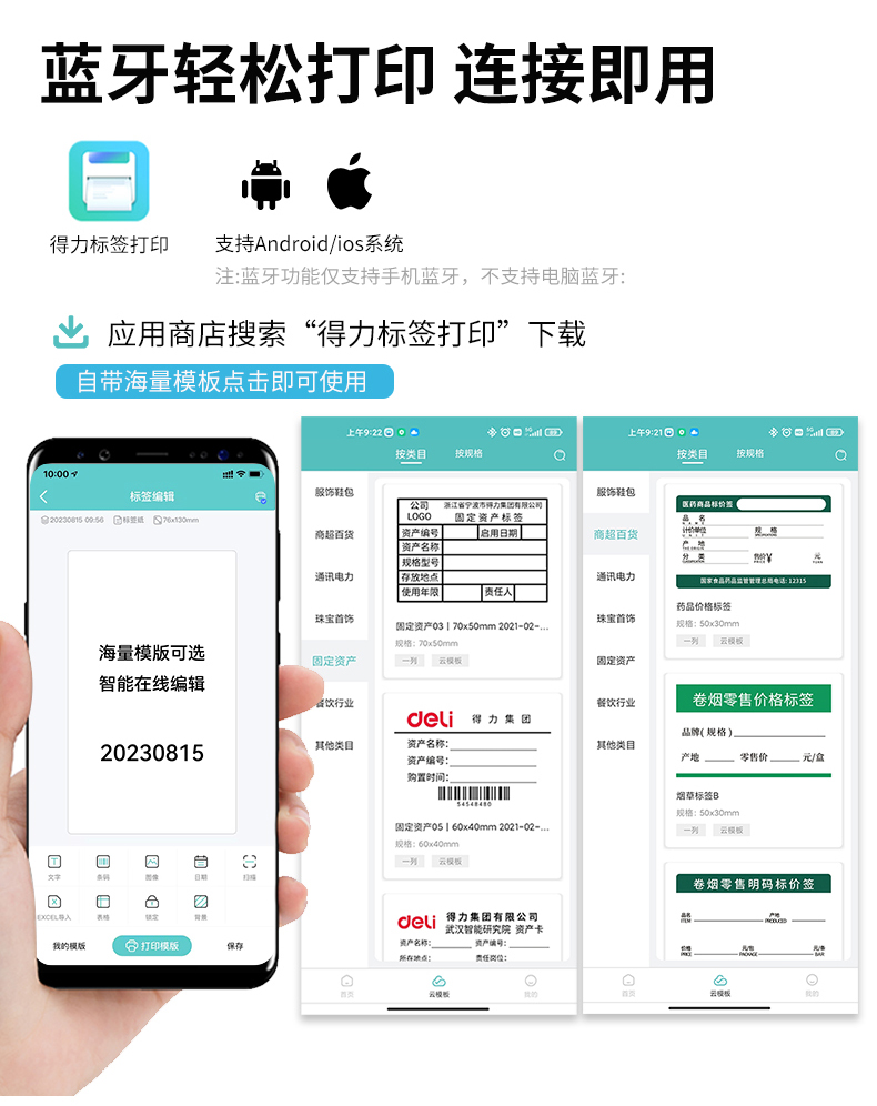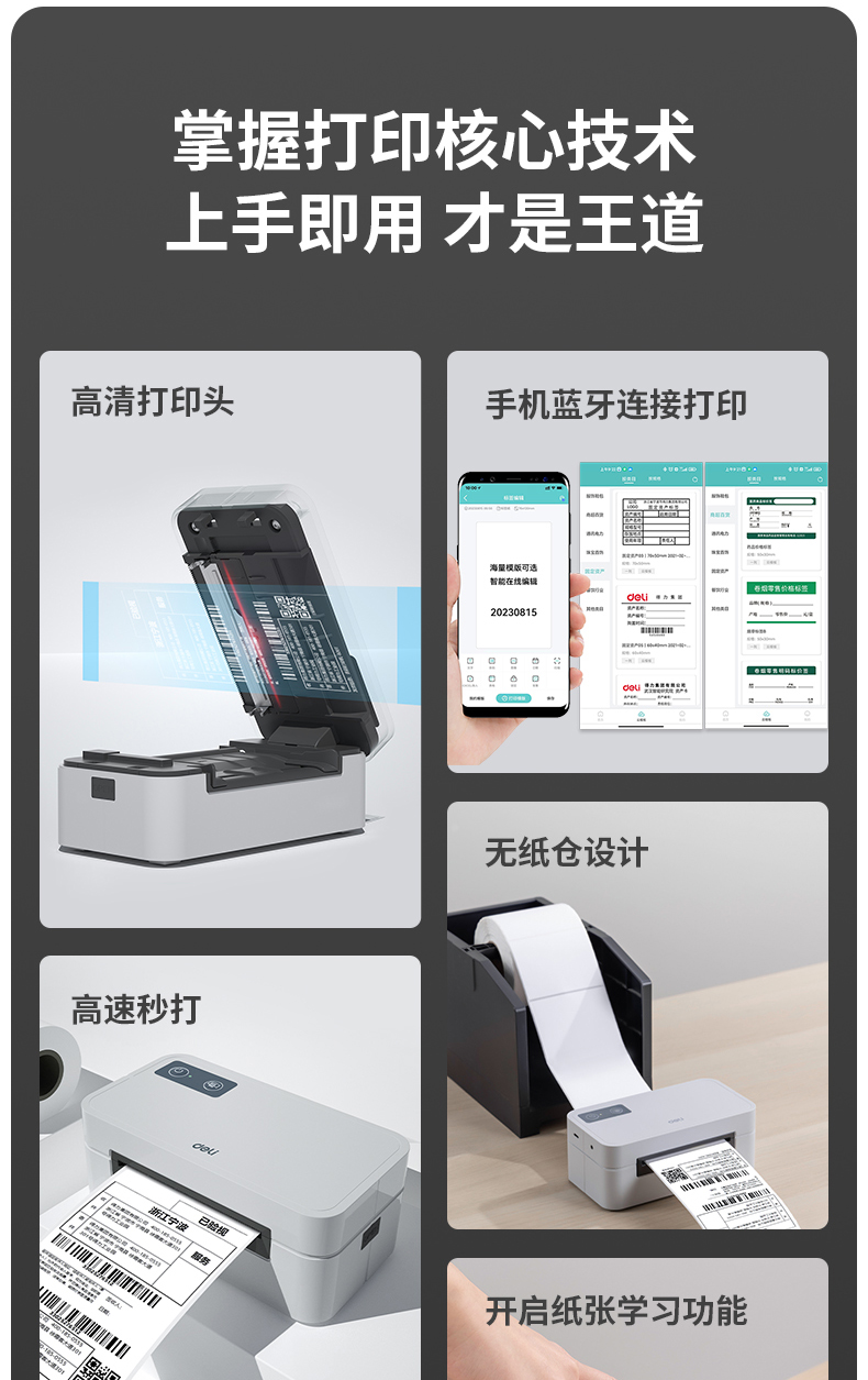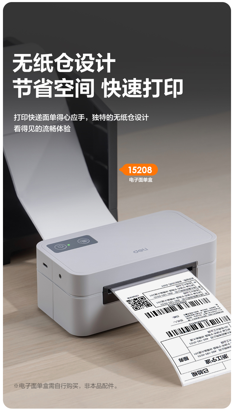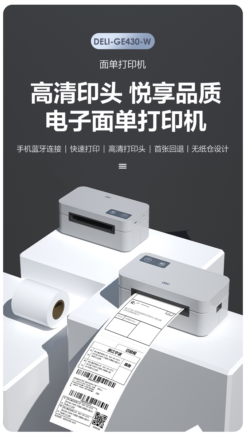 得力标签打印机小型快递单打印机一联单电子面单专用蓝牙热敏标签打单机商用通用便携式订单条码不干胶打印机