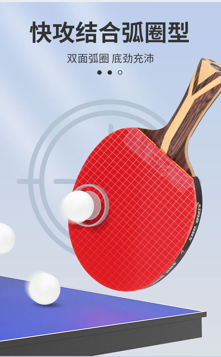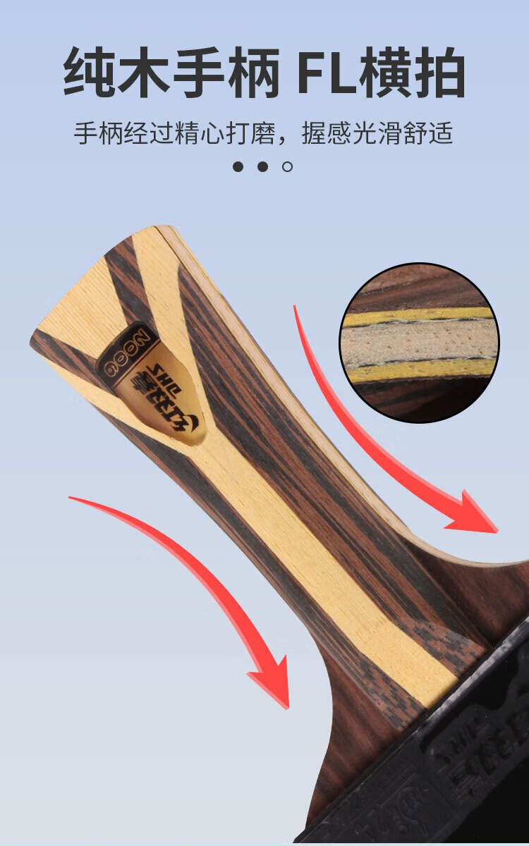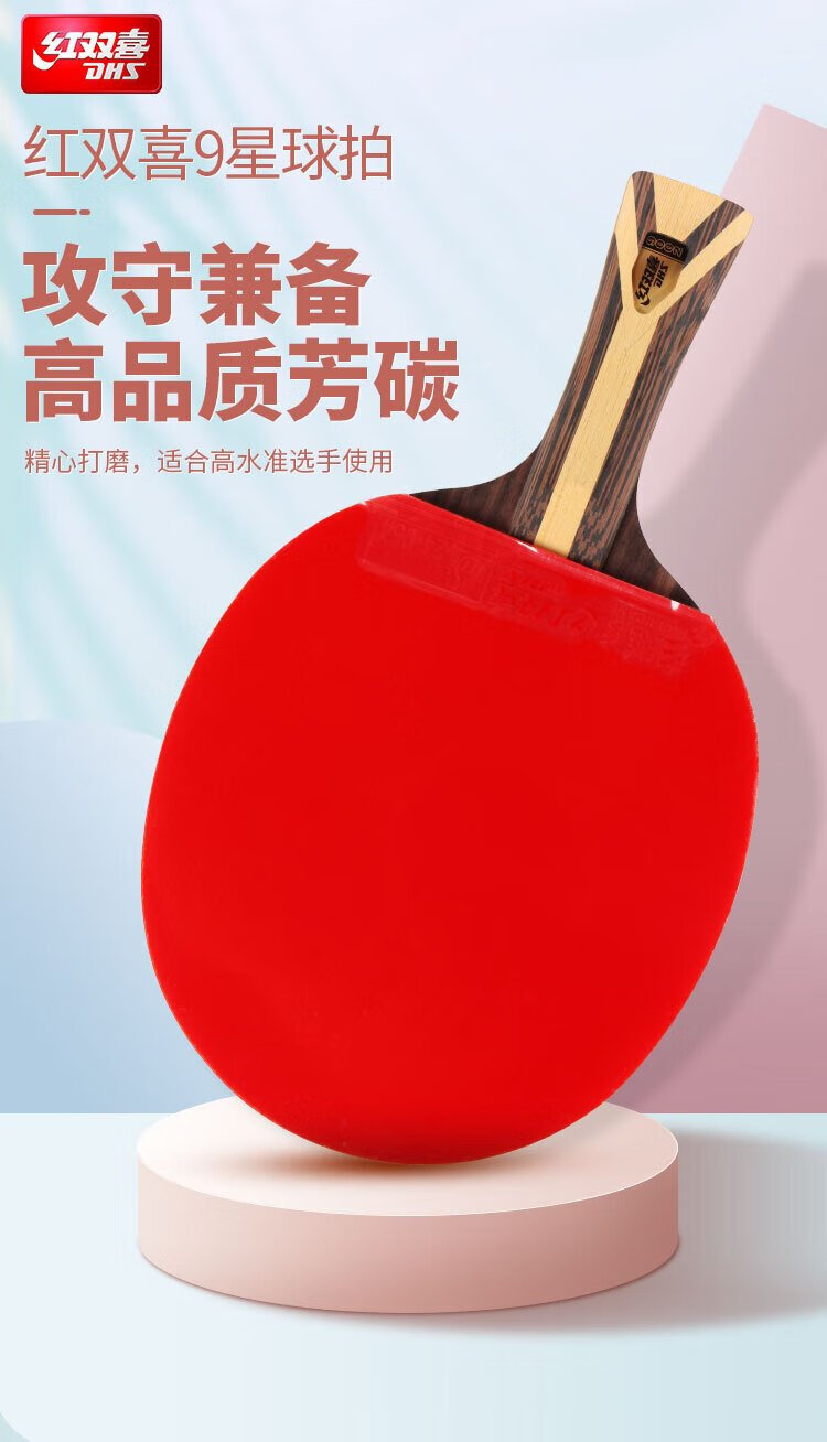 红双喜狂飙九星乒乓球拍单拍黑檀面材+芳碳5+2AC结构7层攻防H9002横含球