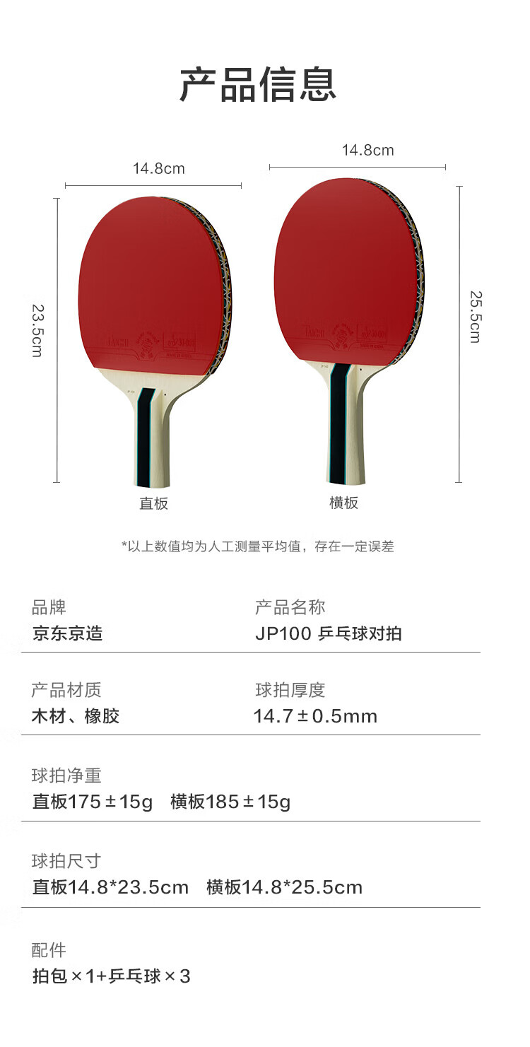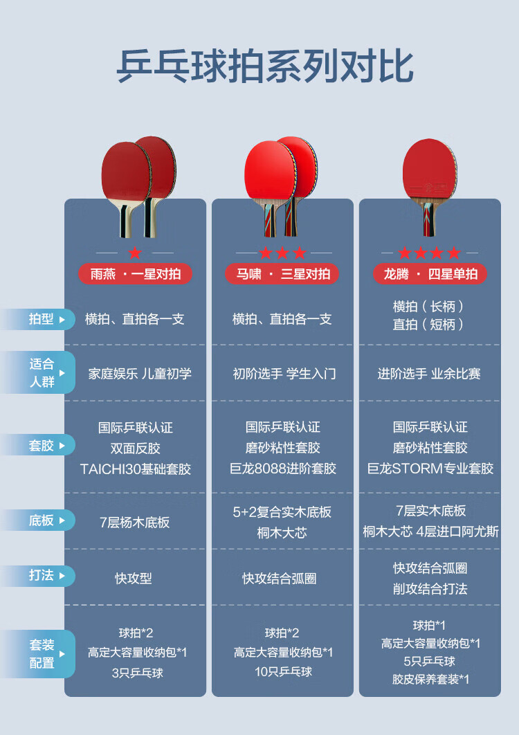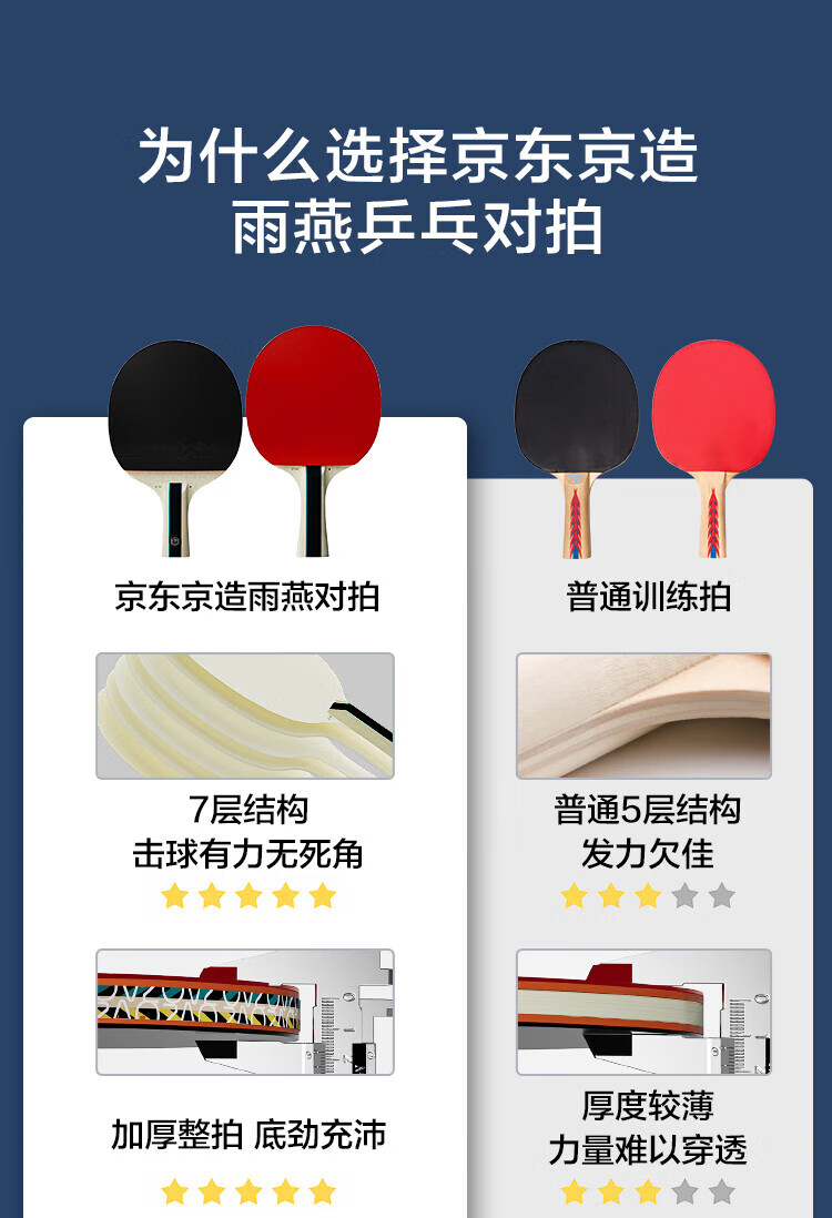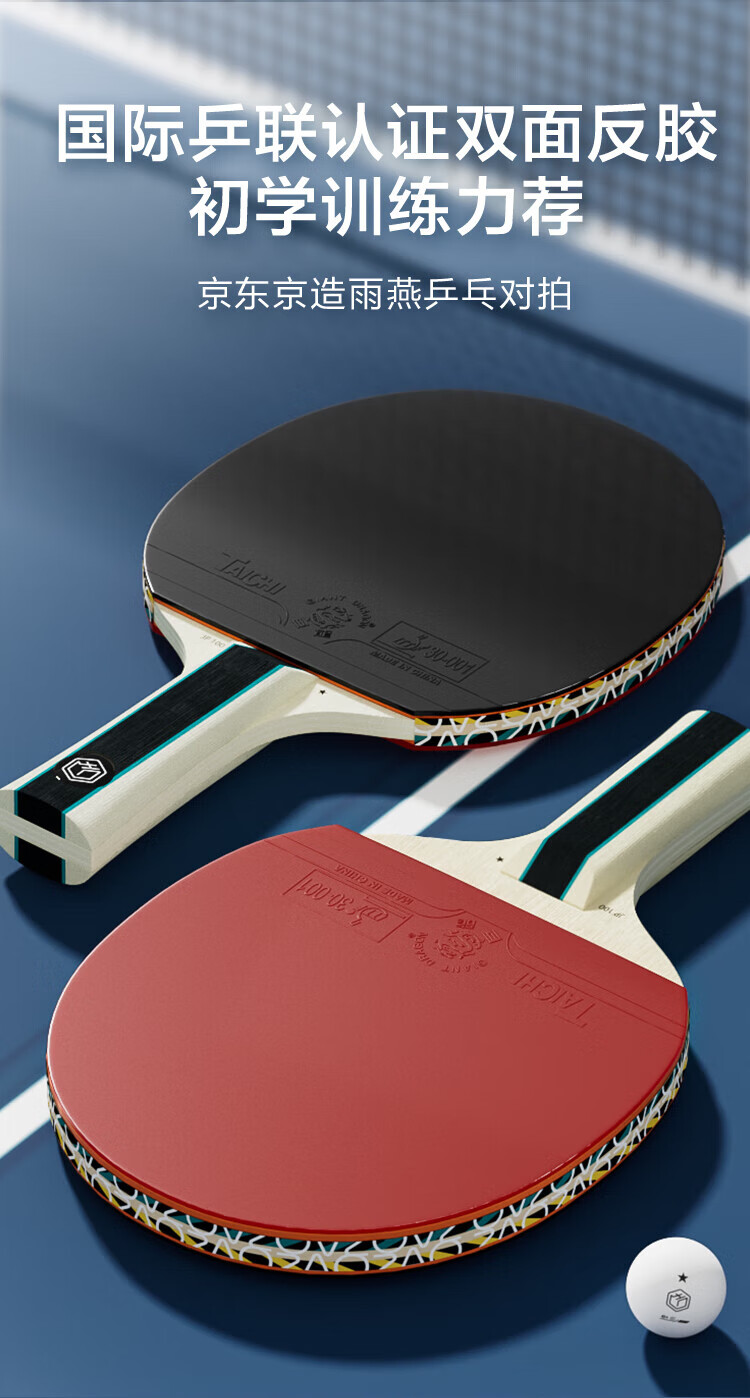 京东京造 雨燕一星乒乓球拍双拍2只装横直对拍训练套装双面反胶1星 横直板