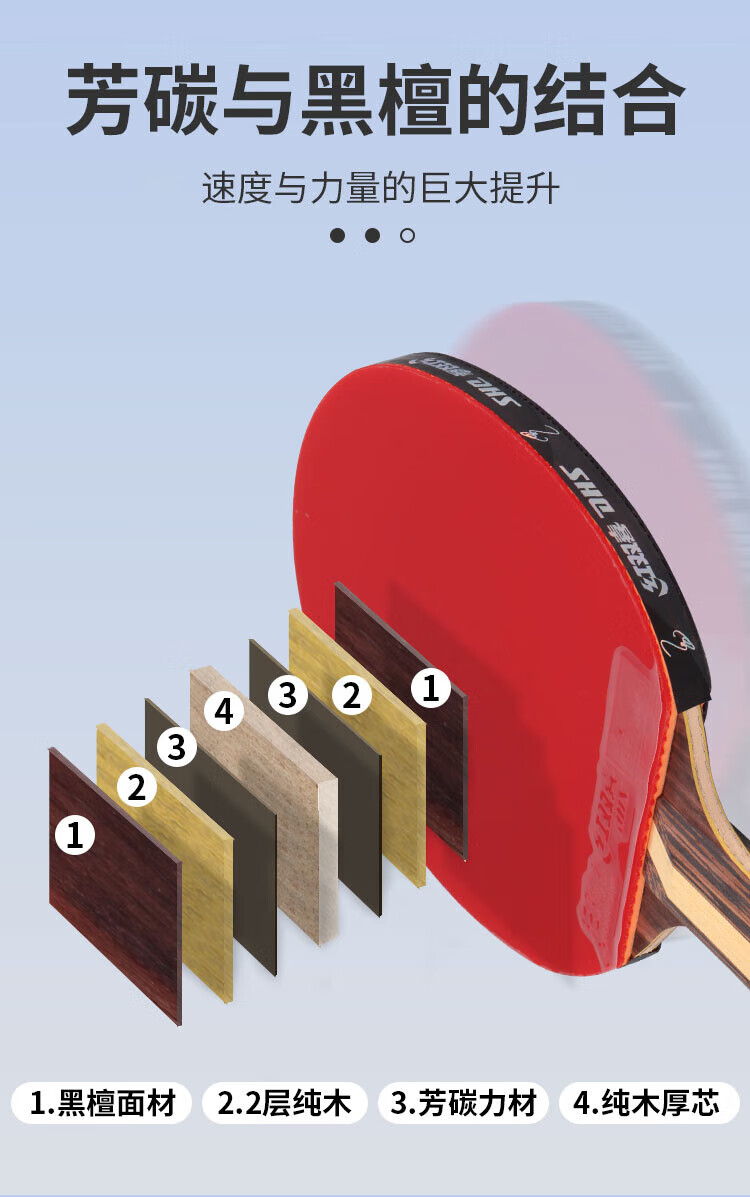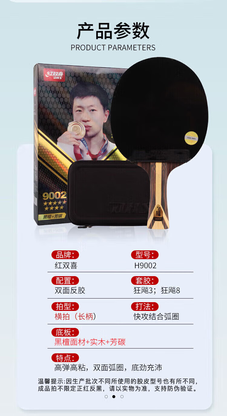 红双喜DHS九星狂飚乒乓球拍横拍专业比赛黑檀芳碳H9002赠球