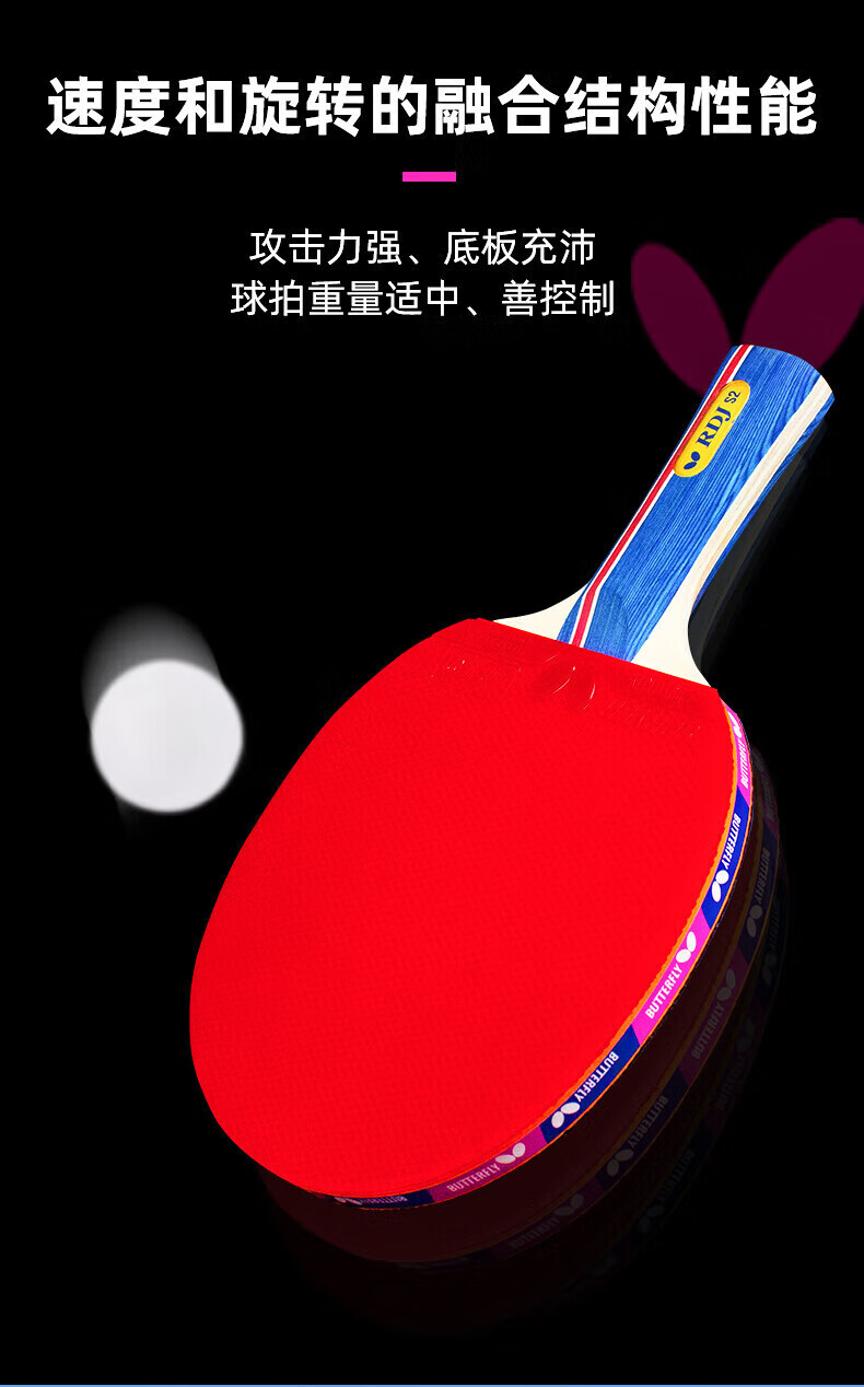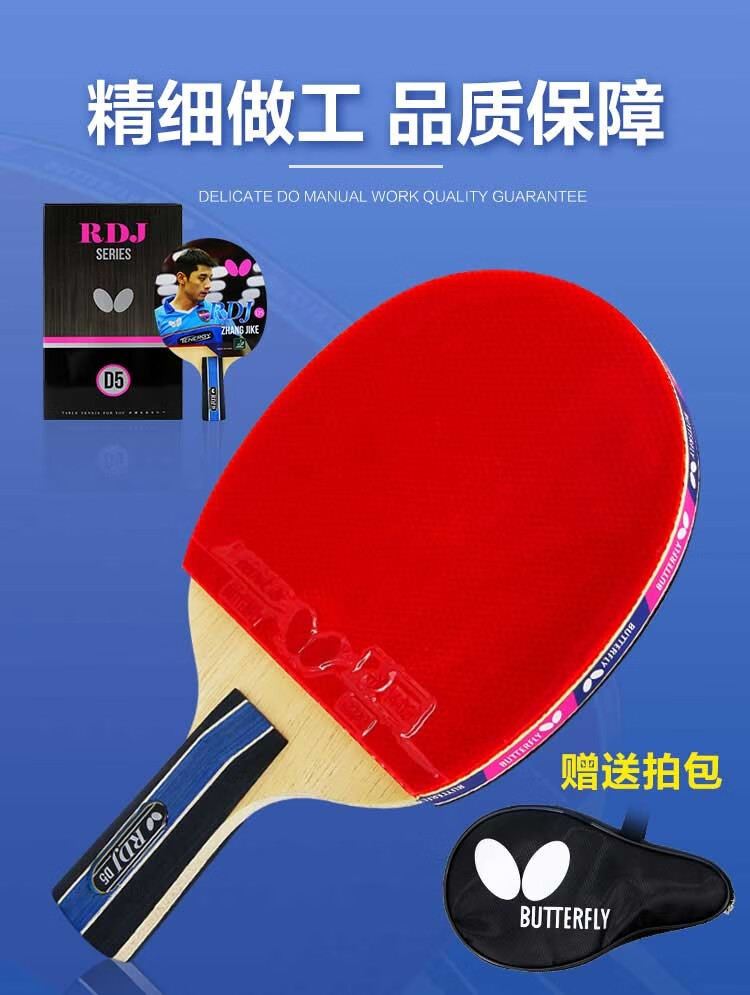 Ракетка для настольного тенниса Butterfly (BUTTERFLY), готовое изделие для начинающих, ракетка для тренировок школьников, двусторонняя обратная лента, с сумкой для ракетки, 5 звезд, держатель для ручки D5 (одинарный)