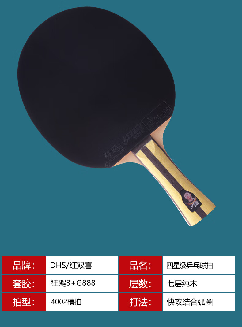 Ракетка для настольного тенниса Red Double Happiness, четырехзвездочная, Kuang Biao King, профессиональная, 4-звездочная, для студентов, начинающих, горизонтальная, с ручкой, ракетка для настольного тенниса, одиночный выстрел, H4002, горизонтальная ракетка с длинной ручкой, одинарная + 6 мячей + набор ракеток