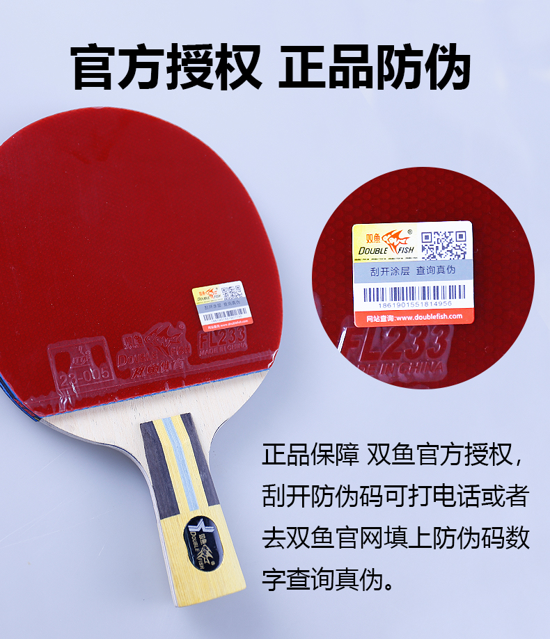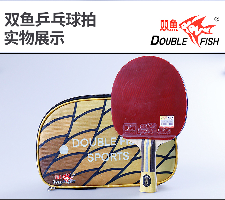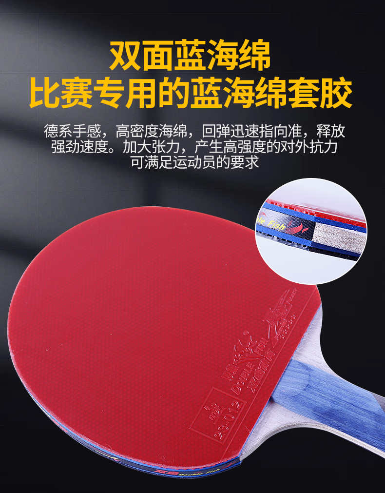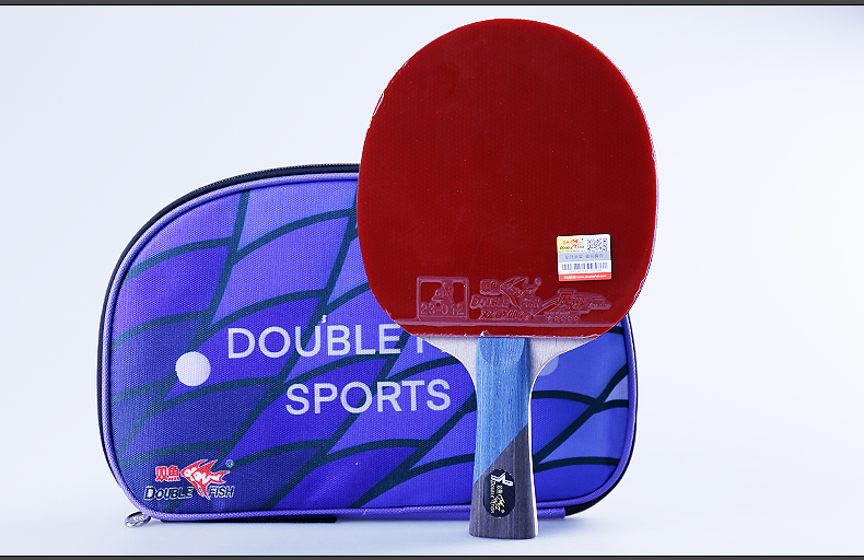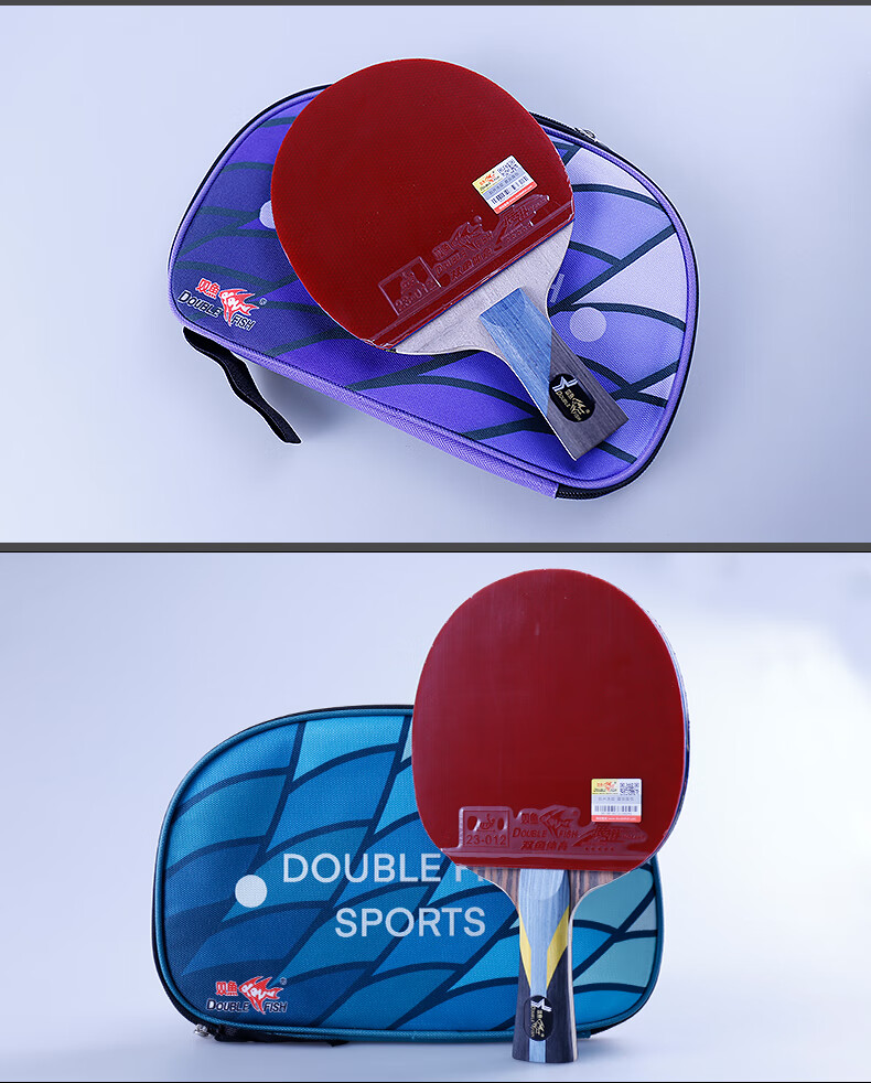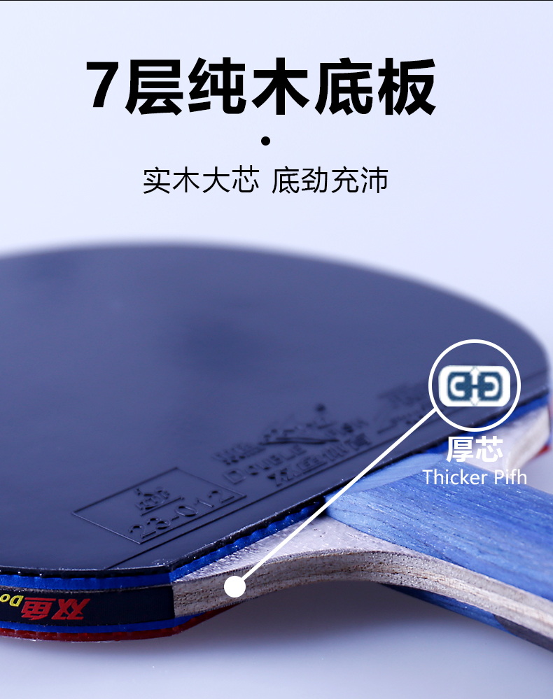 双鱼(DOUBLE FISH)乒乓球拍无极蓝专业竞技蓝海绵高弹进攻型奥运珍藏礼盒乒乓成品拍 【5木+2碳】无极蓝-9(黑檀木) 横拍/FL_长柄