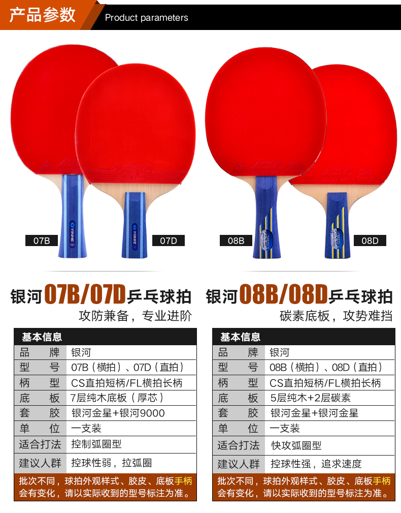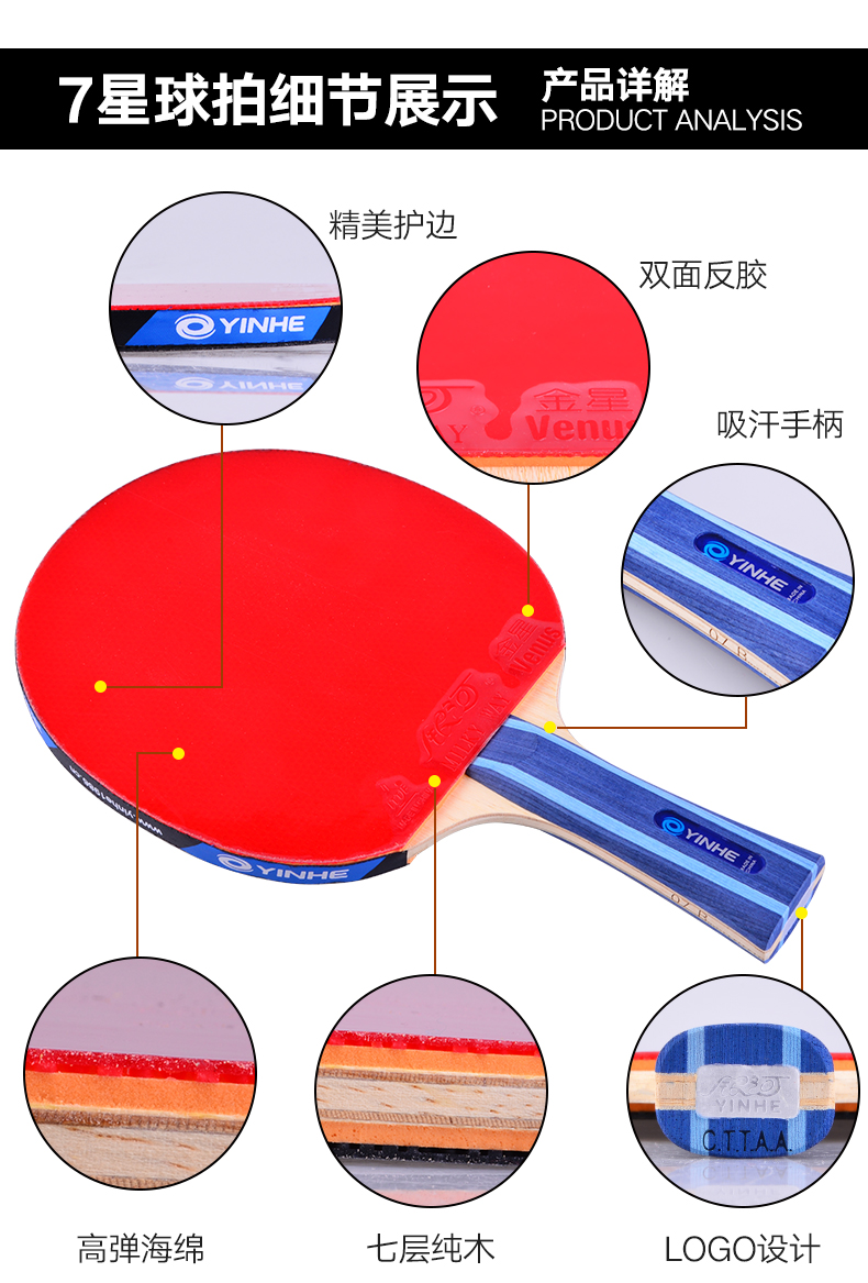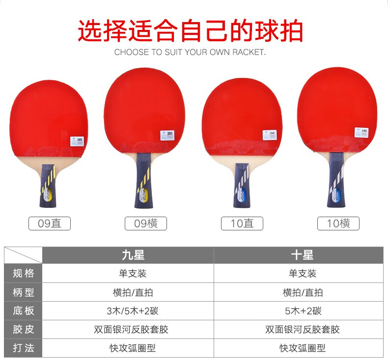 Galaxy (YINHE) table tennis racket 8910-star professional carbon racket 7-star pure wood thick core racket finished fast-break arc type 10-star horizontal shot
