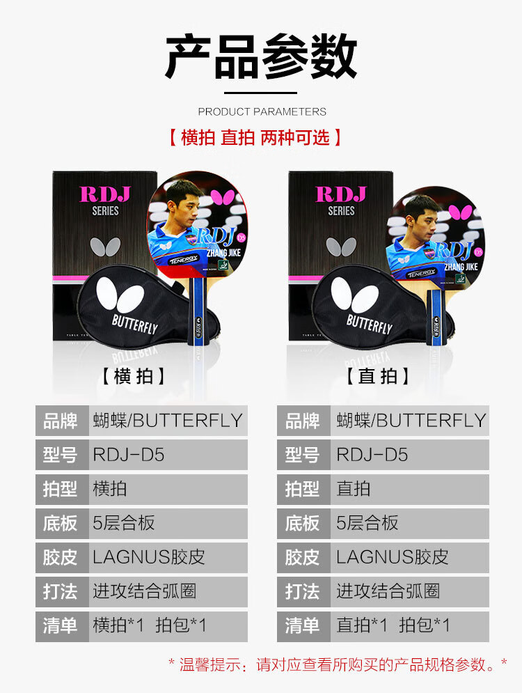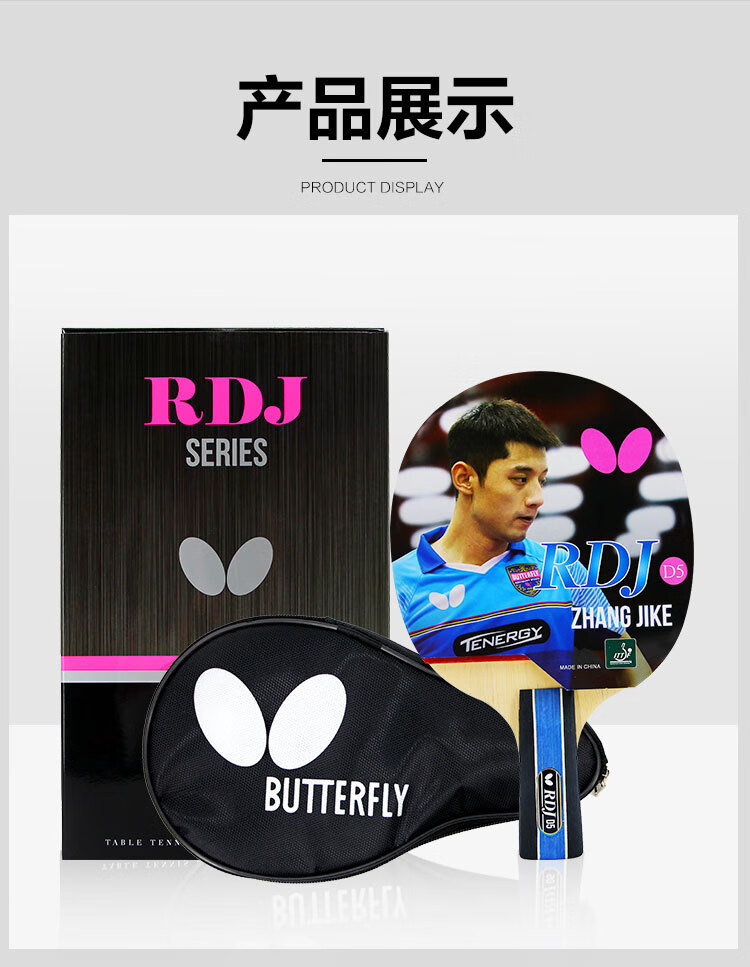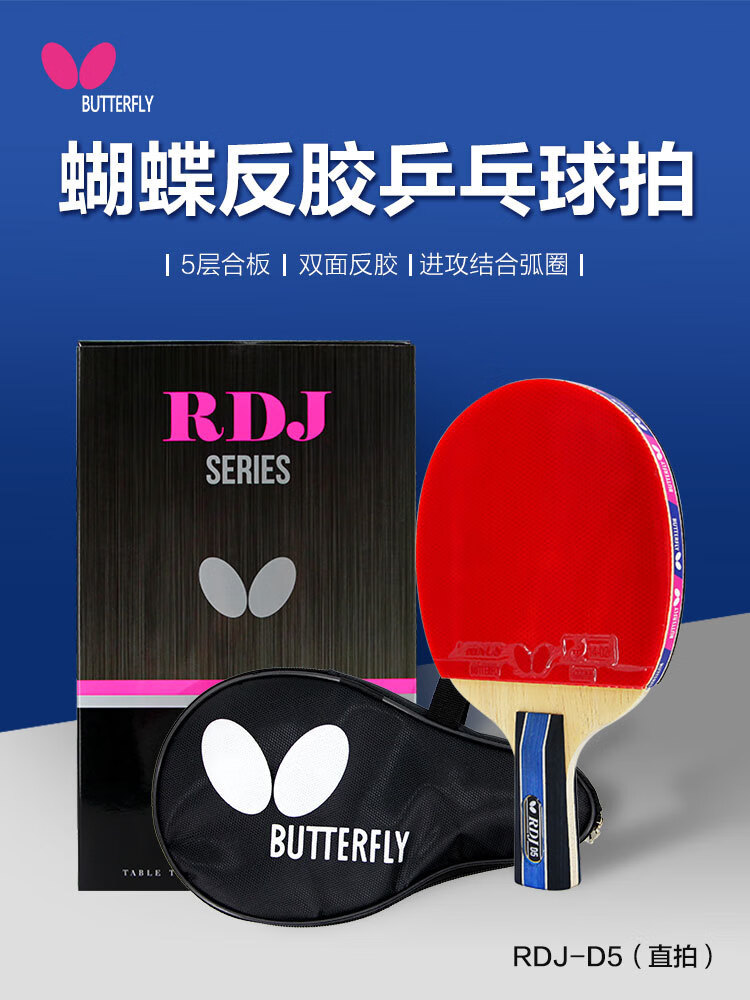 蝴蝶(Butterfly)D5乒乓球拍单拍(附拍套)直拍/短柄进攻结合弧圈双面反胶5层
