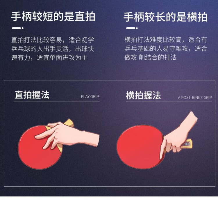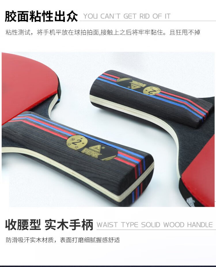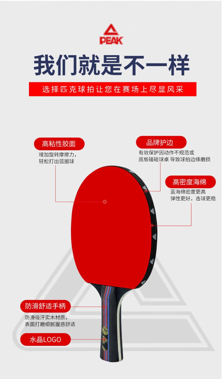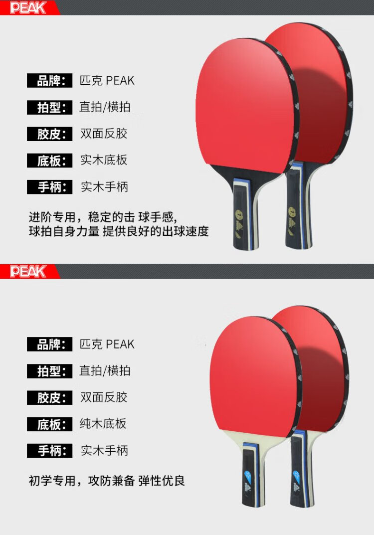 Ракетка для настольного тенниса Peak, двусторонняя антиадгезионная, для учащихся начальной и средней школы, для начинающих, высокая эластичность, для профессионального настольного тенниса, горизонтальная, прямая, одиночная и двойная ракетка, 1 горизонтальная ракетка для любительских соревнований (длинная ручка)