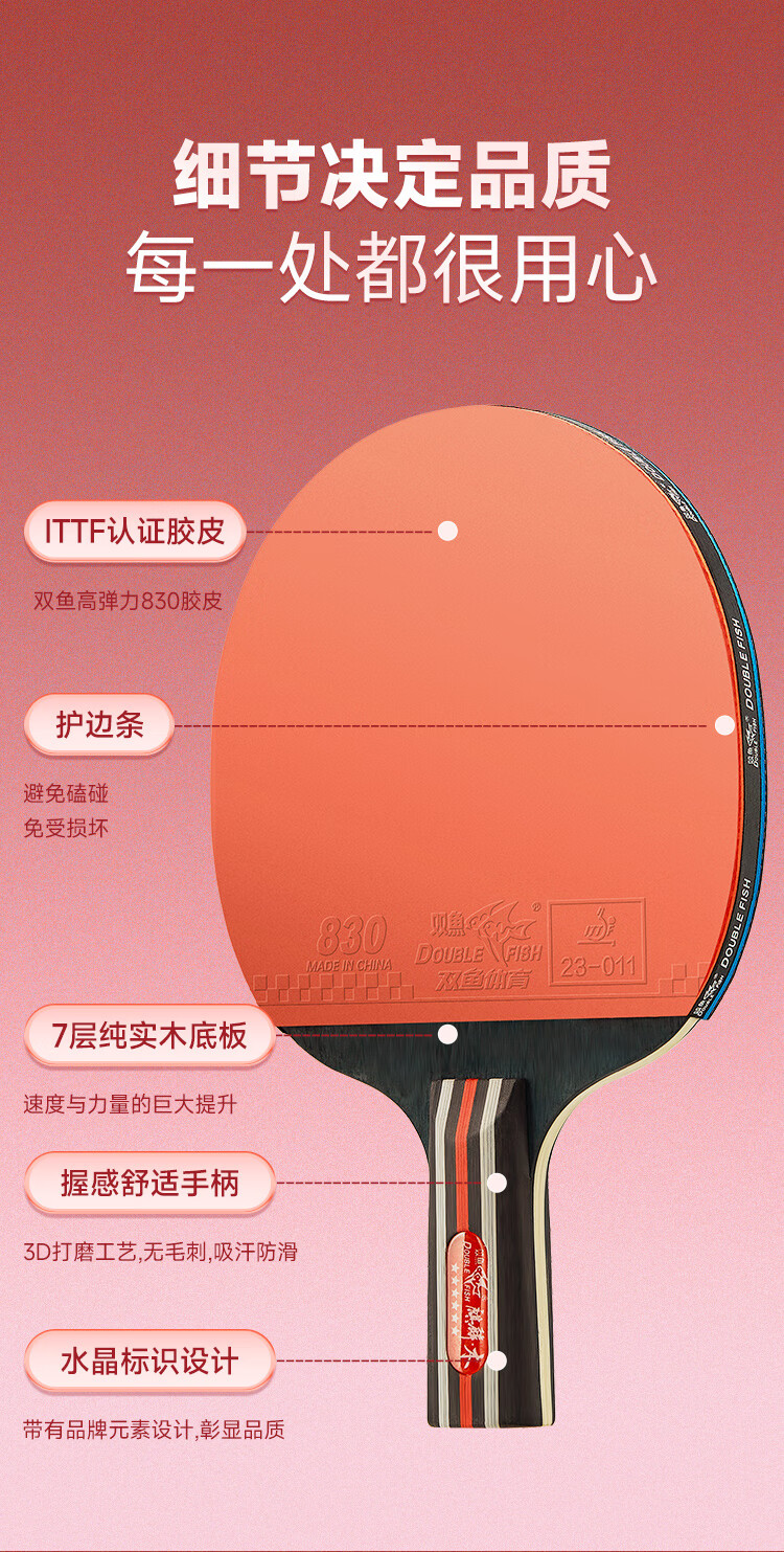 Pisces table tennis racket flagship version competition horizontal pen-hold double-sided anti-adhesive arc combined with fast attack professional table tennis racket Competition championship version 2 horizontal pen-hold shots plus ball + bag Deluxe set racket + bag + ball