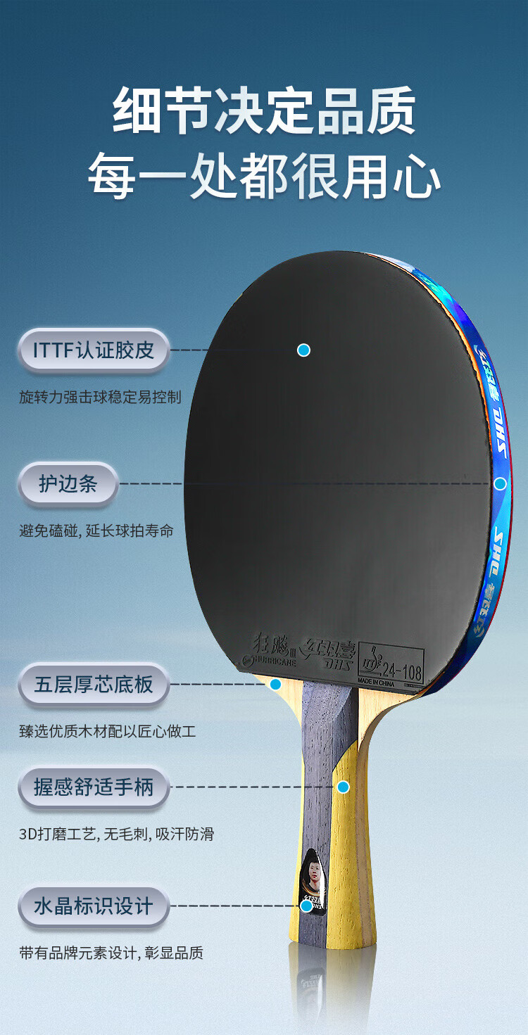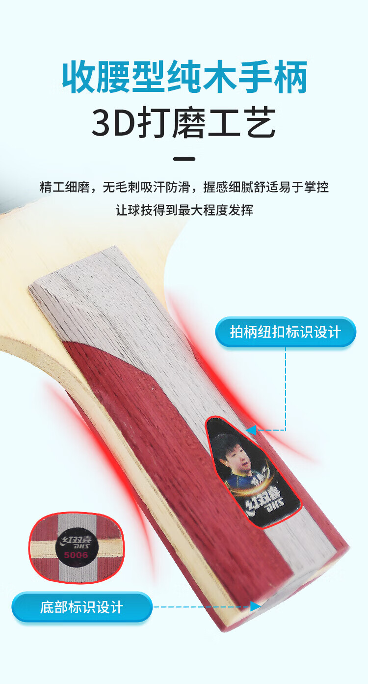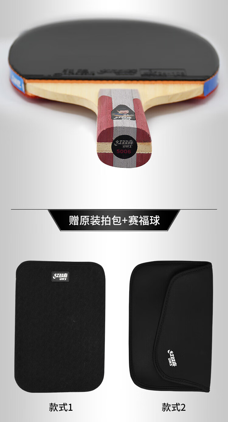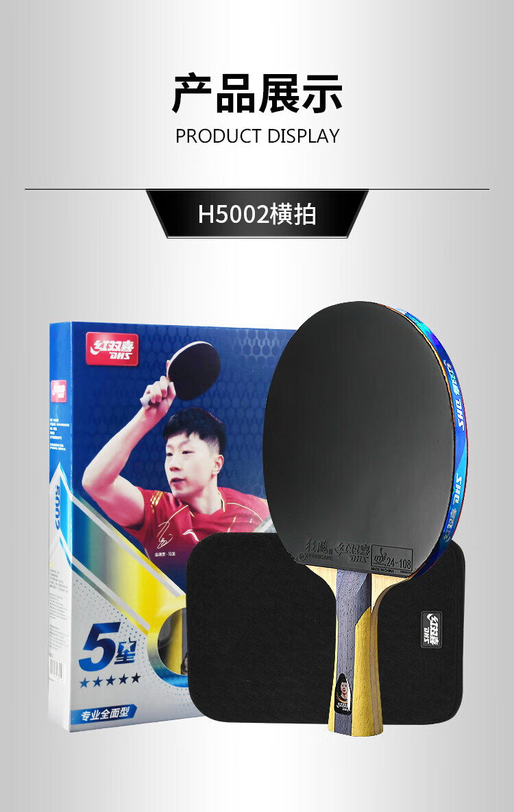 红双喜(DHS)狂飚五星级乒乓球拍横拍双面反胶弧圈结合快攻H5002 附拍套