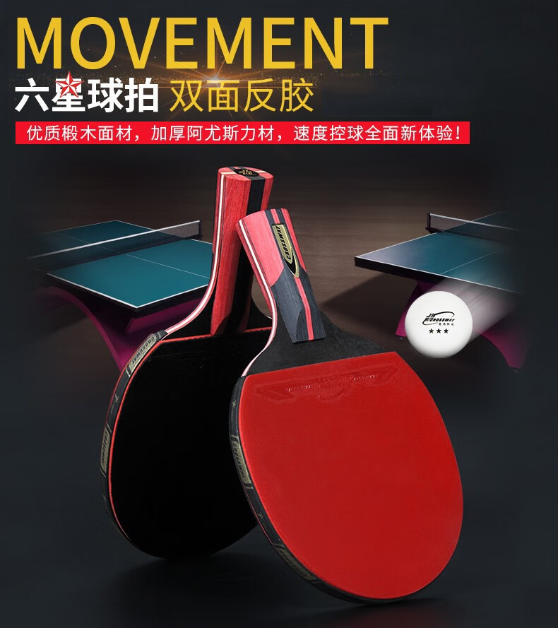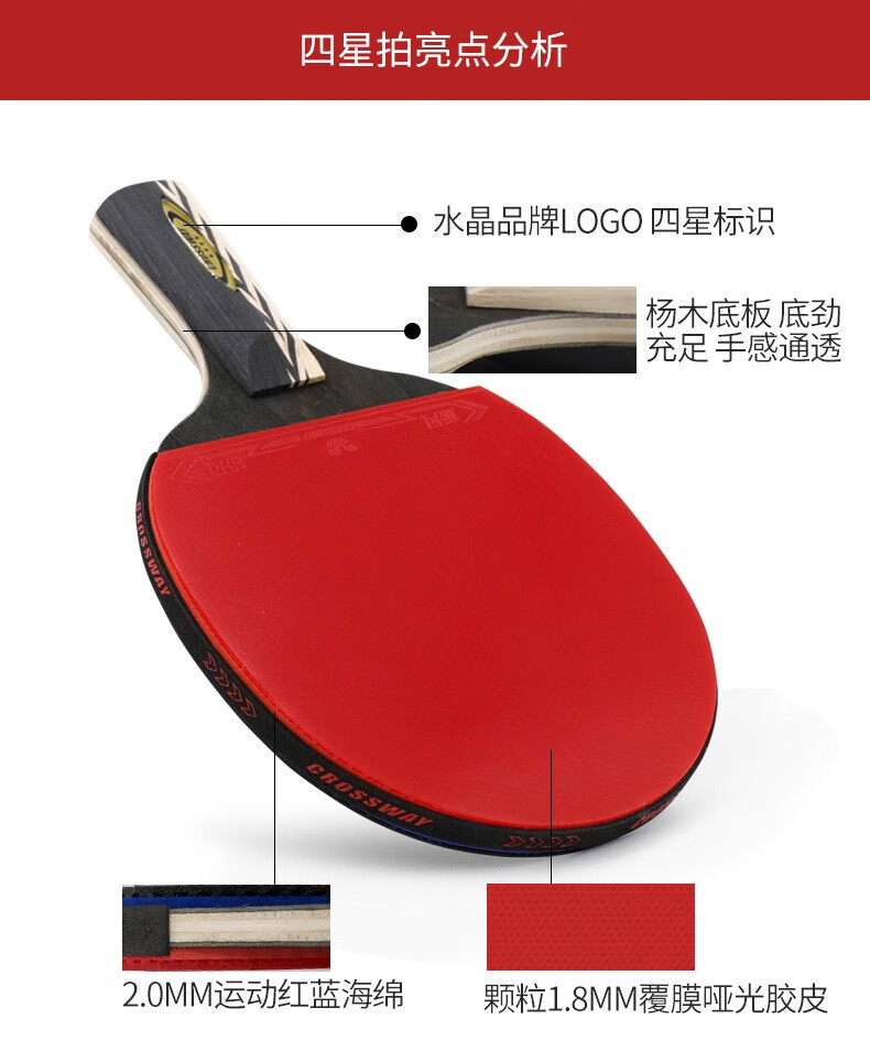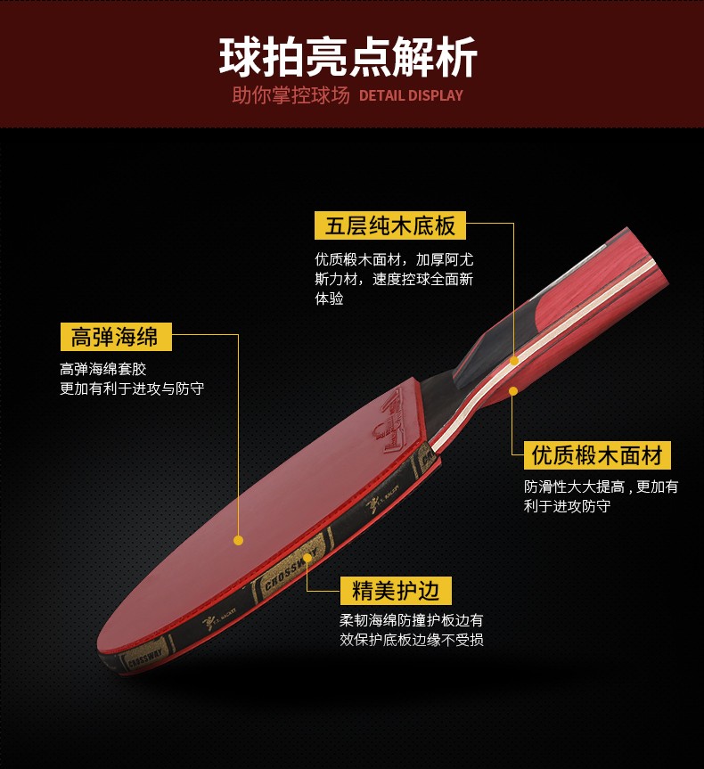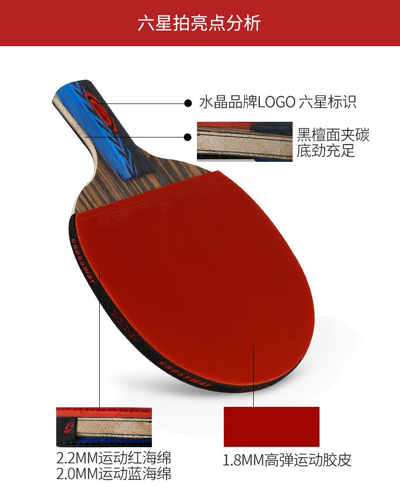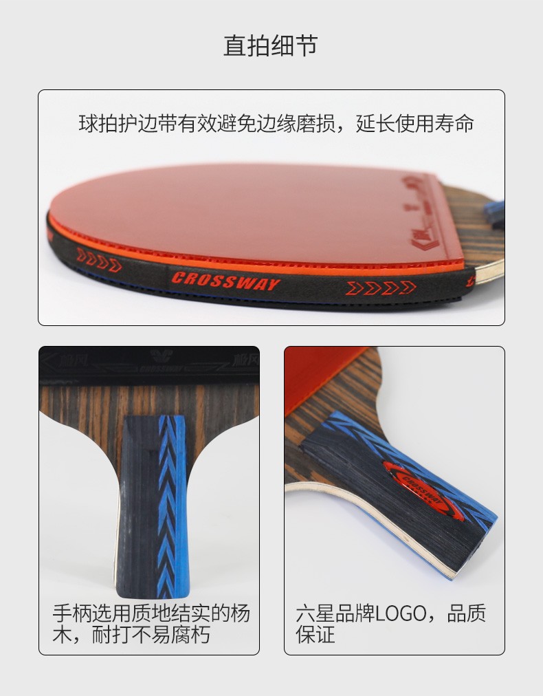 CROSSWAY table tennis racket six-star double-sided anti-adhesive, amateur, intermediate and advanced offense and defense, professional competition training, best-selling six-star 1 pack, horizontal racket + 10 balls