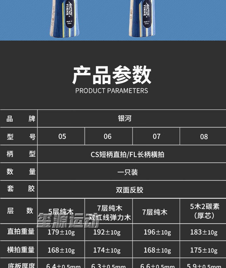 银河(YINHE)五星六星儿童乒乓球拍学生八星七星比赛乒乓球成品拍初学者单拍 7星【横拍长柄】