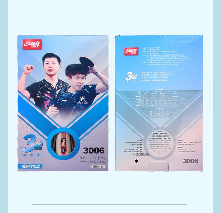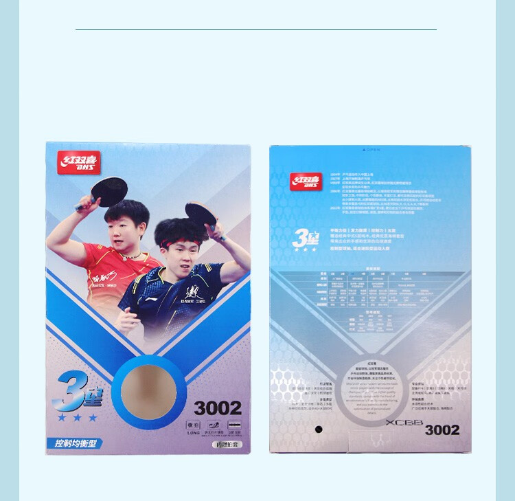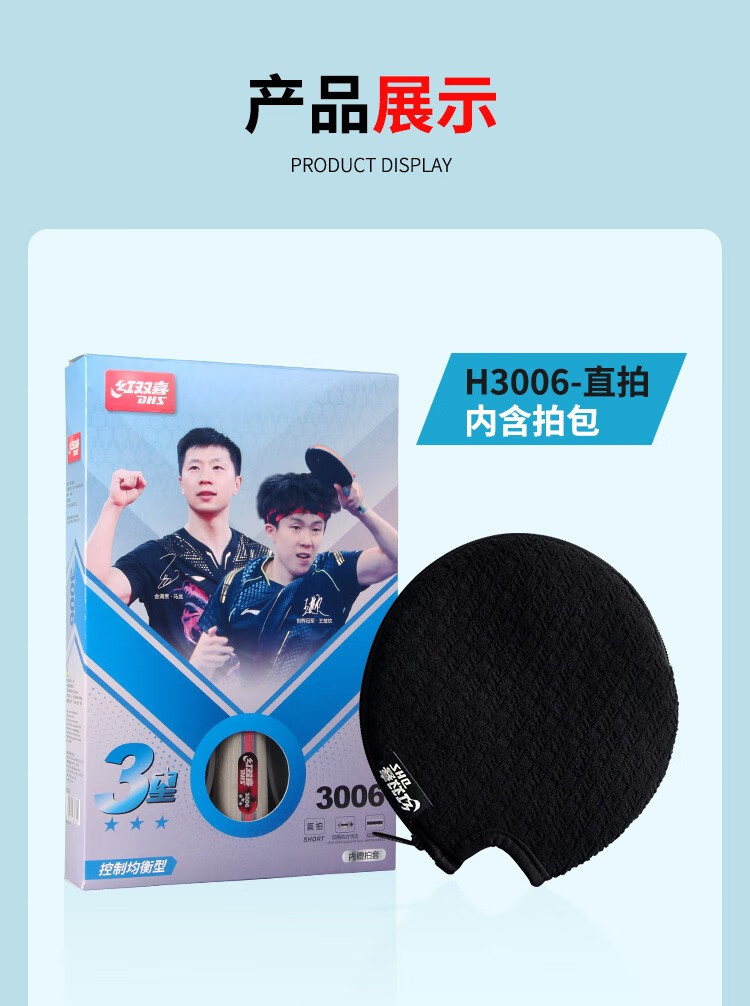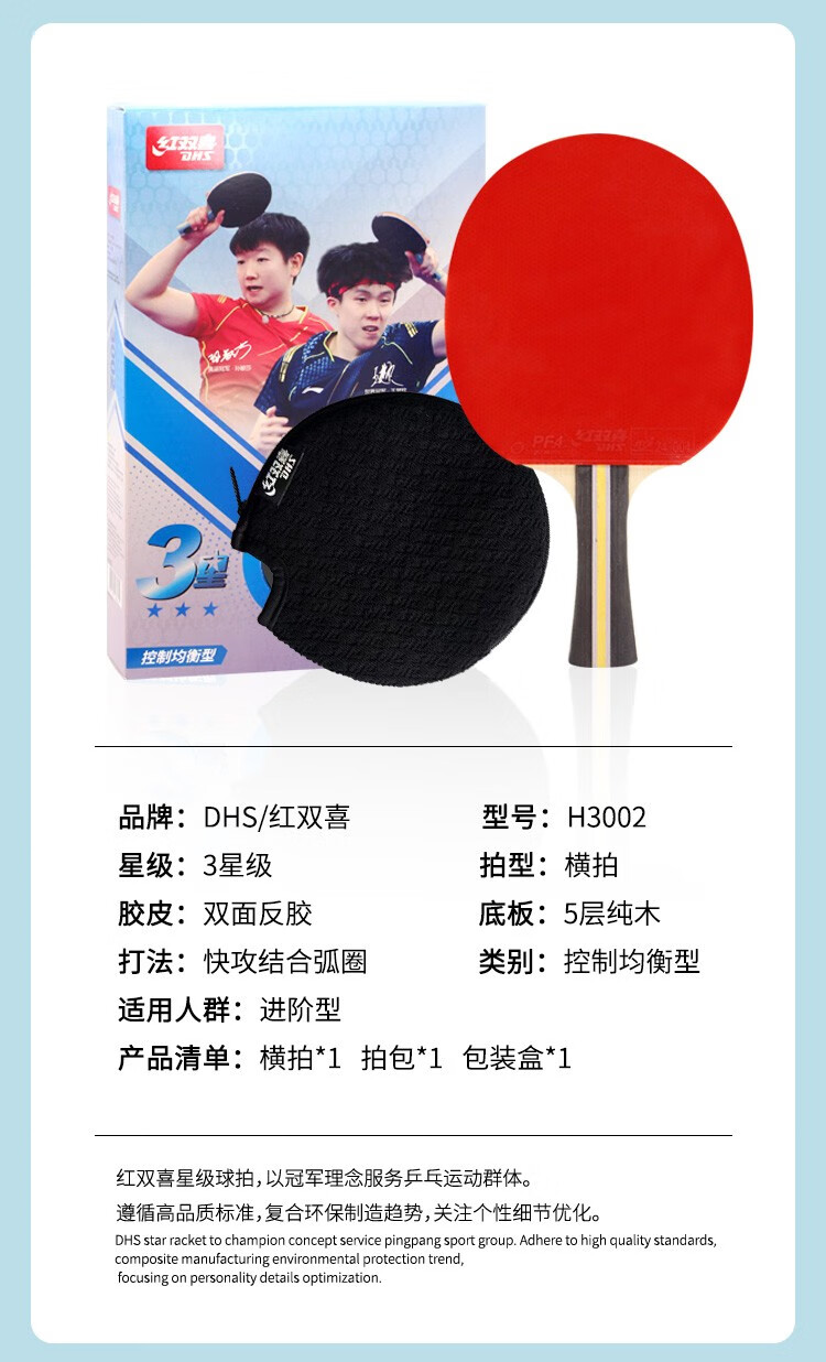 红双喜三星进阶乒乓球拍两只装H3星乒乓对拍2个纯木底板双面反胶 H3002横拍长柄×2只+贈2拍套