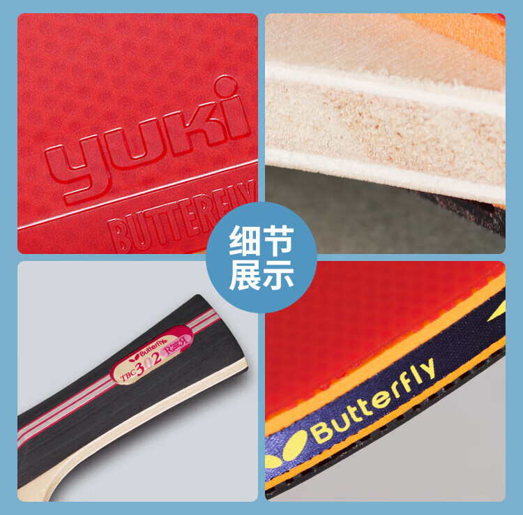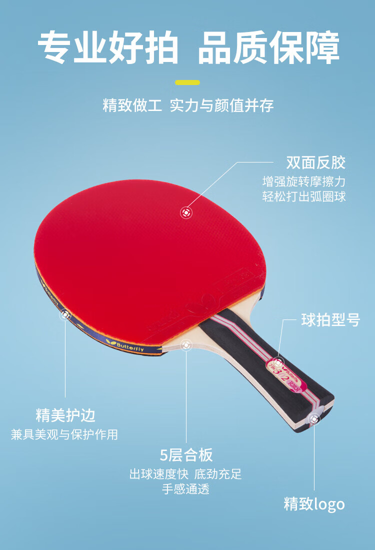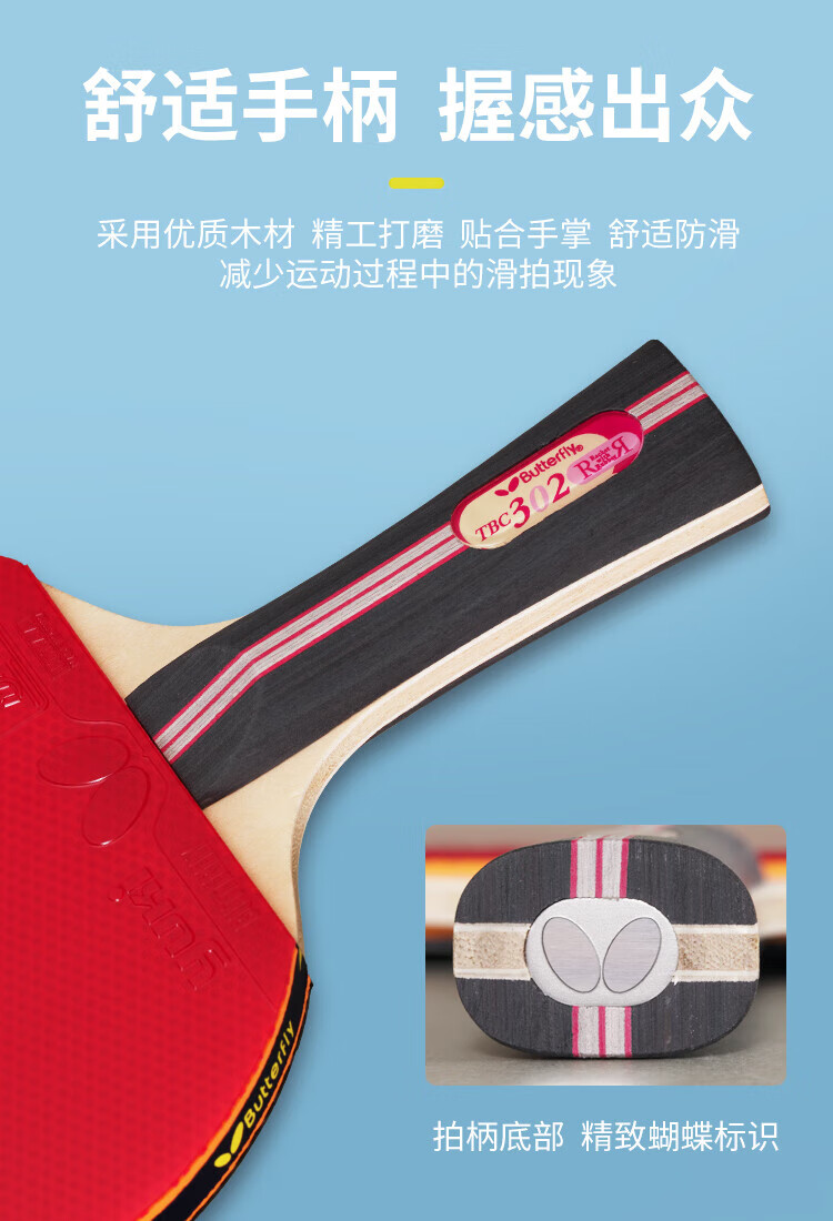 Butterfly three-star table tennis racket horizontal racket double-sided reverse adhesive 5-layer plywood racket single TBC302 with racket case