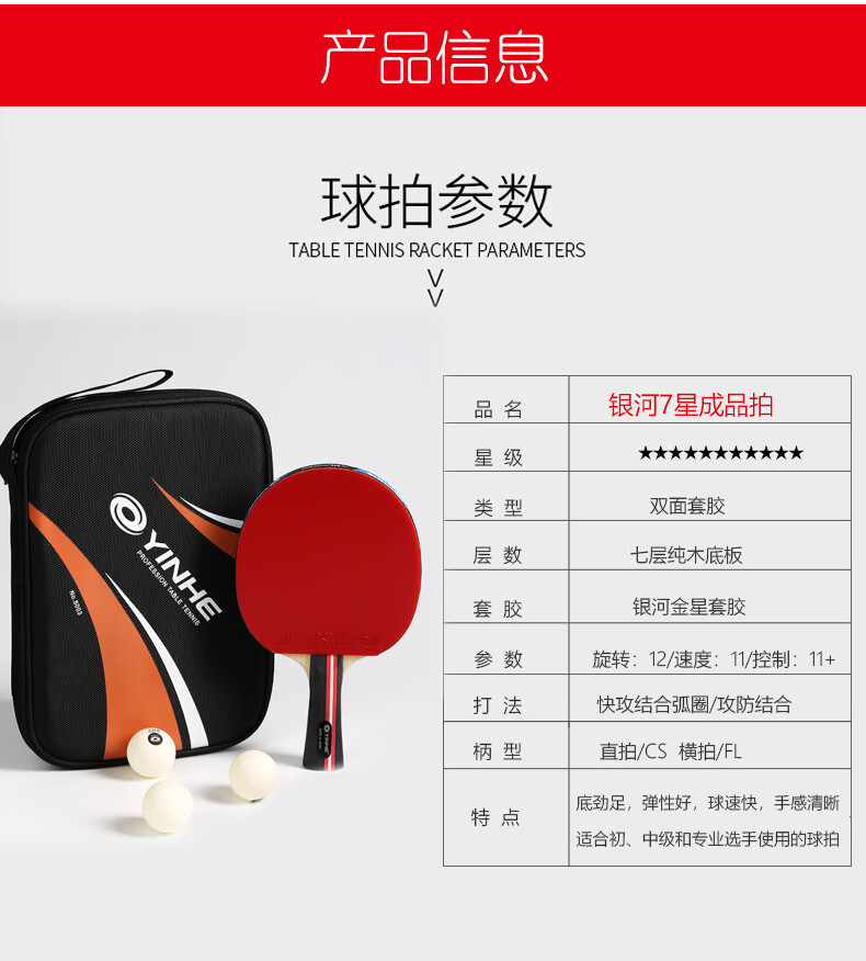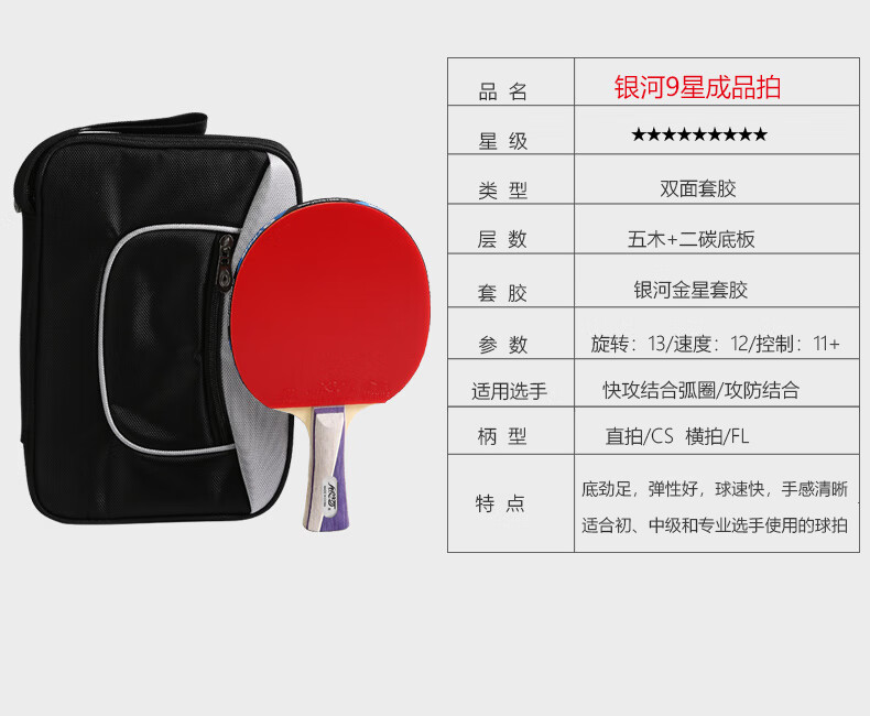 Galaxy (YINHE) Galaxy table tennis racket single racket nine-star 1 table tennis racket 9-star offensive carbon horizontal racket special 9-star horizontal racket