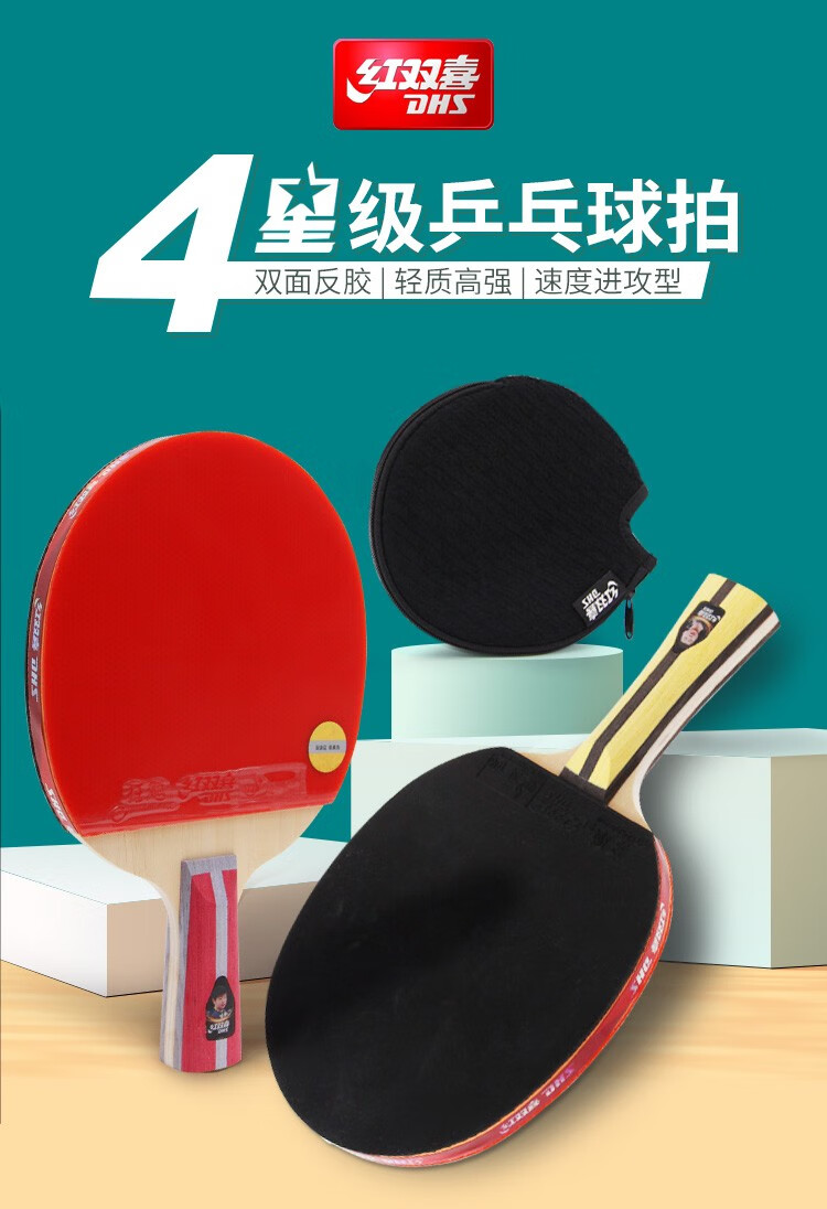 红双喜乒乓球拍2只对拍 H4四星级纯木双拍两只套装 速度进阶型 H4006直拍短柄×2只(双面反胶)