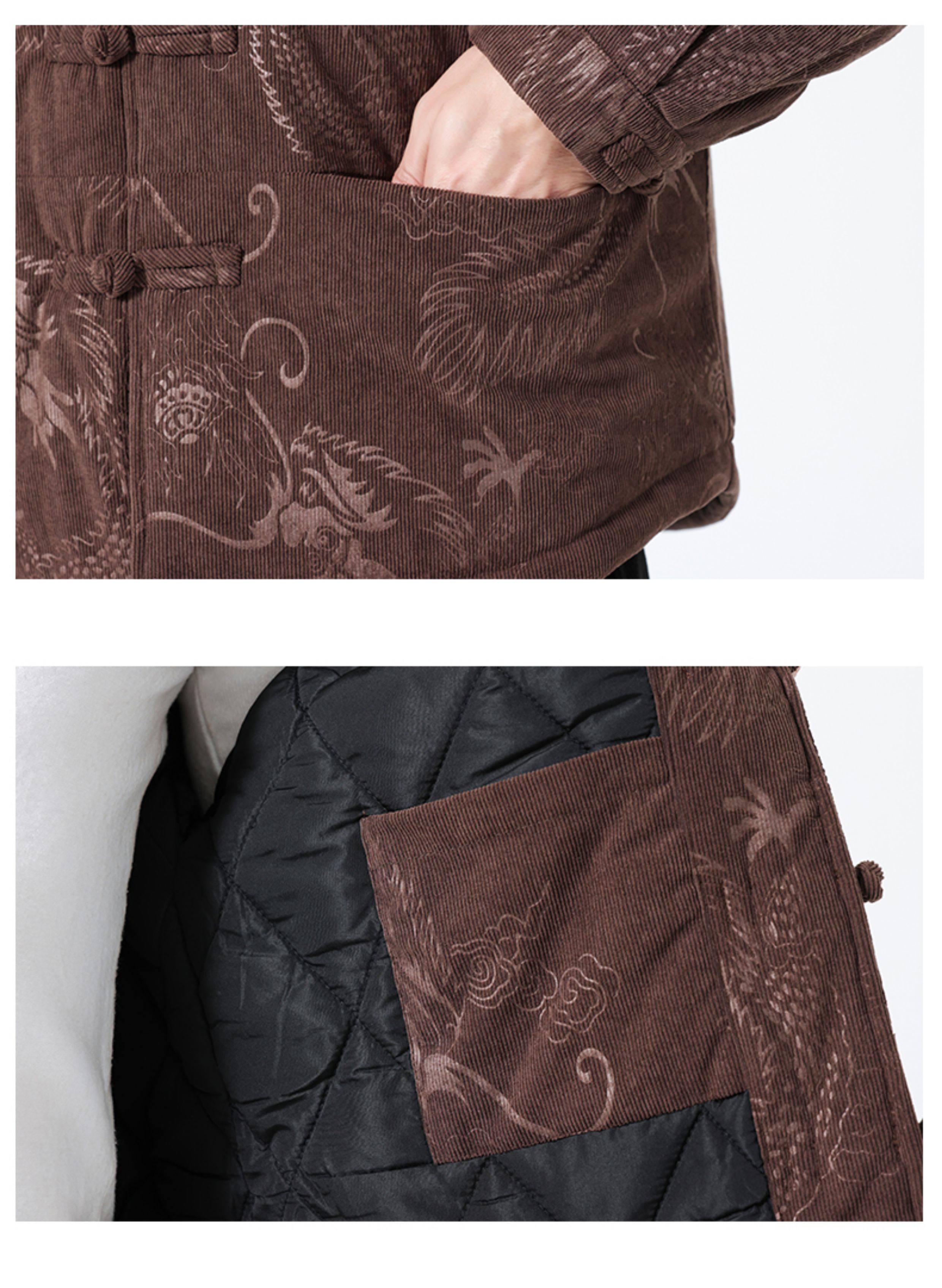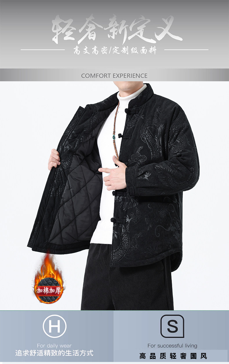 Мужская зимняя утепленная куртка в китайском стиле, с ретро-узором дракона, на пуговицах, большой размер, теплая мужская хлопковая верхняя одежда.