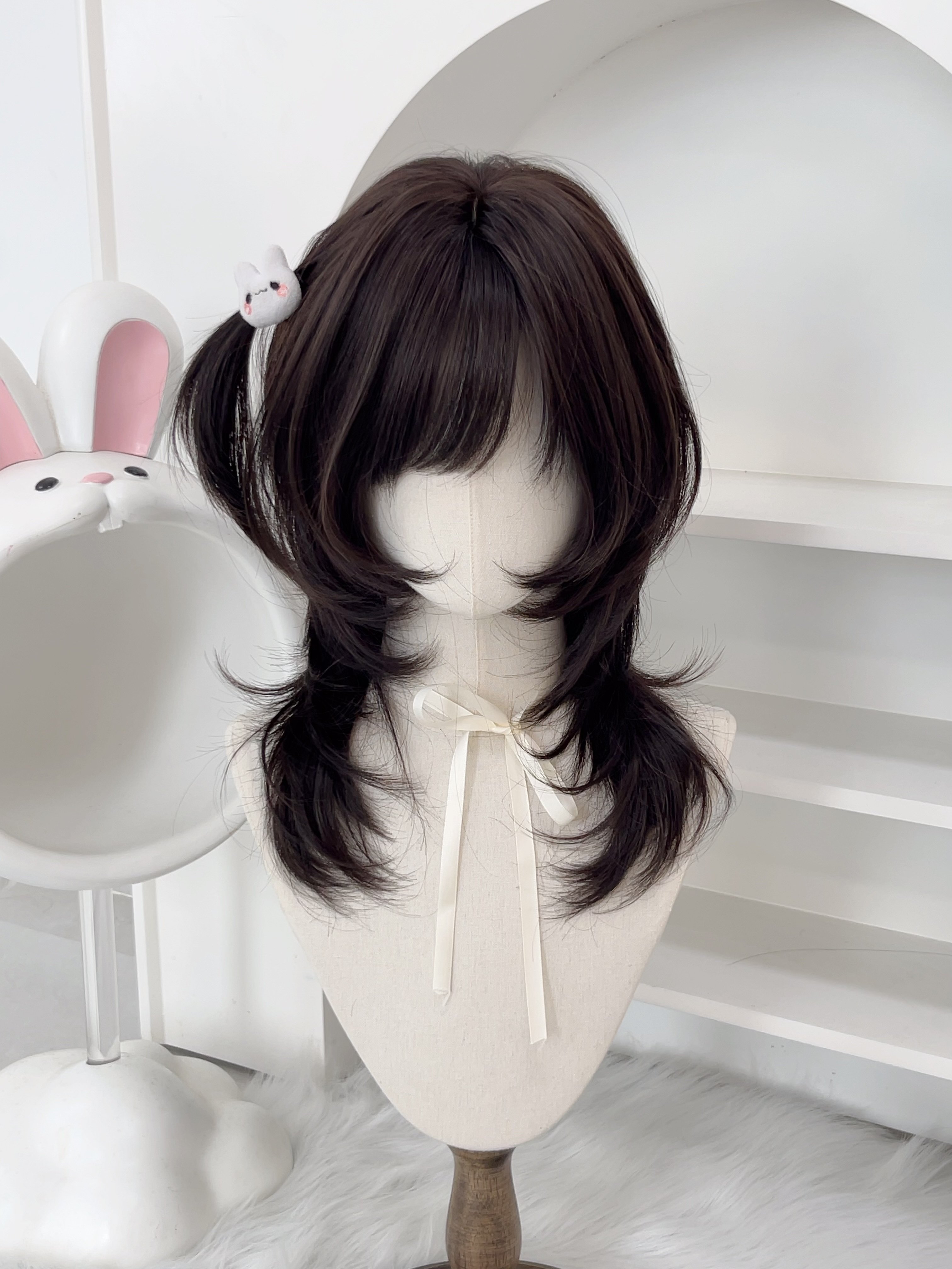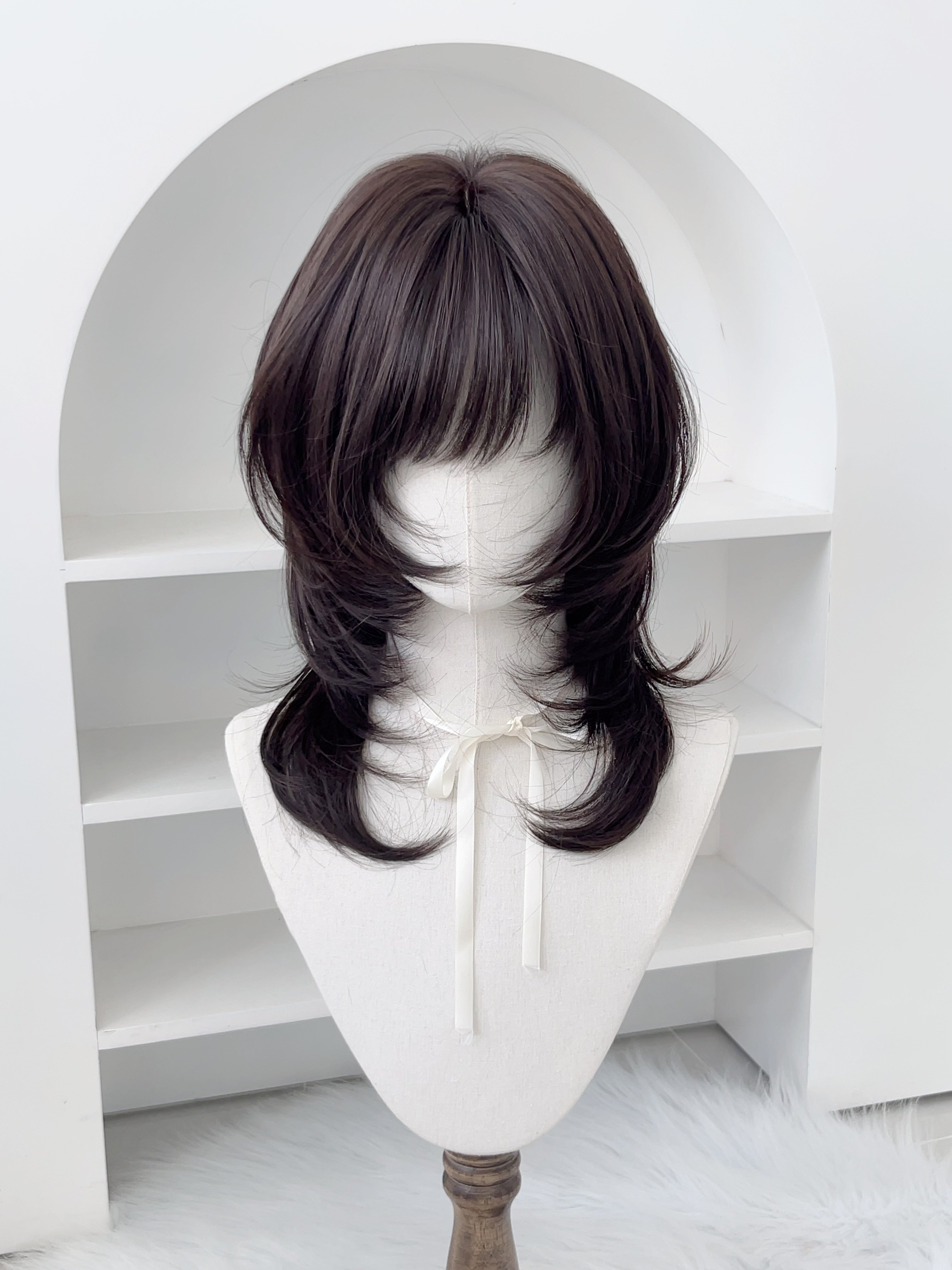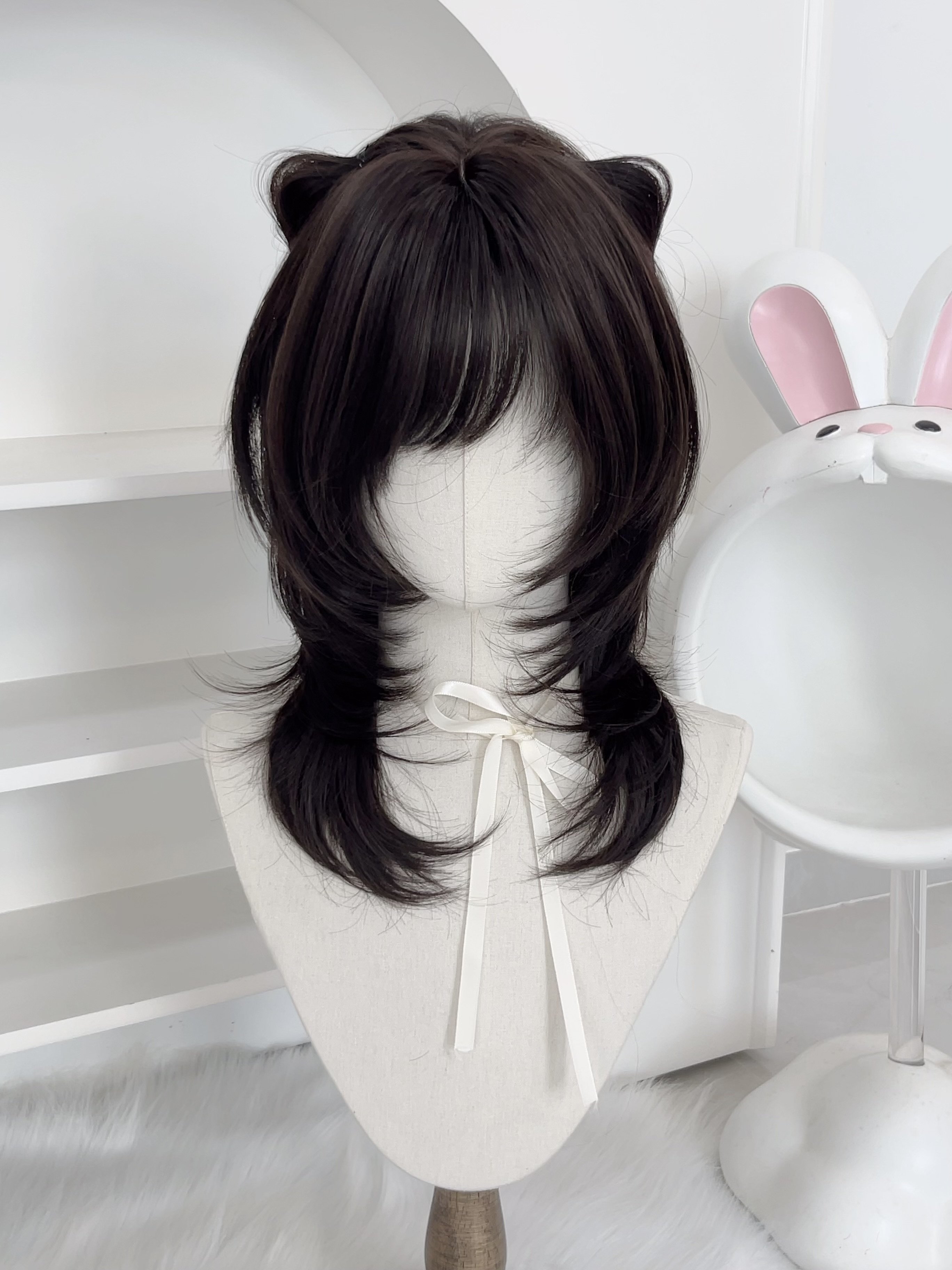 [Soft and Silky Black Forest]Japanese-Style Sweet Girl Wig with High-Layered Mullet Cut, Face-Framing Collarbone-Length Hair, Full Head Wig